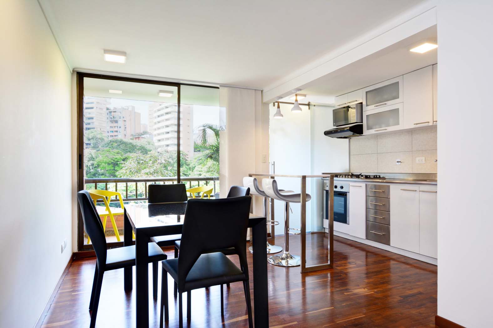 Ayamonte Provenza is a fully remodeled, pet-friendly one-bedroom apartment perfect for short or long stays. The master bedroom features a King bed, AC, desk, balcony, and a spacious private bathroom. The open kitchen is fully equipped for all your cooking needs. The building offers 24-hour security, on-site parking, a new shared coworking space, and is steps from Provenza’s lively restaurants, trendy coffee shops, and bars—ideal for digital nomads and travelers alike.