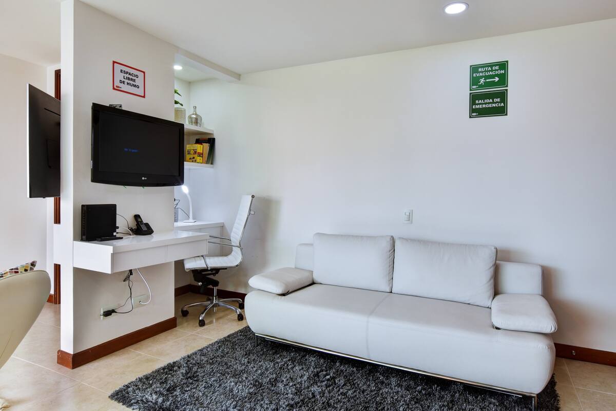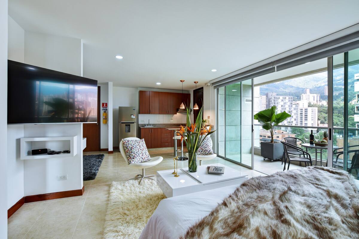 Blux has one of the best locations in Poblado area, comfort and 24/7 check-in. Blux is right across from Interplaza Mall, where you can find more than 10 restaurants and all major ATMs and just 200 meters away at the Carulla grocery store when needed, Short walk to Parque Lleras, or $2 taxi to the best nightlife and restaurants of the city. The neighborhood is very quiet and the building is in front of a green park.