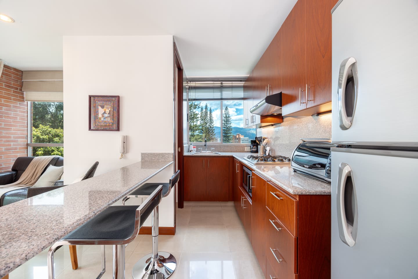 Find your serene retreat in Medellín! This spacious 75 m² apt, located steps from Provenza, boasts beautiful mountain vistas from its two balconies. It offers two comfortable bd, 2 full bathrooms, and an in-unit washer and dryer for your convenience. You can relax by the pool or keep up your routine in the fully equipped gym. Experience calm mornings, enjoy at the top restaurants.