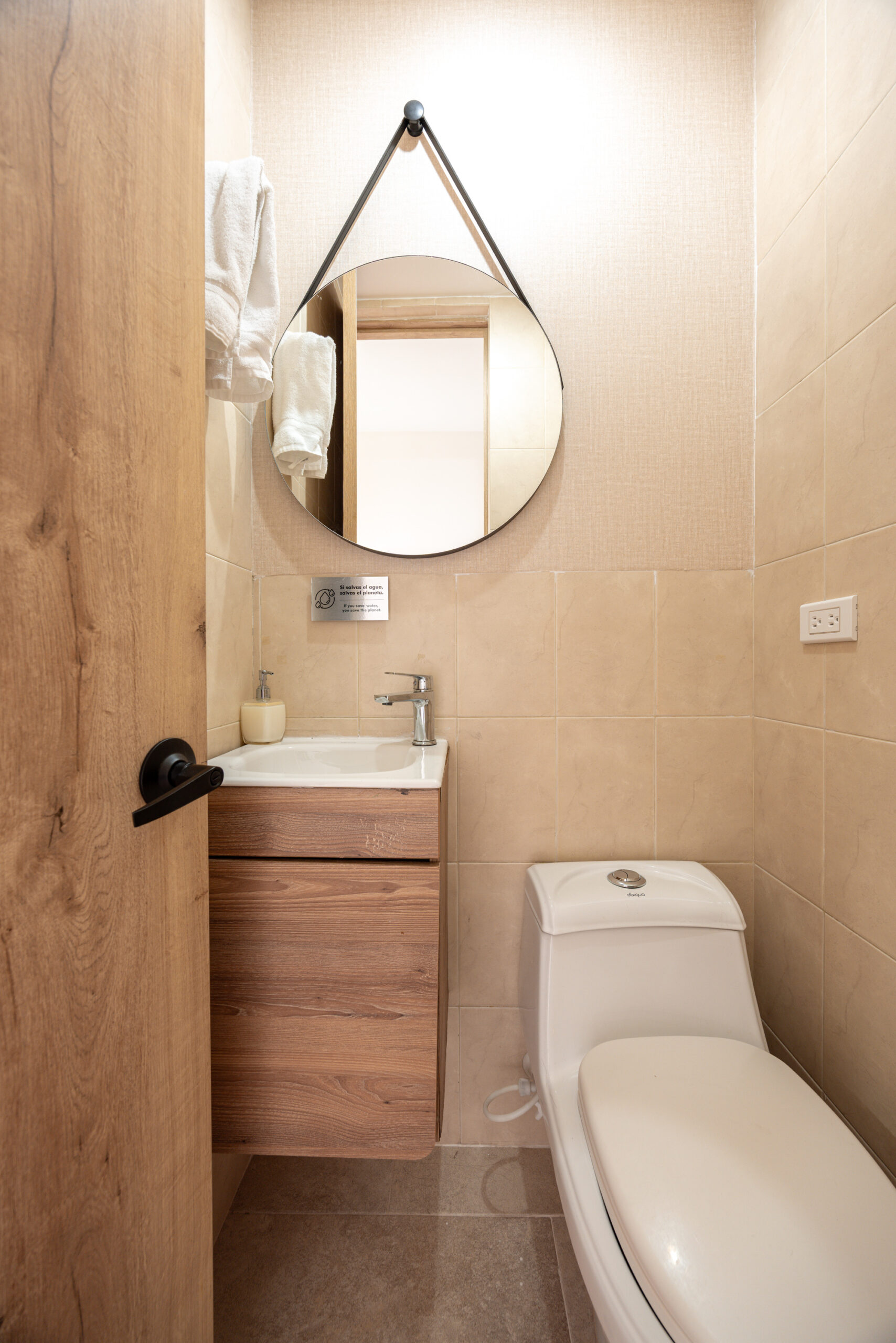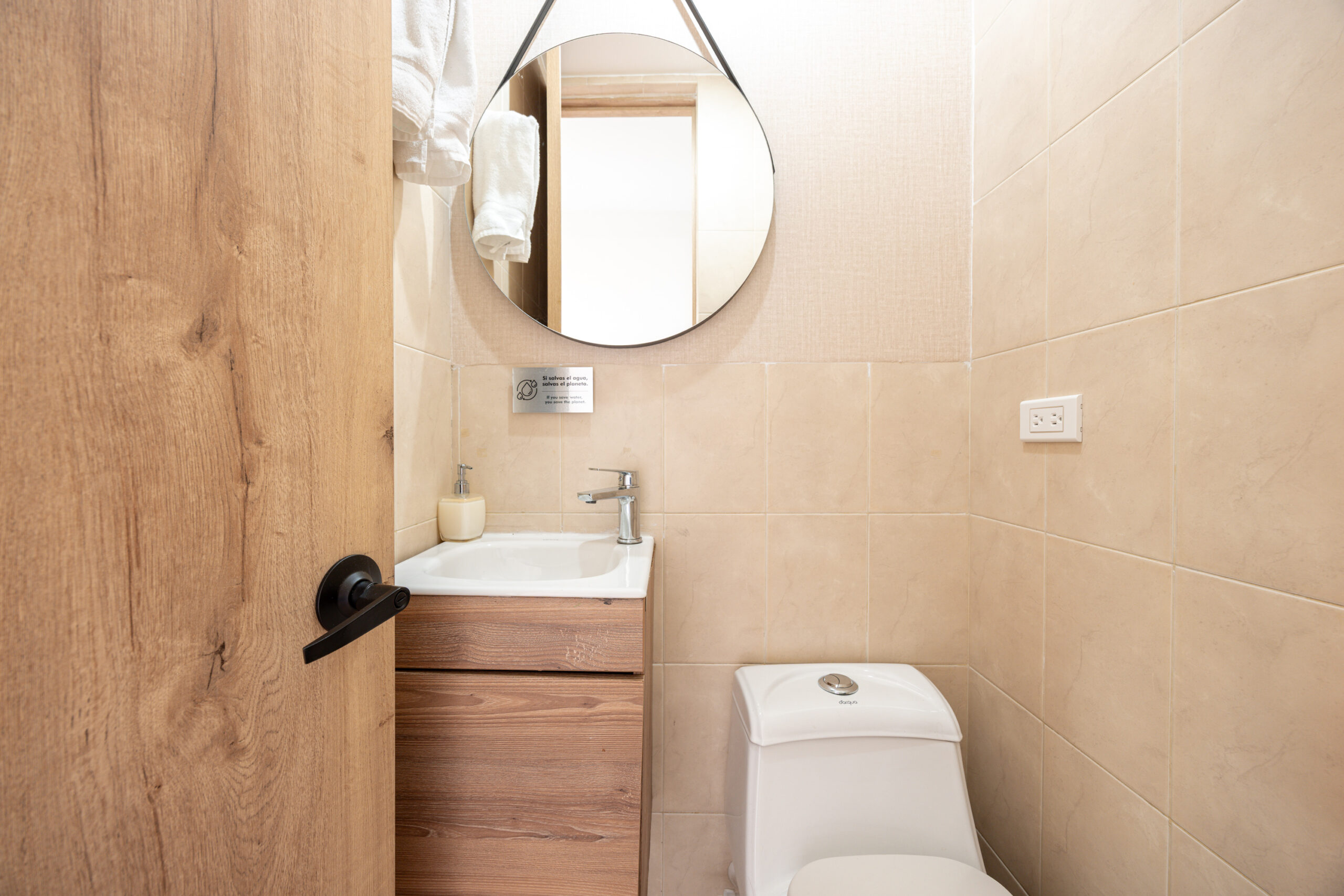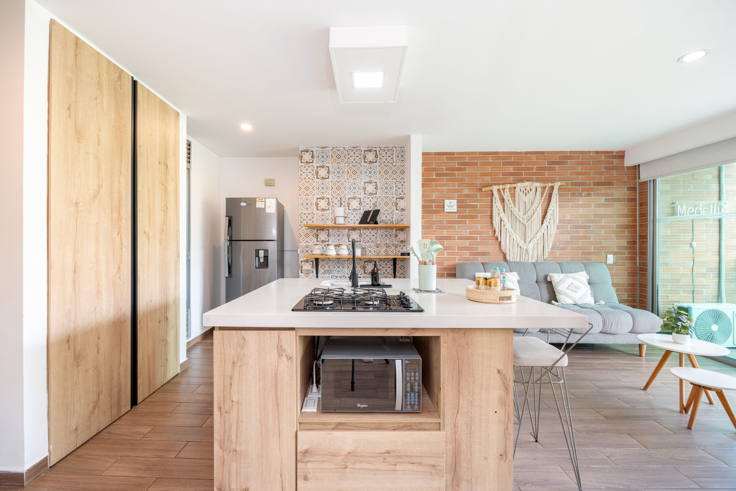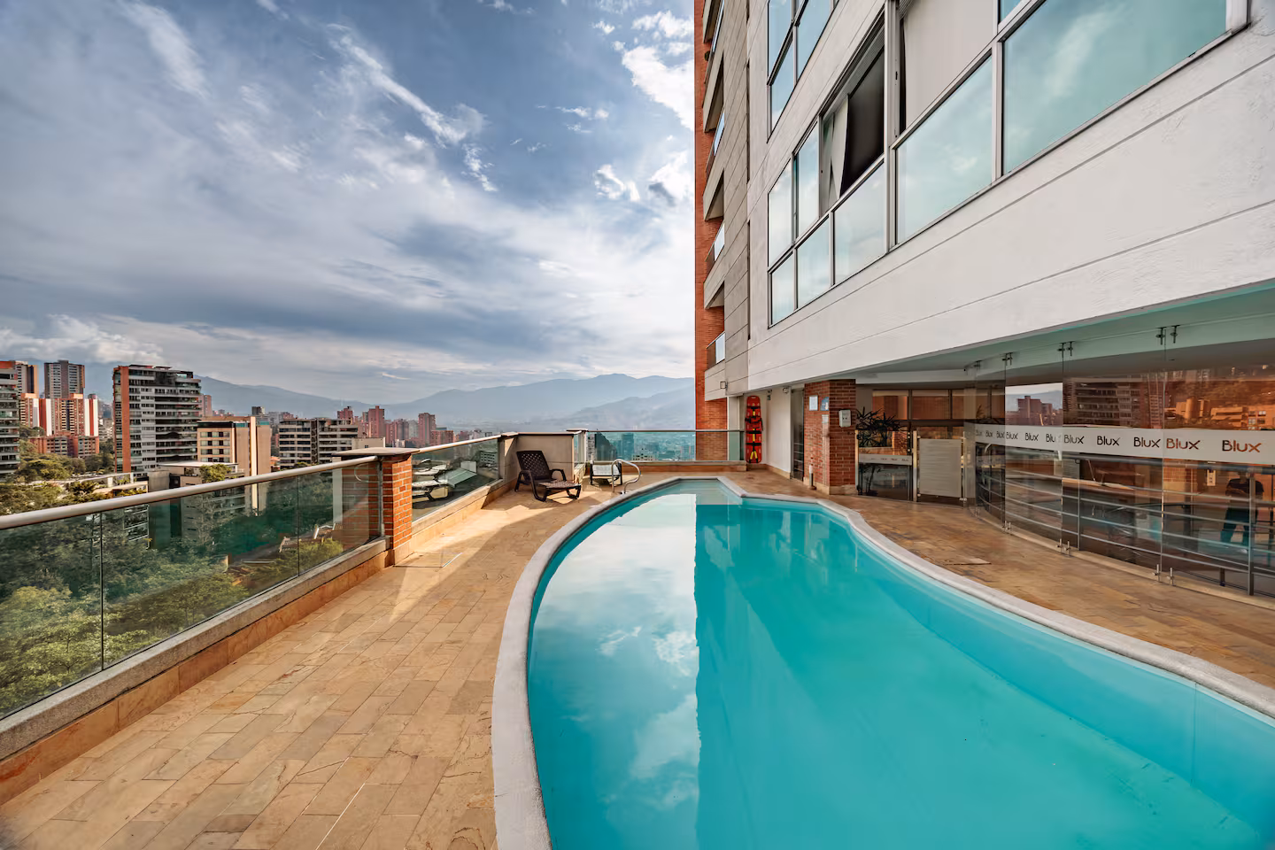 Enjoy Medellín in this peaceful studio with a balcony overlooking a green park. It features 1.5 bathrooms, a king-size bed, a desk with fast WiFi, A/C, a fully equipped kitchen, a washer/dryer, and a sofa bed for a third guest. The building offers 24/7 security, a pool, steam room, co-working space, terrace, and covered parking. Just 2 minutes from Interplaza Mall with restaurants and 10 minutes from Provenza and Lleras Park.