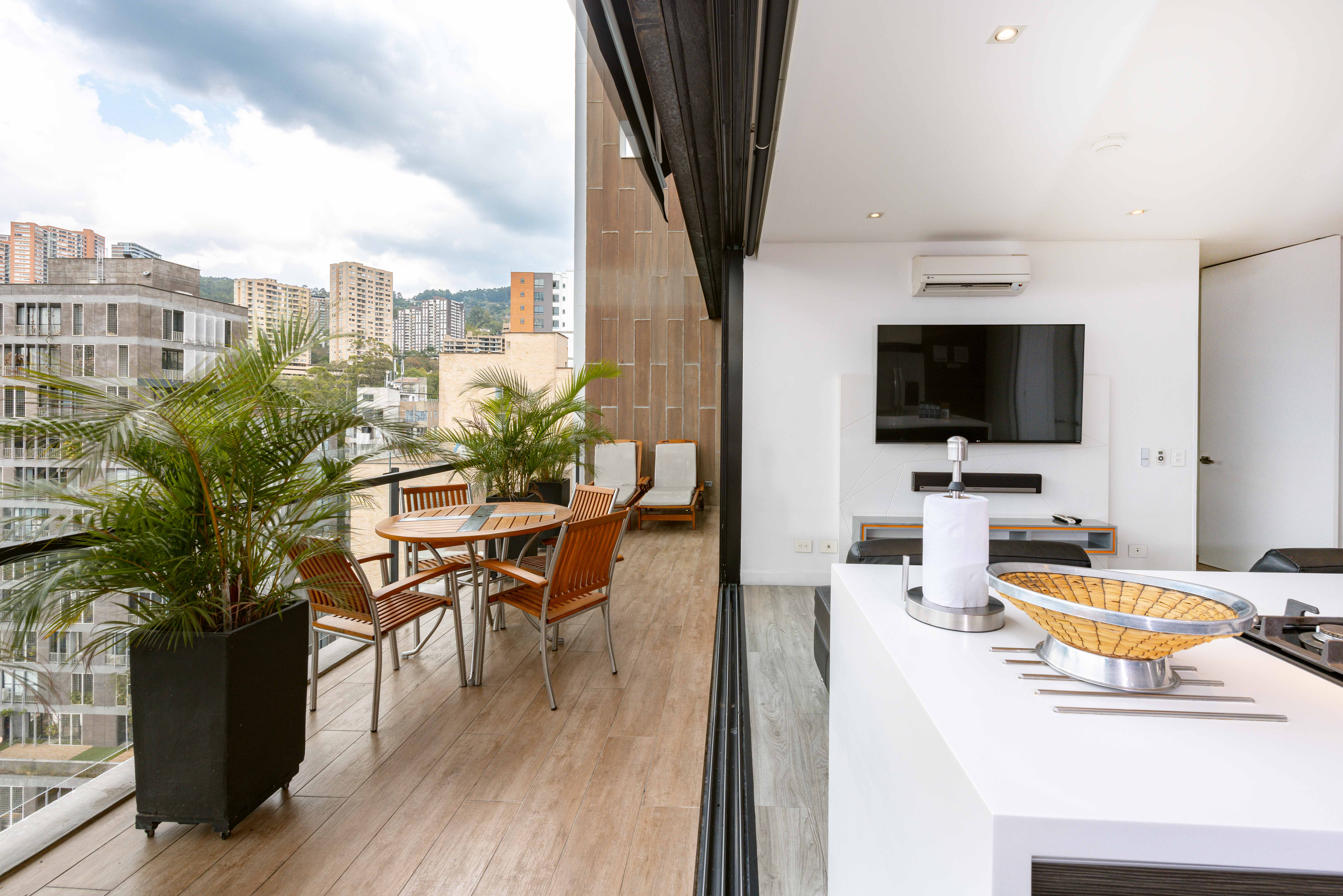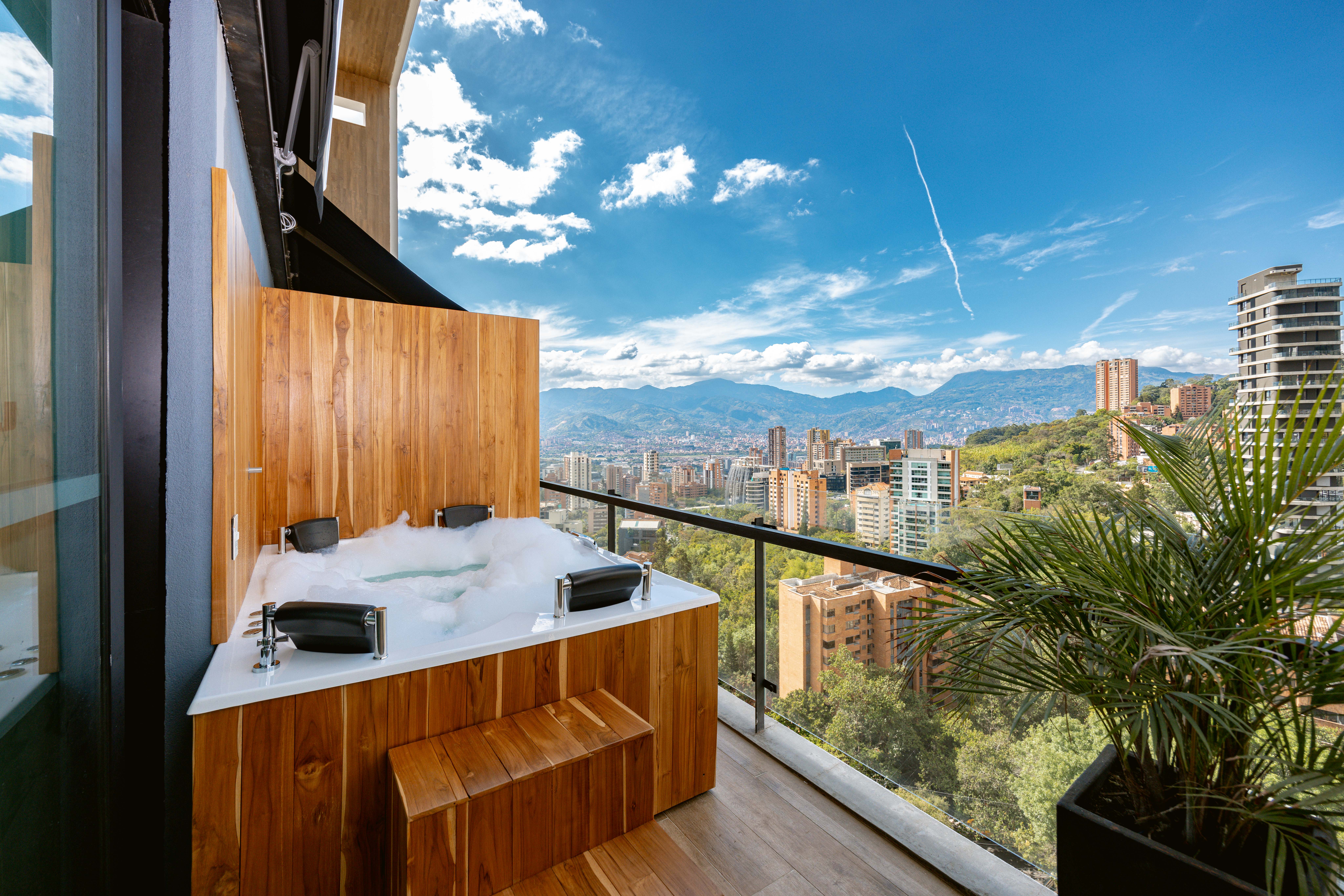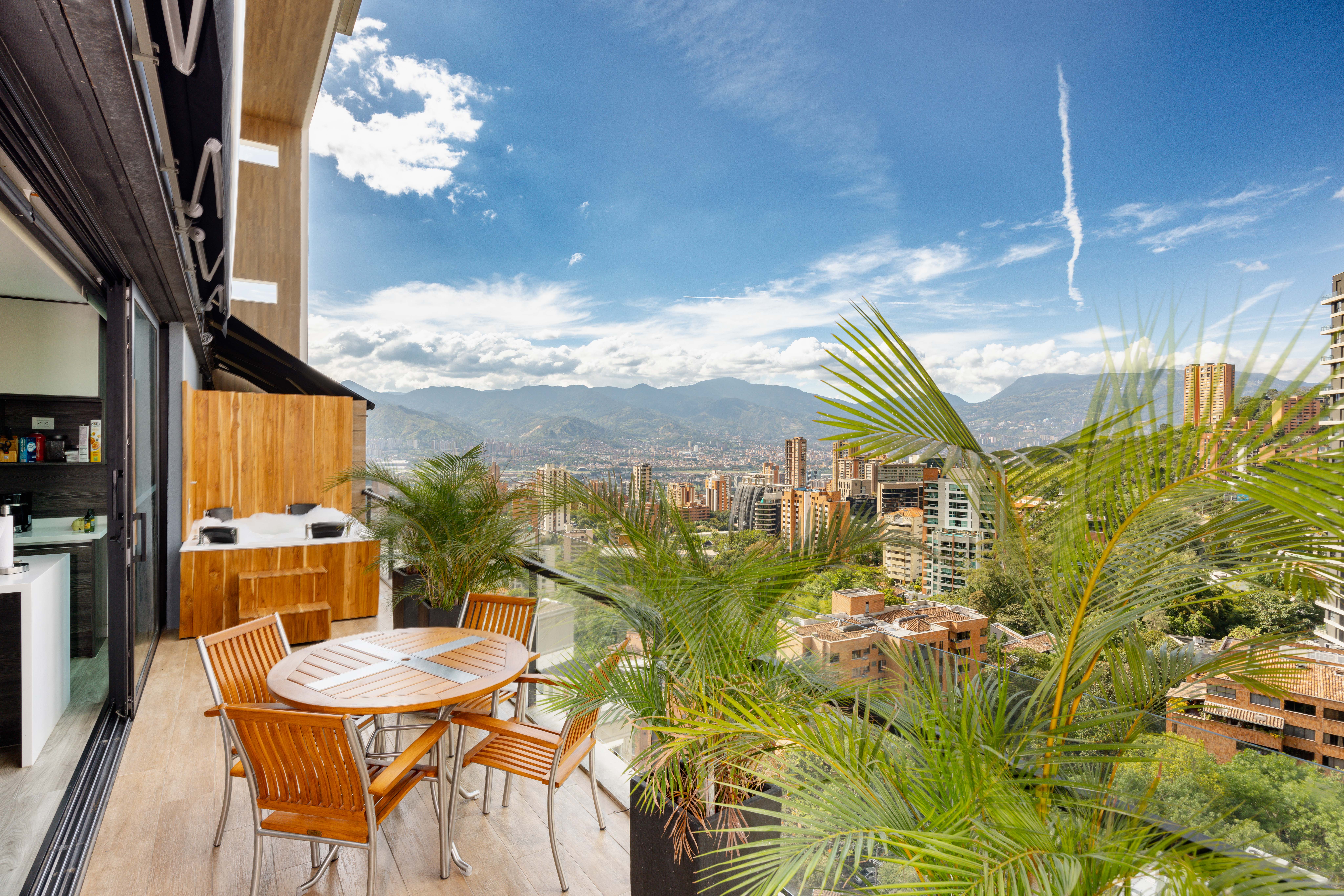 Relax in this 2-bedroom apartment, featuring a small second bedroom, a spacious terrace with a private hot tub, and air conditioning for ultimate comfort. Modern and beautifully designed, it offers both luxury and practicality. Nestled in the prestigious Energy Living building, enjoy top-tier amenities: a breathtaking infinity rooftop pool on the 22nd floor, a fully equipped gym, a relaxing steam bath, and the all-day Alquimista restaurant onsite. Just a short walk to Carulla supermarket and a vibrant mall brimming with delightful dining options!