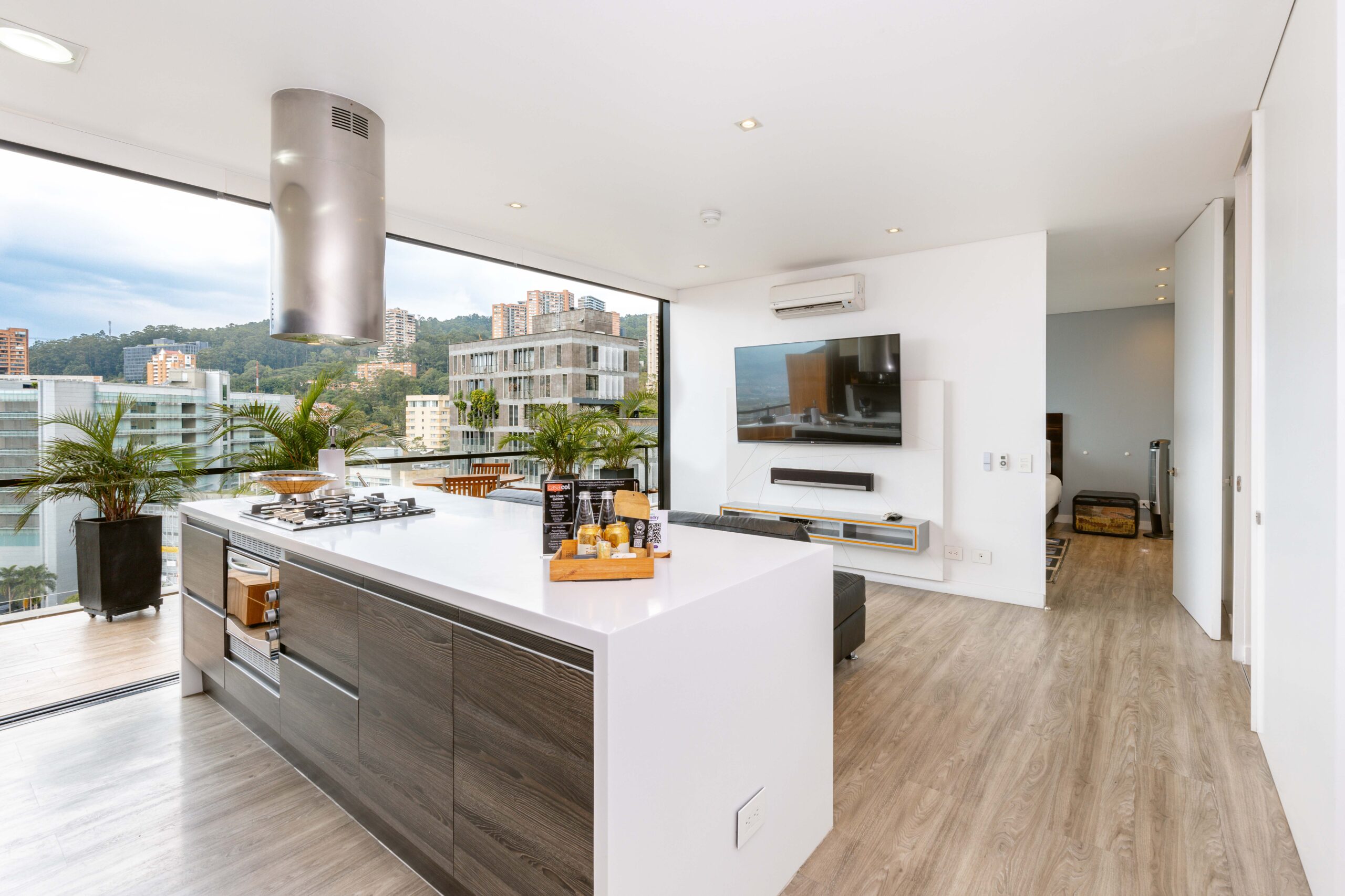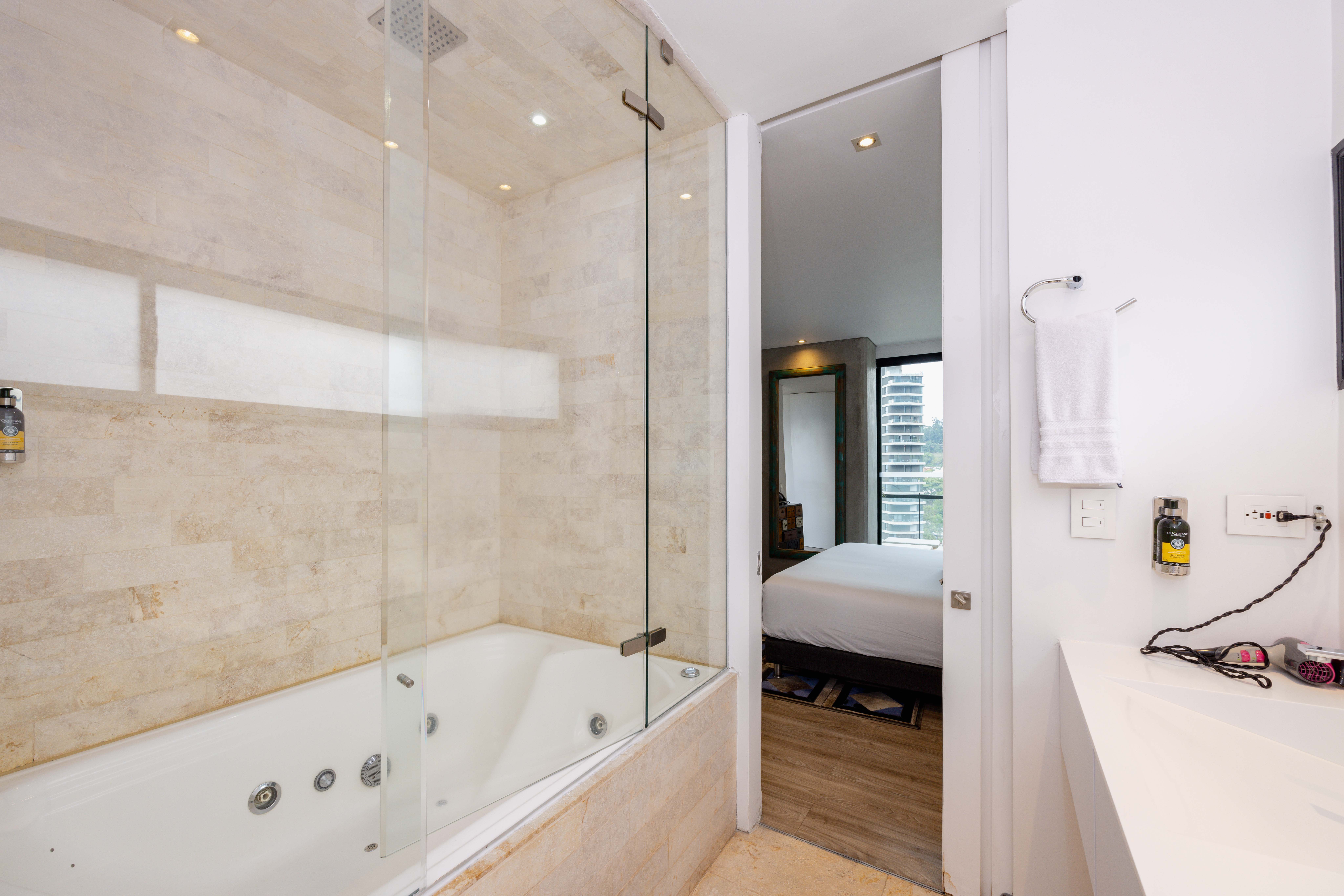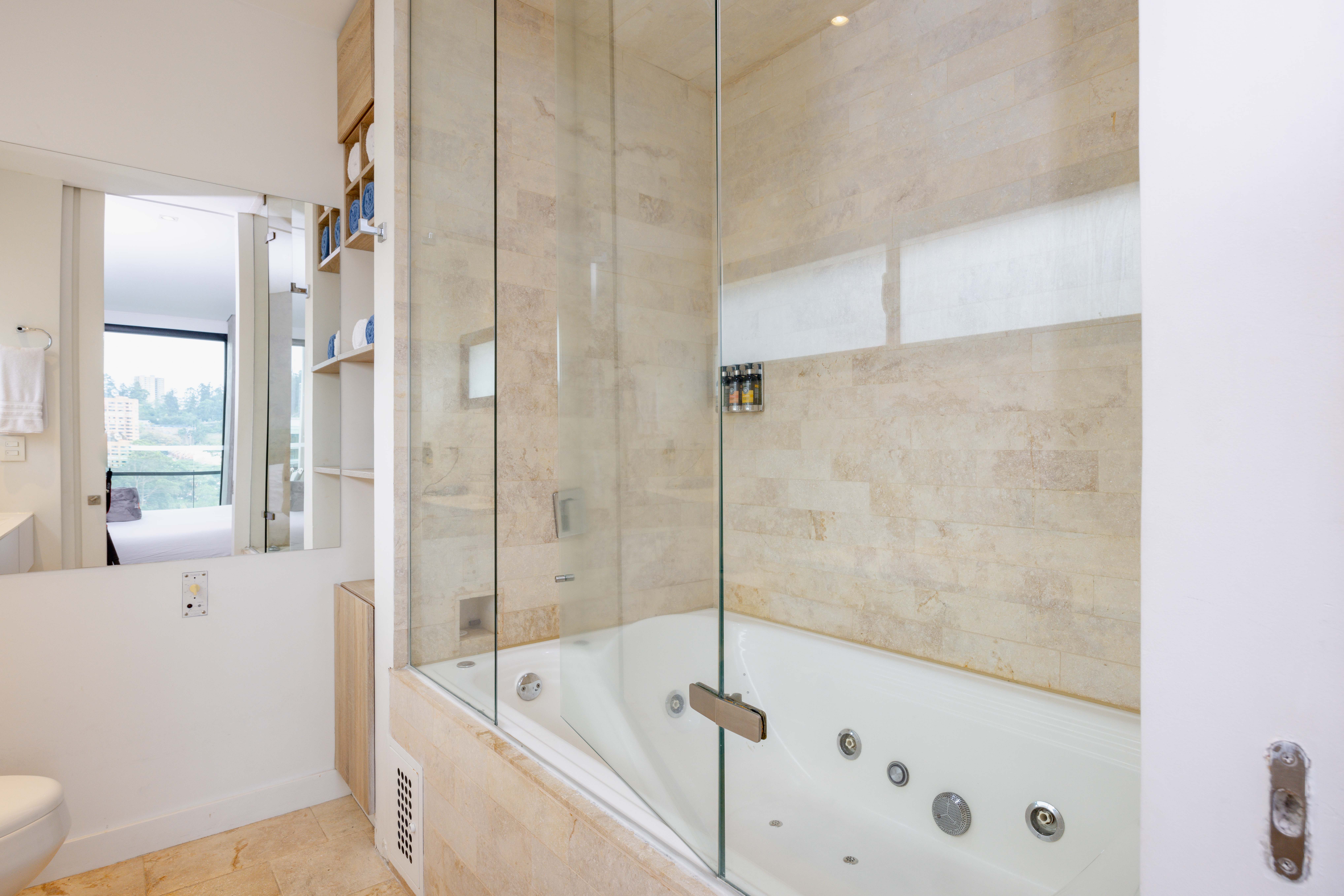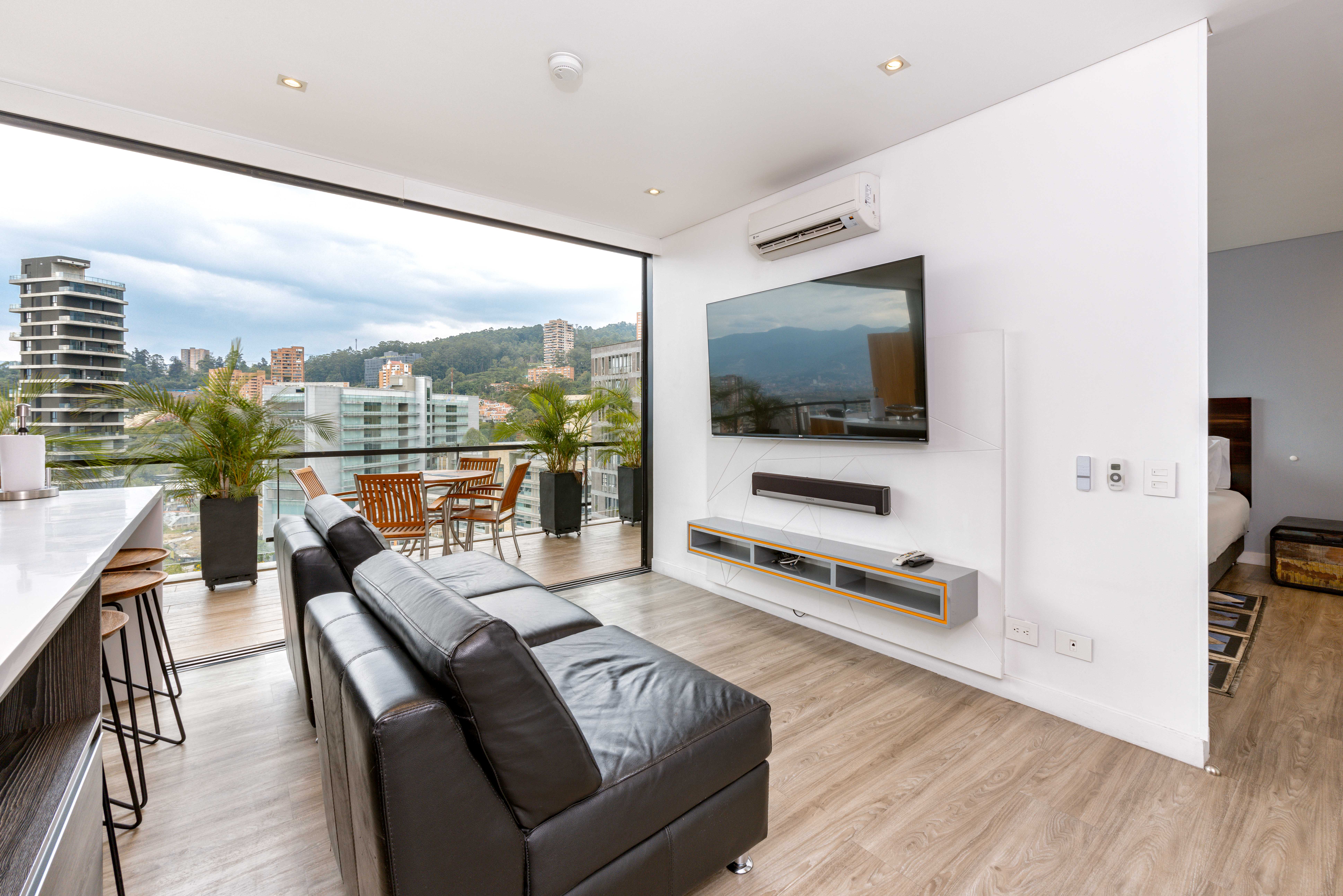 Relax in this 2-bedroom apartment, featuring a small second bedroom, a spacious terrace with a private hot tub, and air conditioning for ultimate comfort. Modern and beautifully designed, it offers both luxury and practicality. Nestled in the prestigious Energy Living building, enjoy top-tier amenities: a breathtaking infinity rooftop pool on the 22nd floor, a fully equipped gym, a relaxing steam bath, and the all-day Alquimista restaurant onsite. Just a short walk to Carulla supermarket and a vibrant mall brimming with delightful dining options!