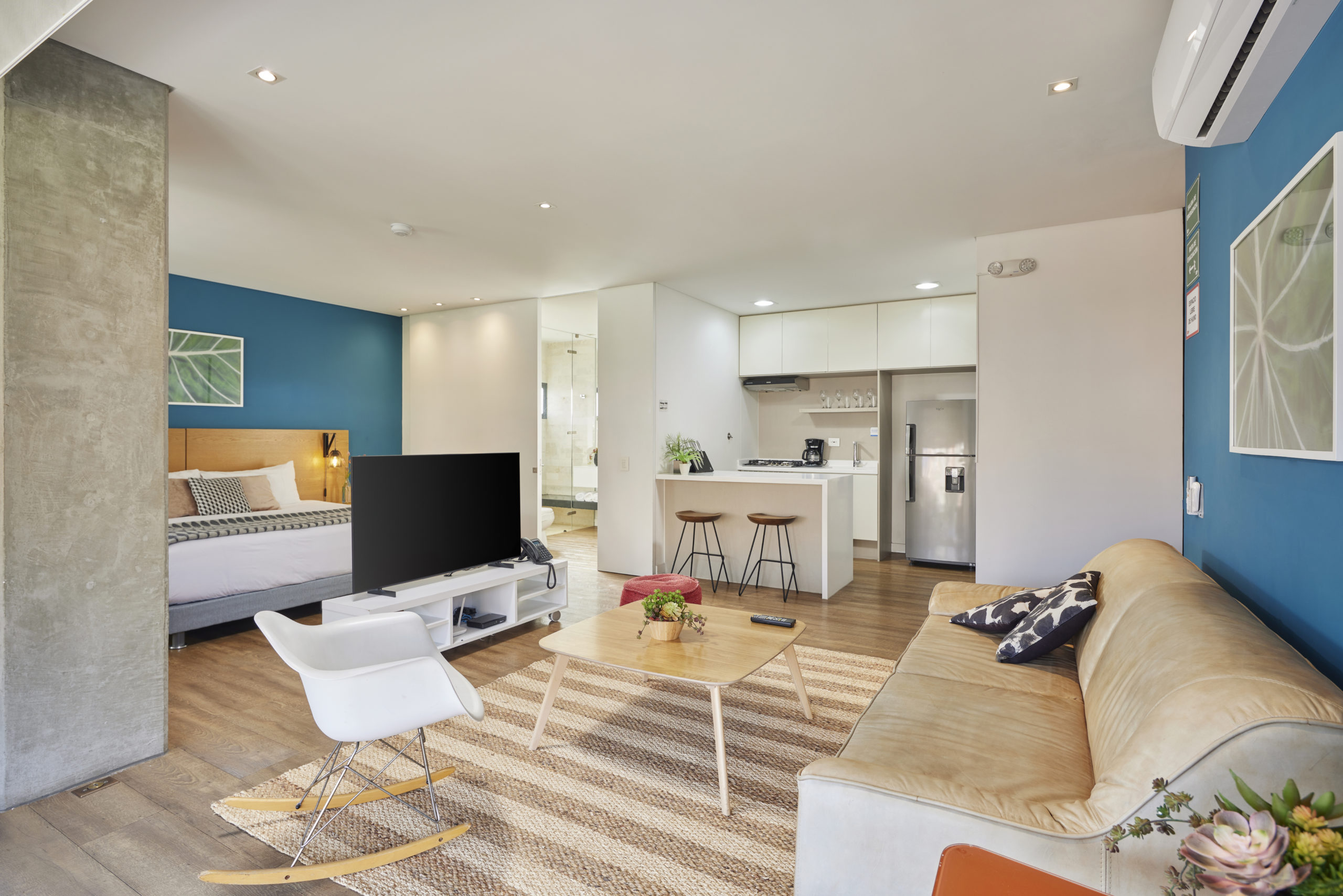 Escape to this stunning 1-bedroom apartment with a balcony offering a huge, amazing view, and air conditioning for your comfort. Modern and beautifully designed, it’s the perfect spot to unwind and enjoy the scenery. Nestled in the prestigious Energy Living building, enjoy top-tier amenities: a breathtaking infinity rooftop pool on the 22nd floor, a fully equipped gym, a relaxing steam bath, and the all-day Alquimista restaurant onsite. Just a short walk to Carulla supermarket and a vibrant mall brimming with delightful dining options!