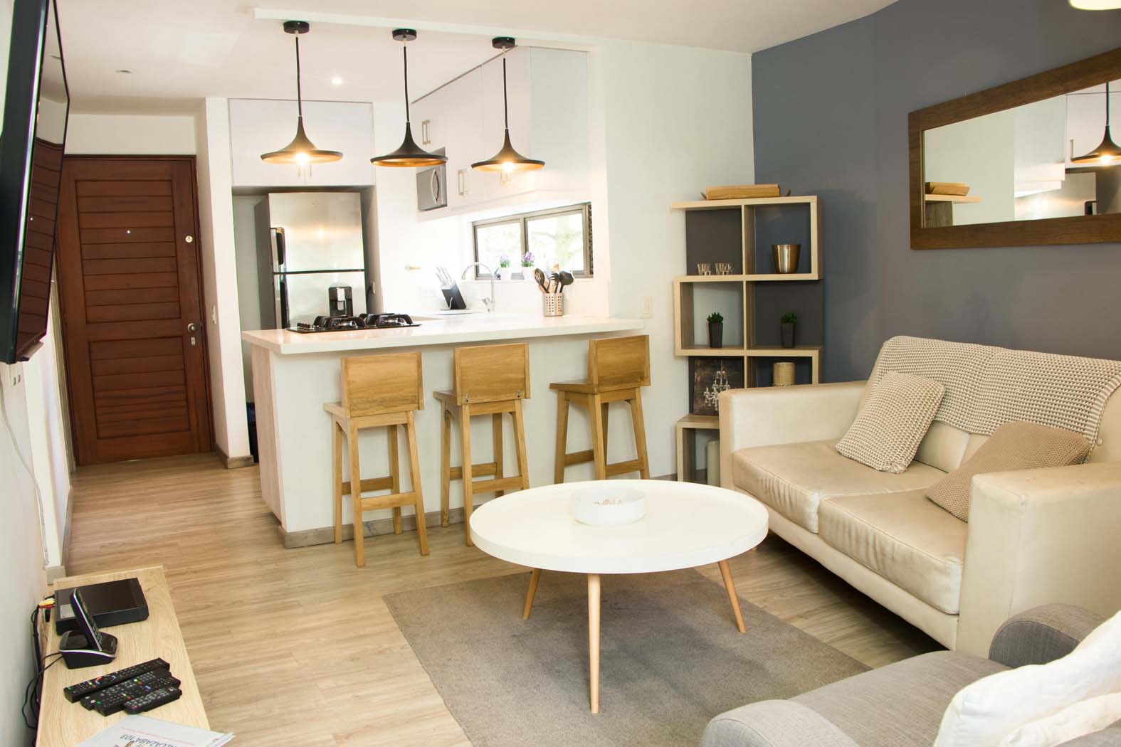 This unique 1 bedroom apartment is located in the Provenza area of Poblado, know for its great options of restaurants and nightlife. The unit is fully equipped kitchen, spacious living room and equipped with a smart TV and a balcony with a view. The neighborhood is very quiet.