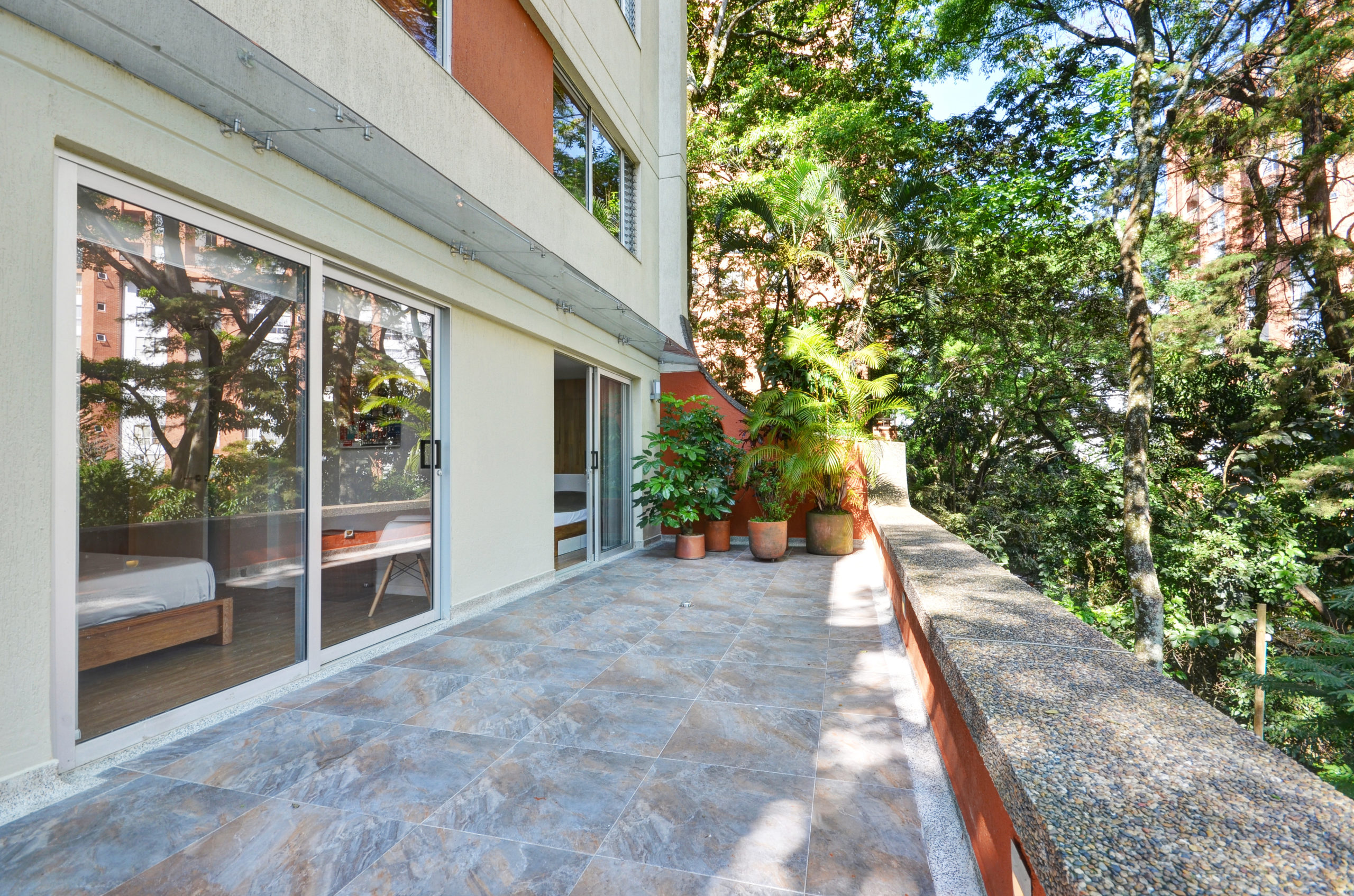 With minimalist furnishings and a sleek aesthetic, the space features two comfortable bedrooms, two modern bathrooms, and a spacious living room crafted for relaxation. The highlight is a stunning 40 m² terrace, perfect for hosting guests, enjoying meals, or simply taking in the serene natural views.
