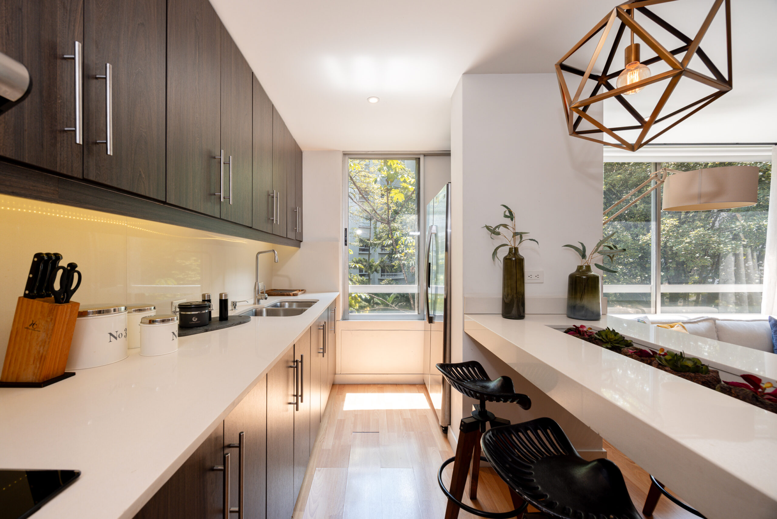 This warm and inviting 2-bedroom apartment is ideal for extended stays. Perfectly located in a peaceful residential area of El Poblado, it allows you to enjoy the best of both worlds: a quiet, comfortable space to relax, just minutes away from the energy of Provenza’s restaurants, cafés, and shops.
