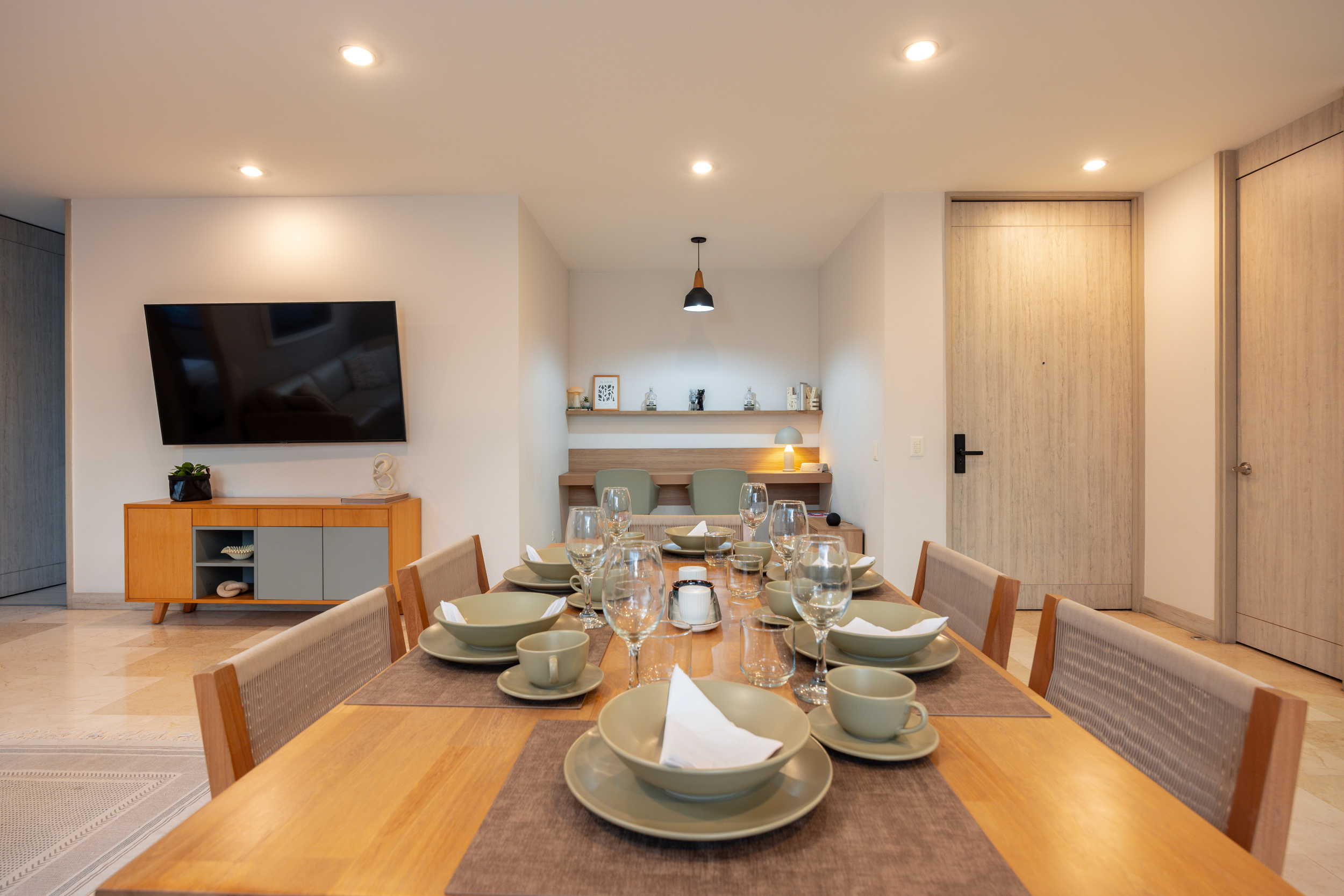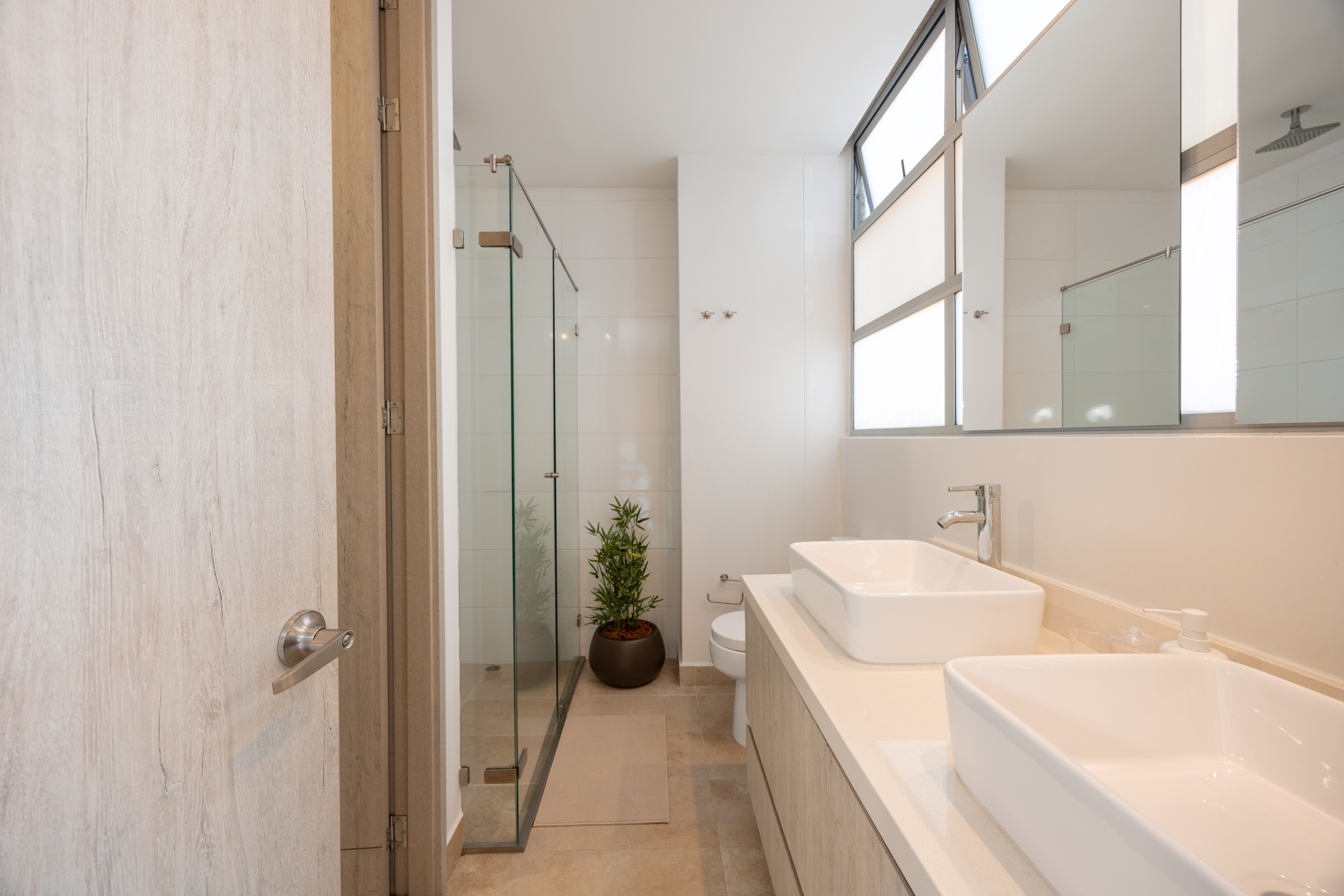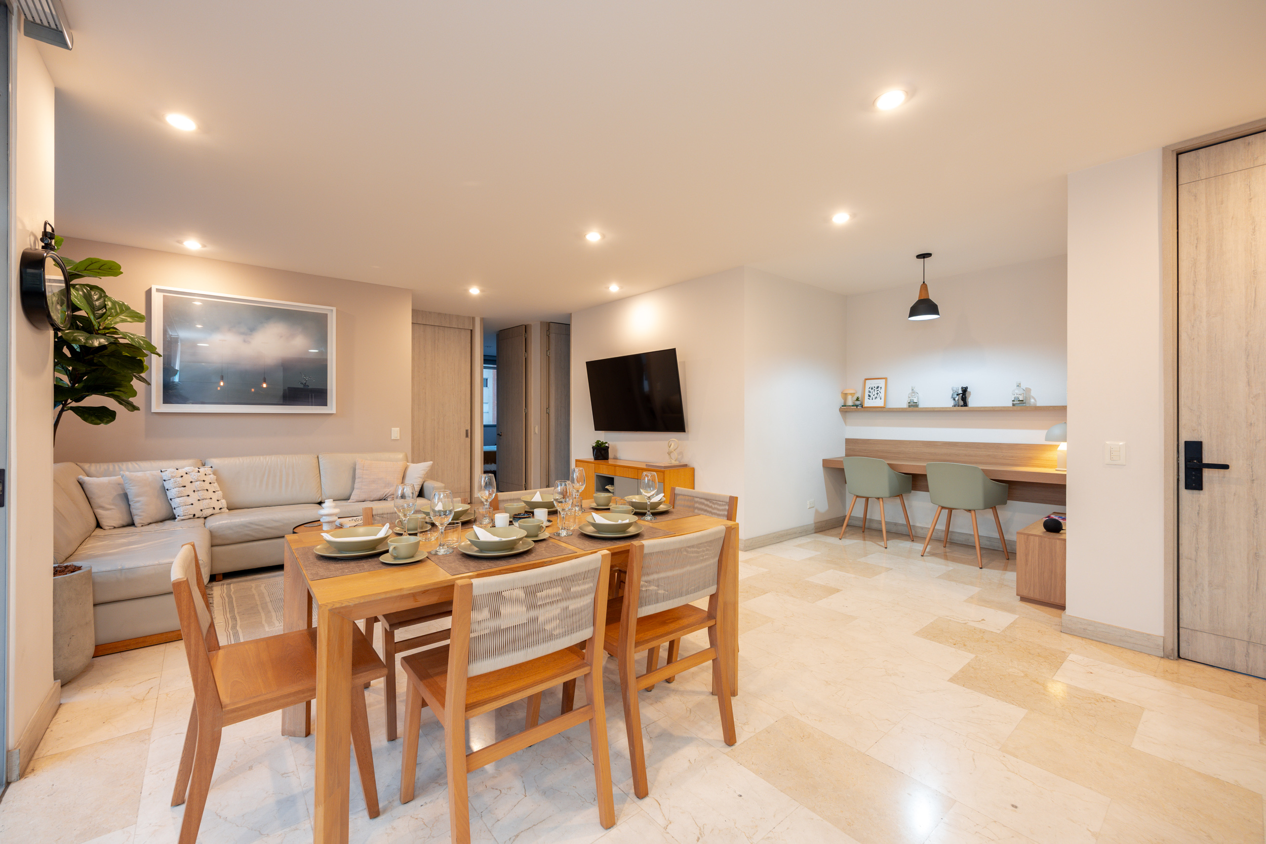 Welcome to a refined and spacious retreat located in one of Medellín’s most sought-after neighborhoods. Just a short walk from the lively Provenza district, this beautifully designed apartment offers the perfect balance between comfort, style, and functionality—ideal for business travelers, families, or long-term stays. The apartment features three generously sized bedrooms, each with its own private en-suite bathroom, plus an additional half bathroom for guests. The open and thoughtfully planned living areas are designed to make you feel at home, whether you are working remotely, relaxing, or entertaining. A fully equipped modern kitchen, dedicated office space, and in-unit laundry provide everything you need for a seamless stay. Large windows fill the space with natural light, creating a warm and inviting atmosphere throughout. After a busy day exploring the city or working, enjoy access to premium building amenities, including a swimming pool and steam room—perfect for unwinding and recharging. With its prime location, elegant interiors, and excellent amenities, this apartment offers a sophisticated living experience in the heart of Medellín, combining convenience, privacy, and comfort in one exceptional space.