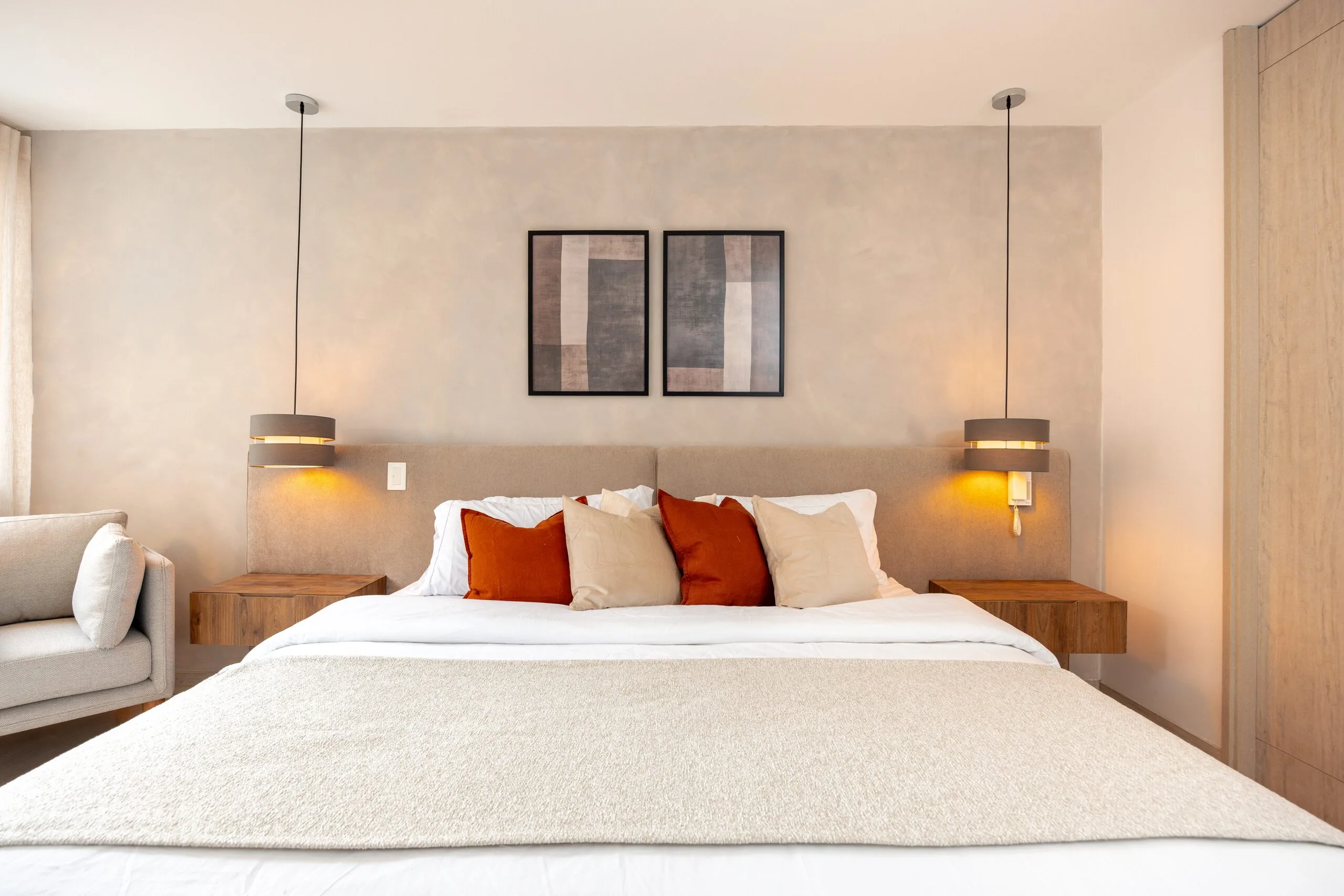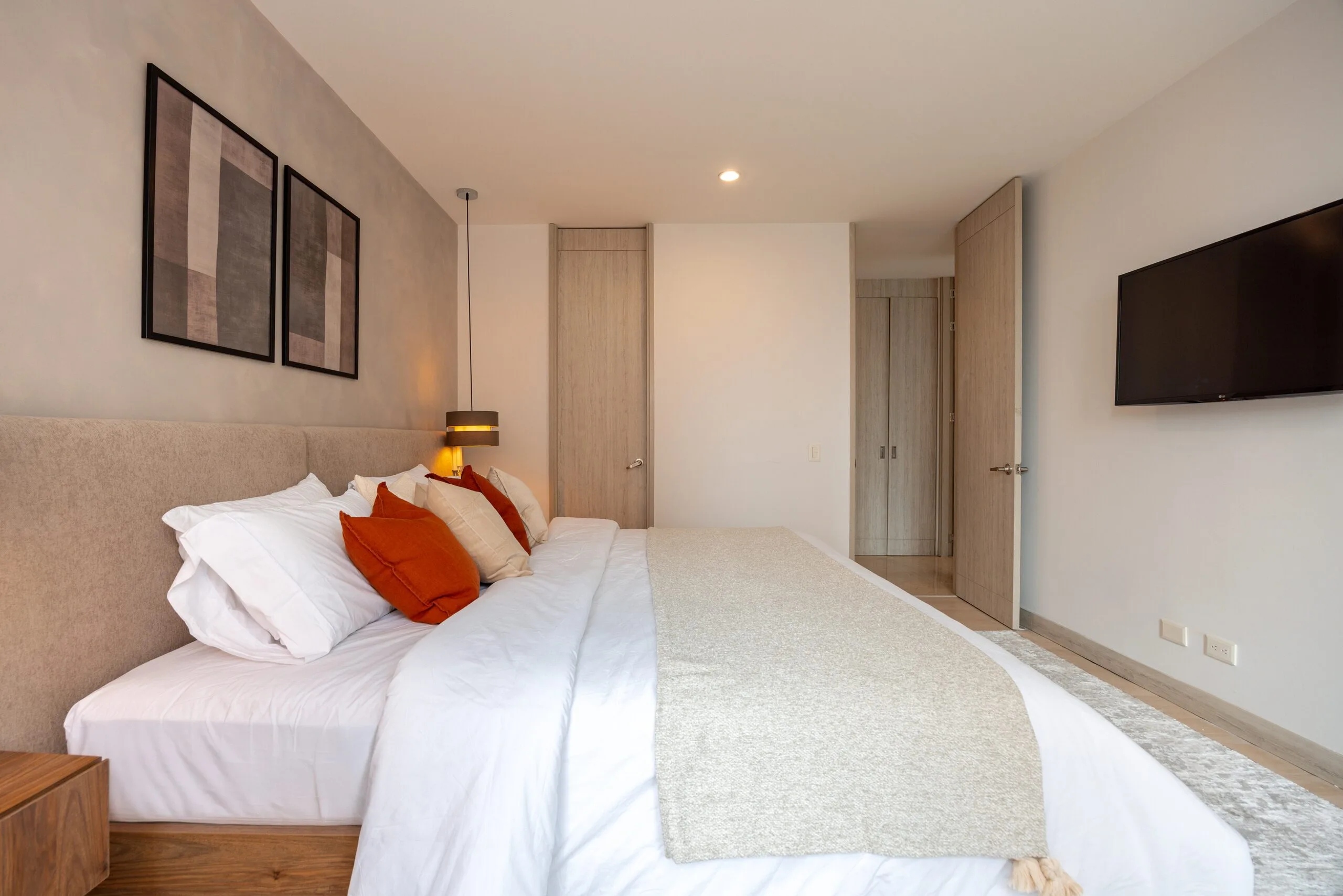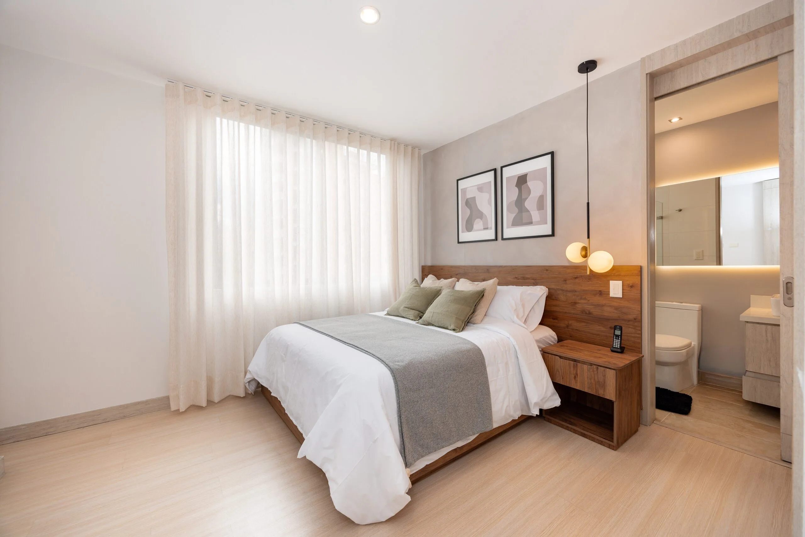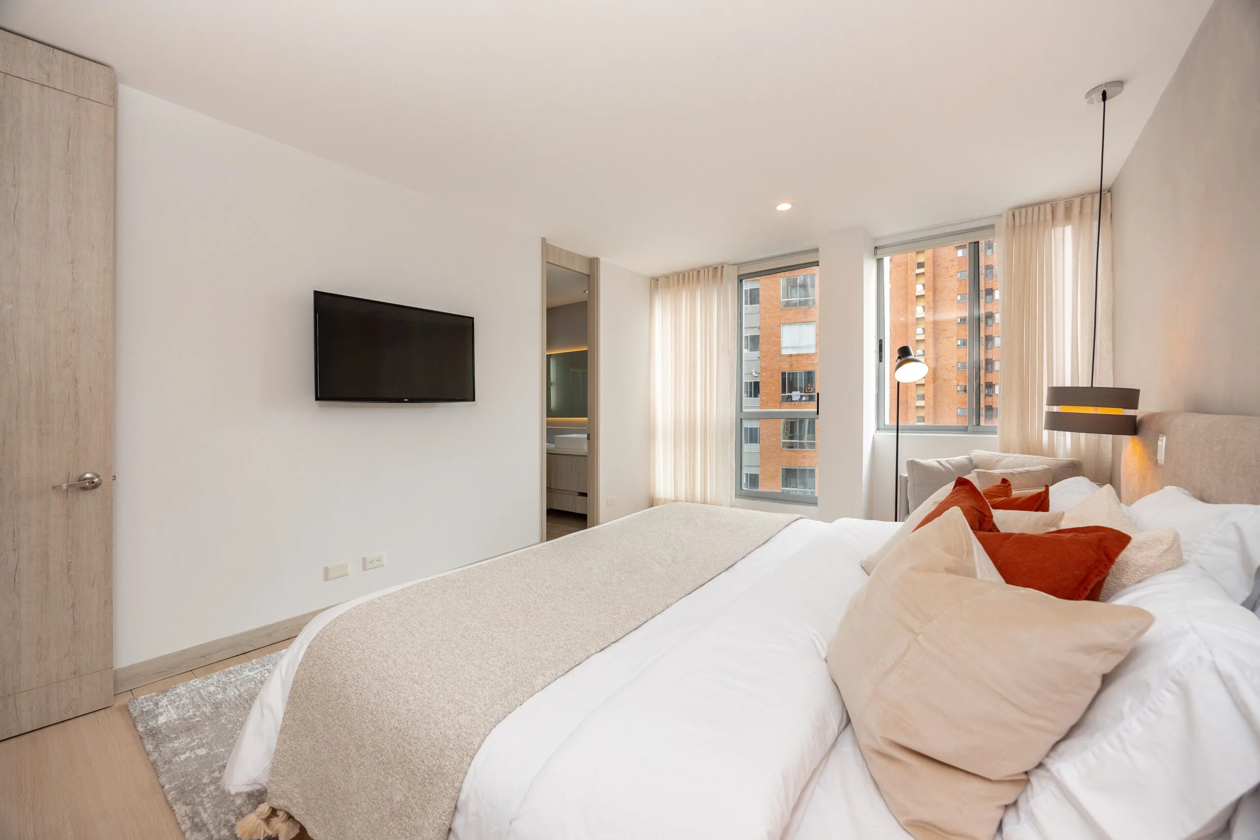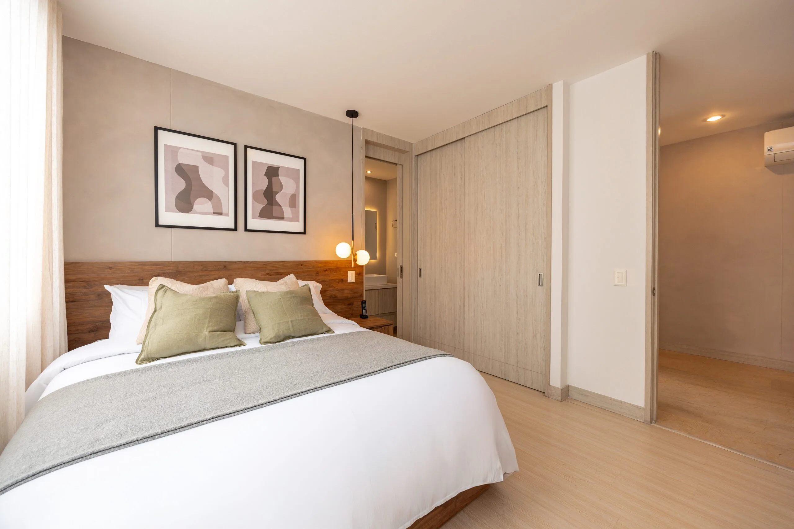 The apartment features a fully-equipped kitchen with a microwave, refrigerator, and oven, plus the convenience of an in-unit washer and dryer. The master bedroom offers a king-size bed, ensuite bathroom, walk-in closet, and a safe box for your valuables. The second bedroom is equally comfortable, with a queen-size bed, closet, and ensuite bathroom. Bright, stylish, and thoughtfully designed, Lalik is your ideal home for a memorable Medellín stay.
