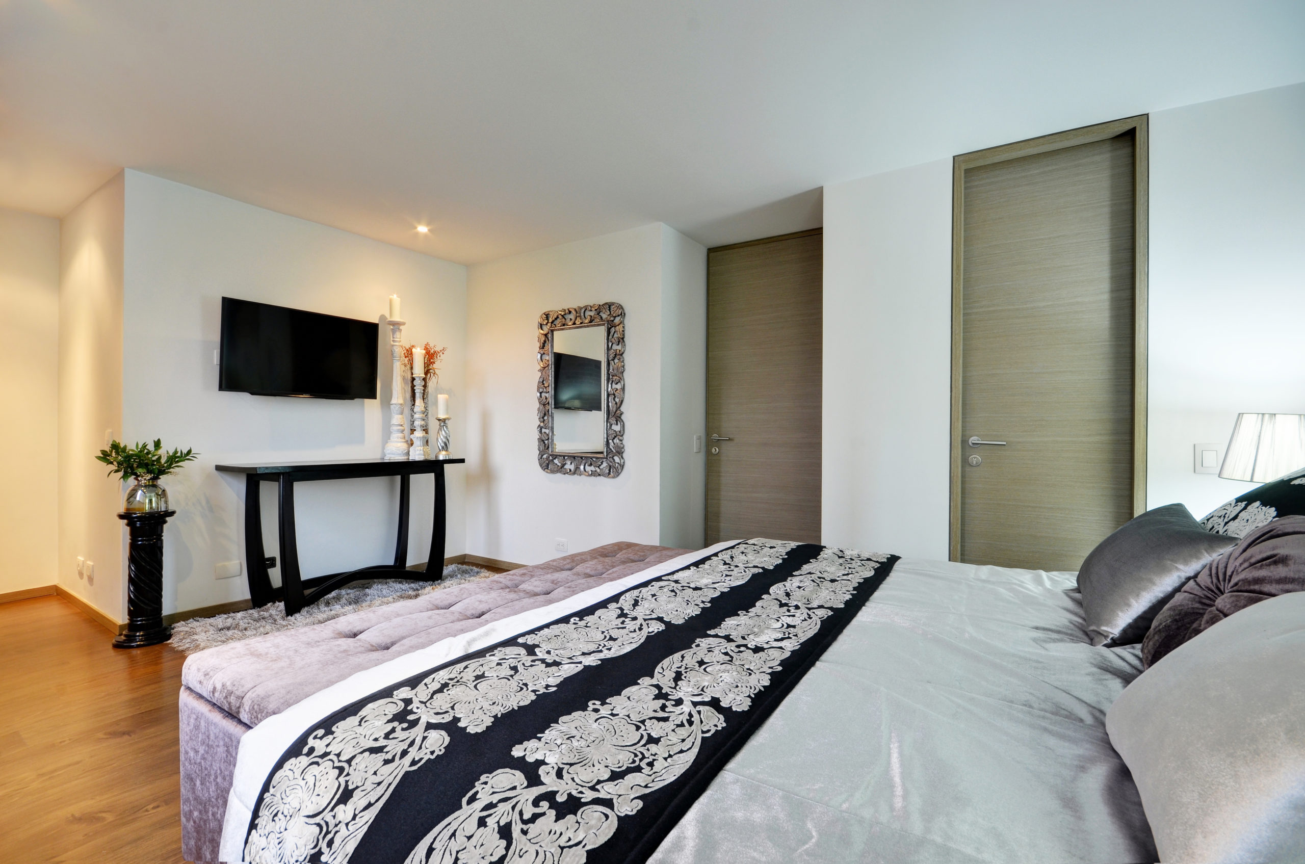 The master bedroom features a plush king-size bed, an en suite bathroom, and a safe box, while the second bedroom offers a cozy queen-size bed with ample closet space. Whether you’re visiting for business or leisure, this high-end apartment is your ideal retreat in Medellín.