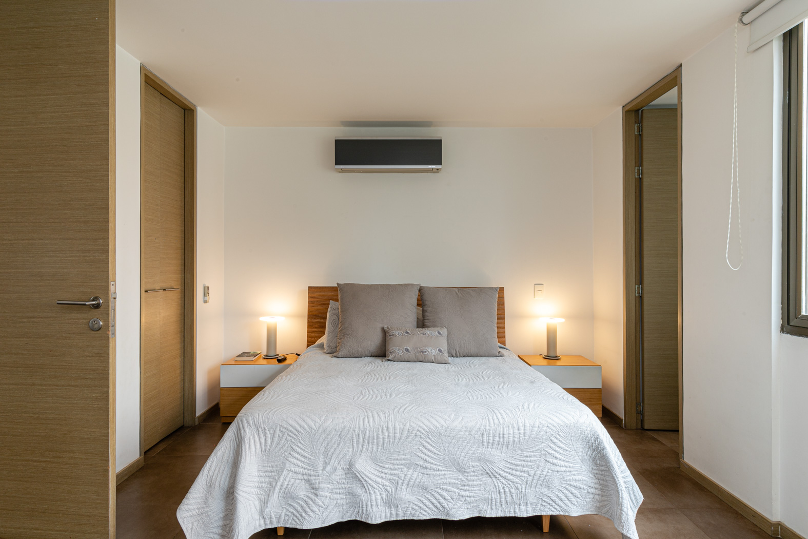 The master bedroom offers a queen-size bed, A/C, TV, a walk-in closet, and a private bathroom for ultimate comfort. The secondary bedroom features a cozy double bed, TV, and its own private bathroom.