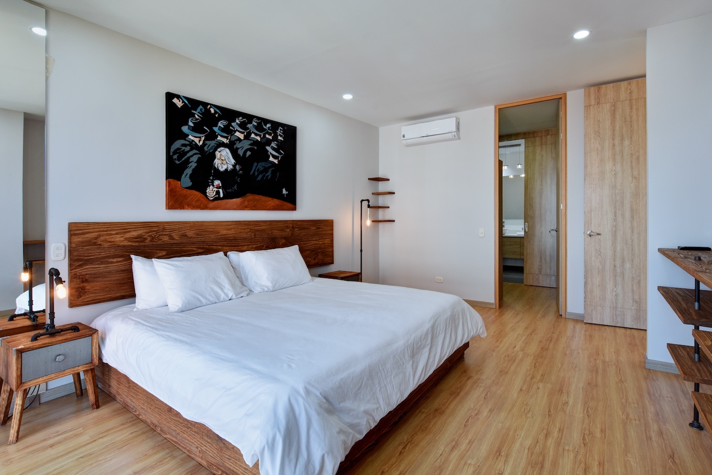 This stunning 3-story penthouse in El Poblado, Medellín, offers urban luxury at its finest. Perched atop the Obra Quince building, it features a fully equipped kitchen, spacious living room with a karaoke system, custom bar, and wine cellar, perfect for entertaining. Three lavish bedrooms, each with queen and king beds, air conditioning, and TVs, promise comfort and style. Enjoy breathtaking views from the 60sqm roof terrace, or immerse yourself in the unique artworks and elegant furnishings throughout.
