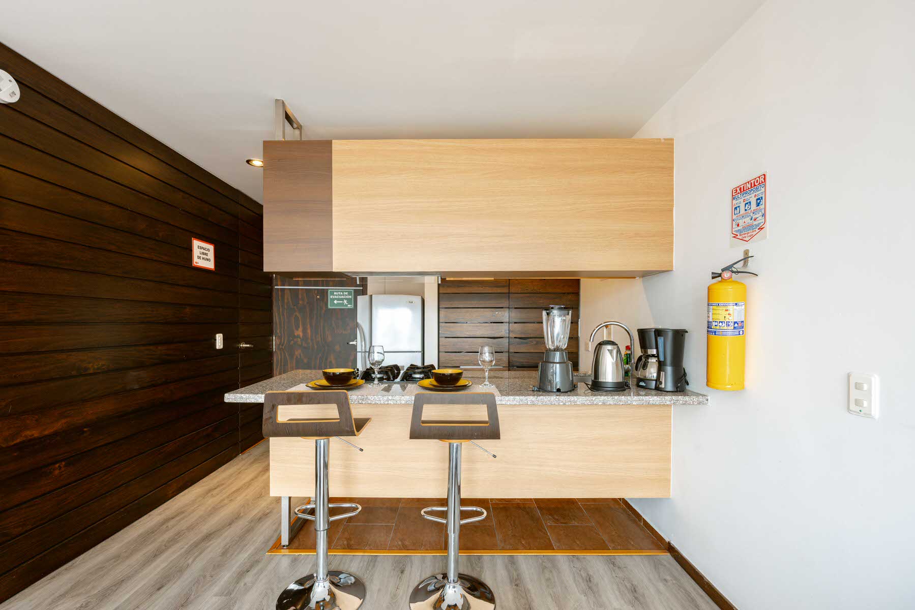 Stay in our spacious studios at Moderatto, located on a high floor with beautiful views of the city. Each apartment comes with a fully equipped kitchen, perfect for preparing meals during your long-term stay. Enjoy the comfort of a sofa, flat TV, and 1.5 bathrooms. Work remotely or relax on the terrace, and unwind with the sauna. A cozy café is located on the first floor. Situated in the peaceful Laureles neighborhood, close to Unicentro Shopping Mall for all your needs.