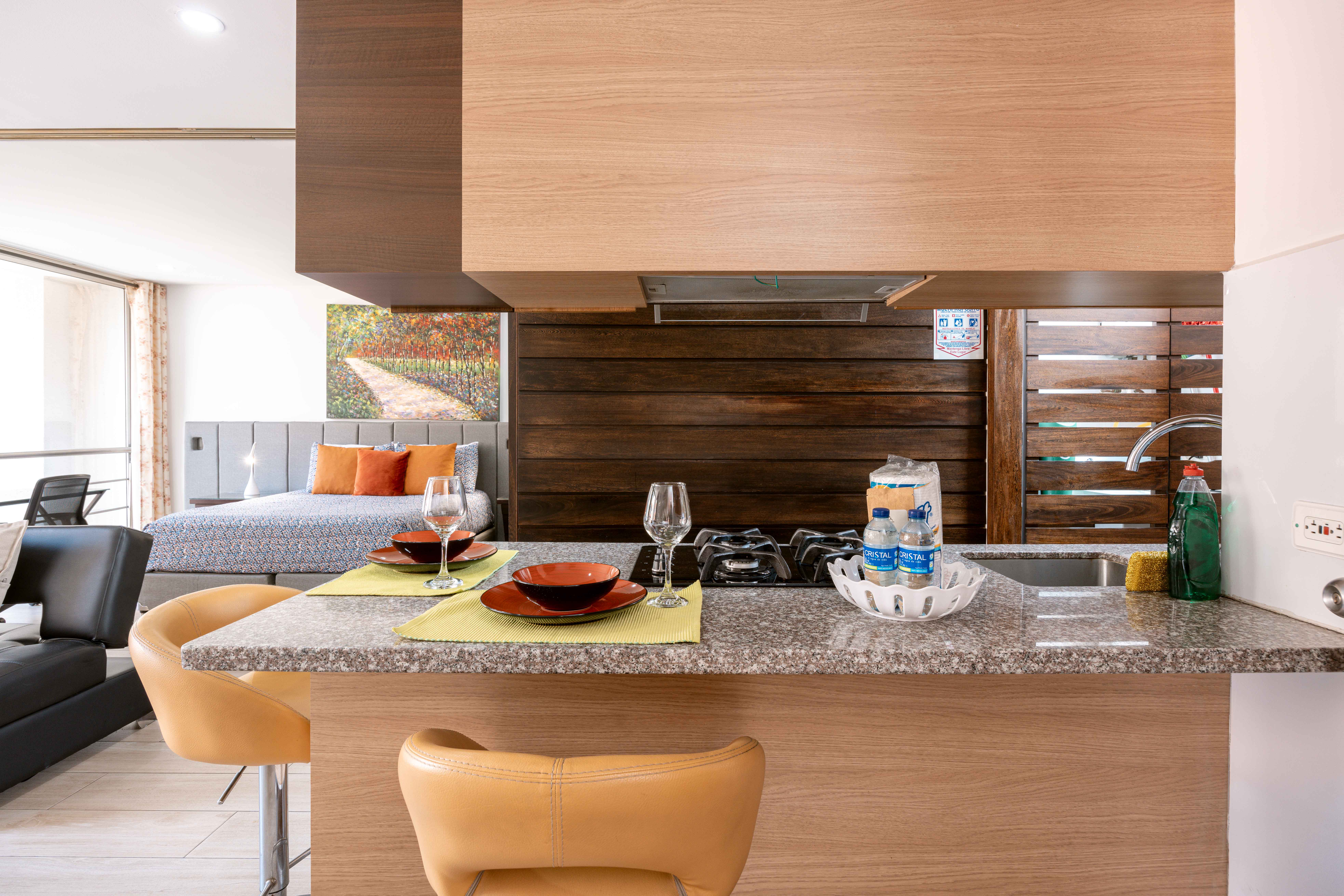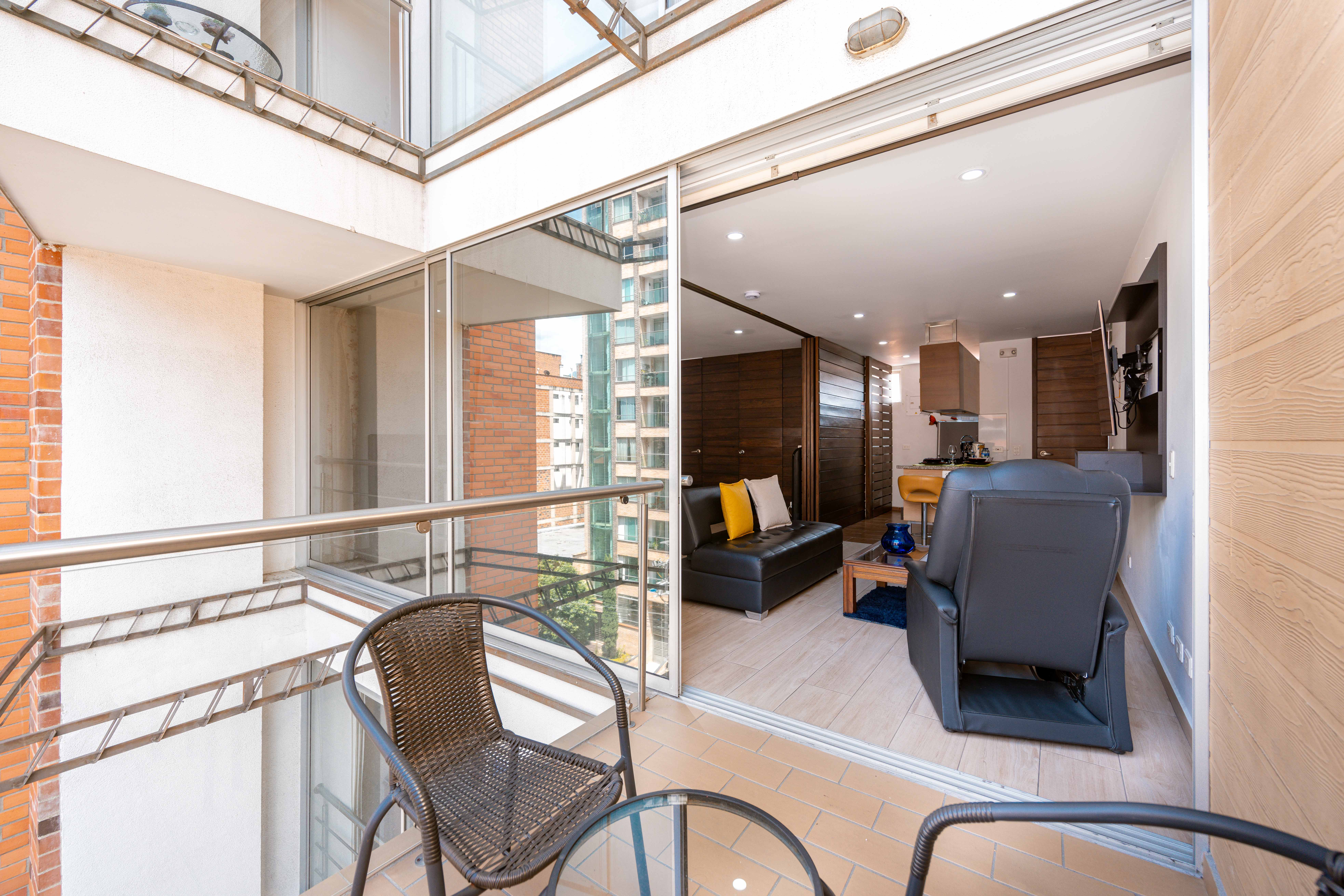 Relax in our spacious studios at Moderatto after exploring the city. Each apartment features a fully equipped kitchen, perfect for preparing meals and enjoying long-term stays. The sofa bed, flat TV, and 1.5 bathrooms ensure comfort. Ideal for remote work, with a terrace and sauna on the top floor. Located in Laureles, Medellin’s best neighborhood for an authentic experience, close to Unicentro Shopping Mall. Enjoy privacy, comfort, and easy access to all the essentials during your stay.