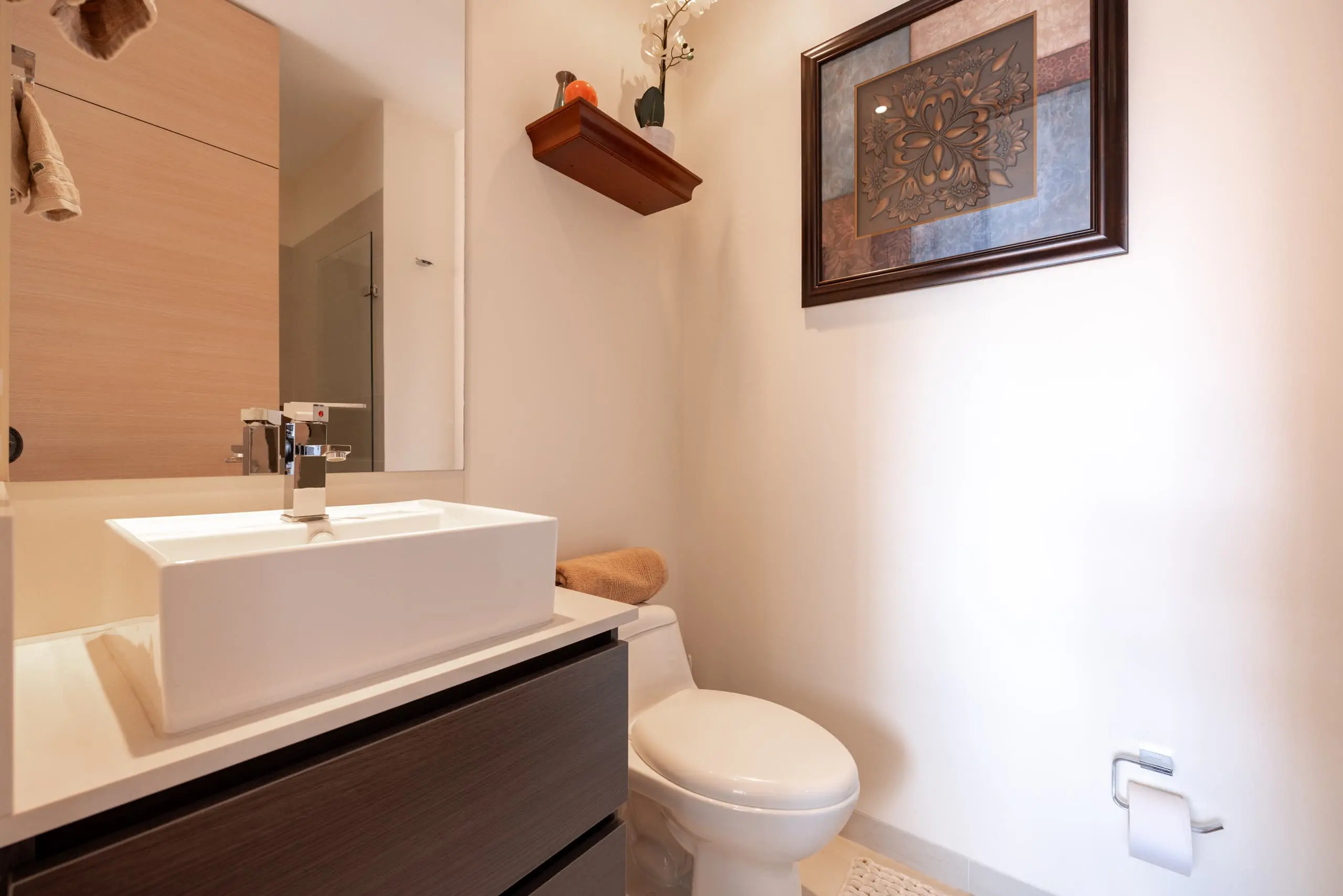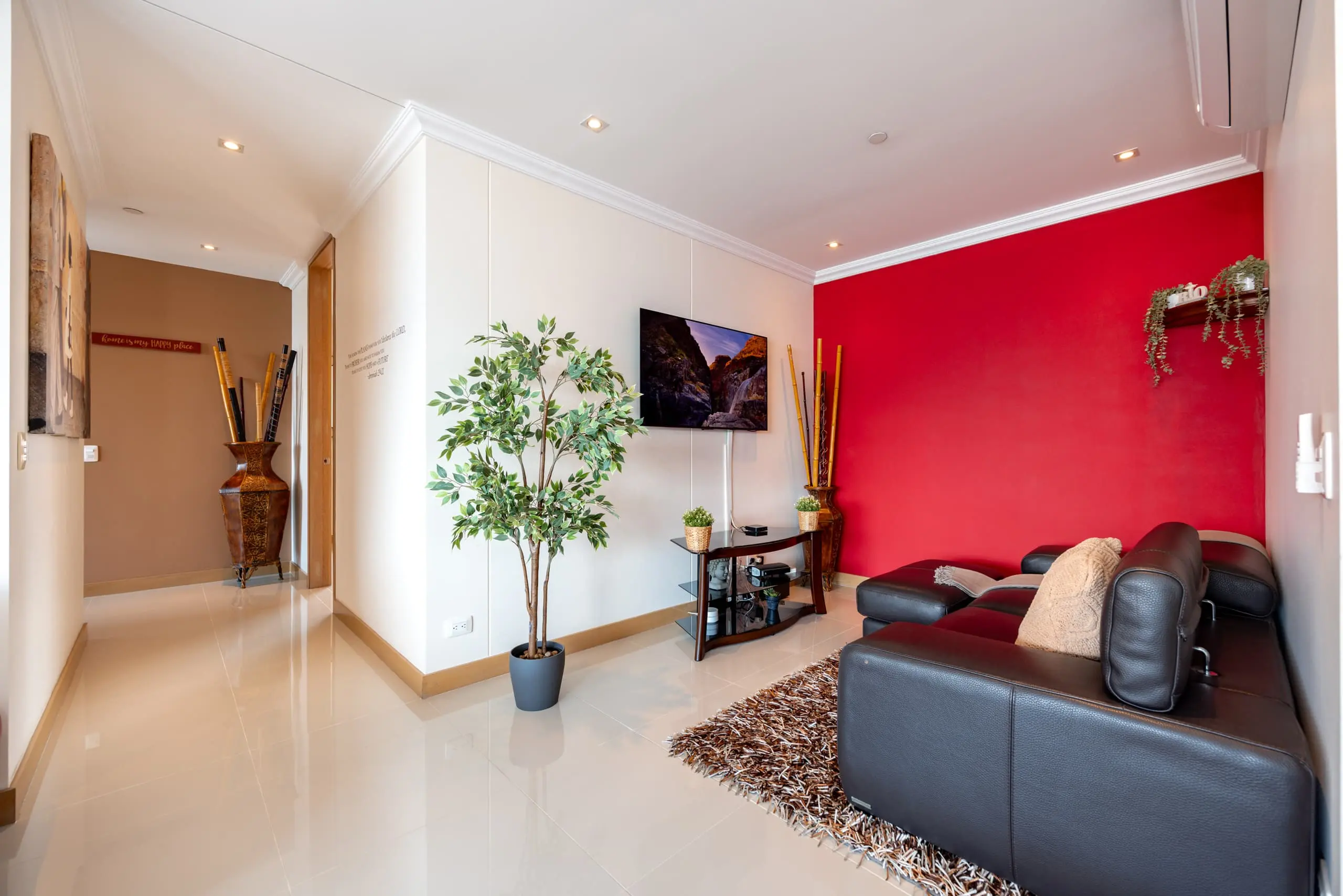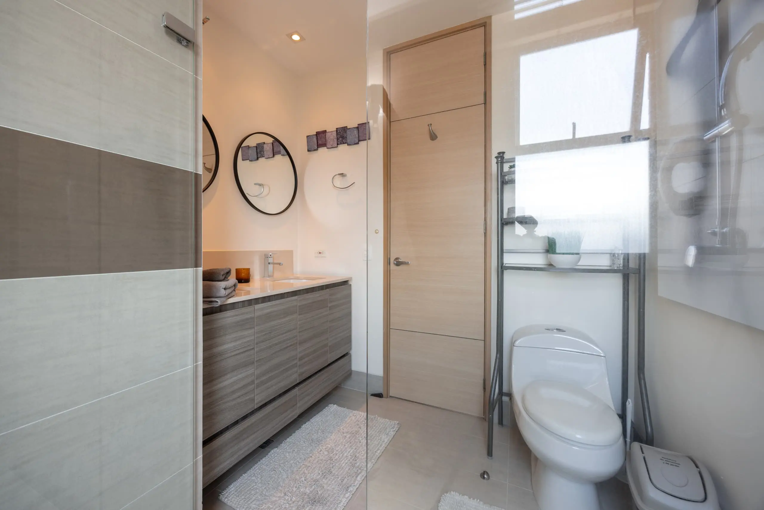 This luxurious 3-bdr apt offers comfort with private bathrooms in each room. The masters includes a king bed, walk-in closet, and a double-sink bath. The spacious living room has a dining area for 6, a TV area, and a balcony w/ stunning views. It has a fully equipped kitchen, dishwasher, and laundry area with another room. Located on the 17th floor, Atenas offers a pool, gym, steam room, squash court. 3 min to San Fernando Mall and 10 to Provenza. Ideal for families, digital nomads, and tourists