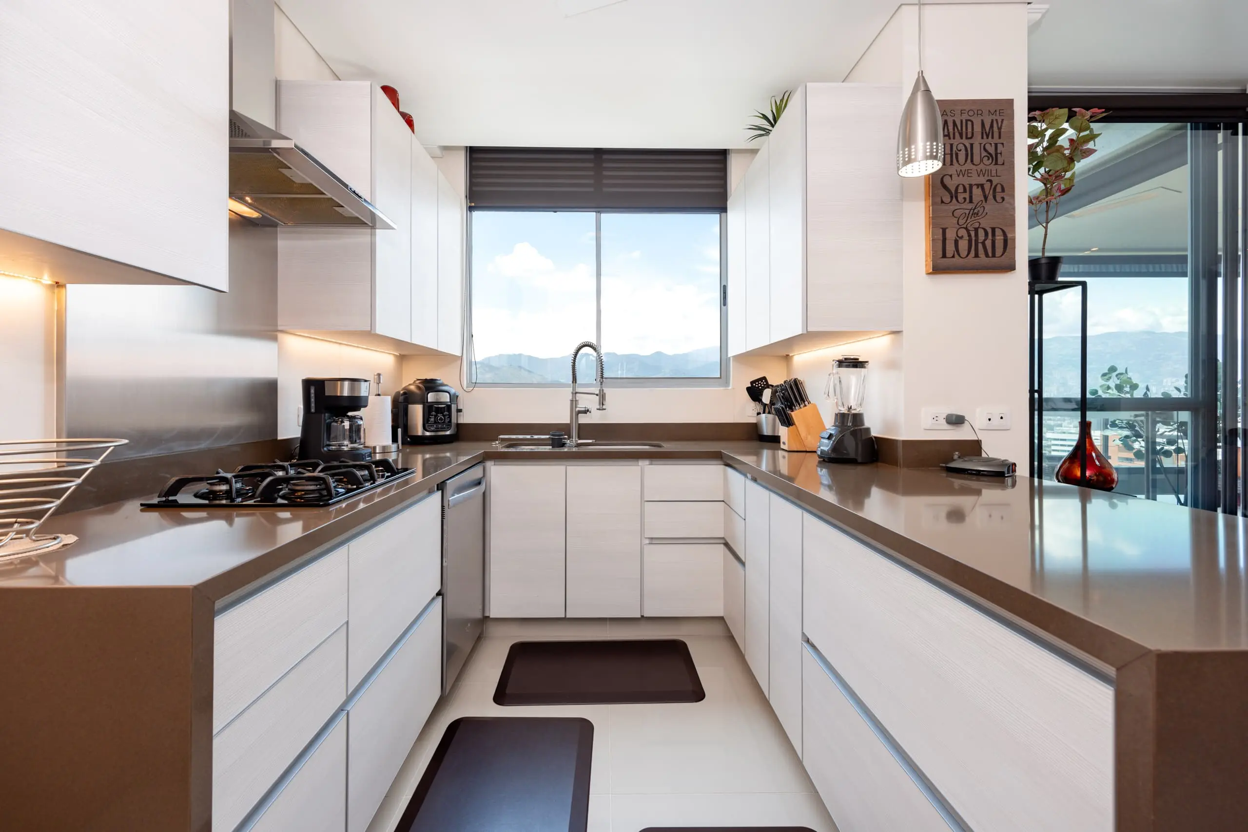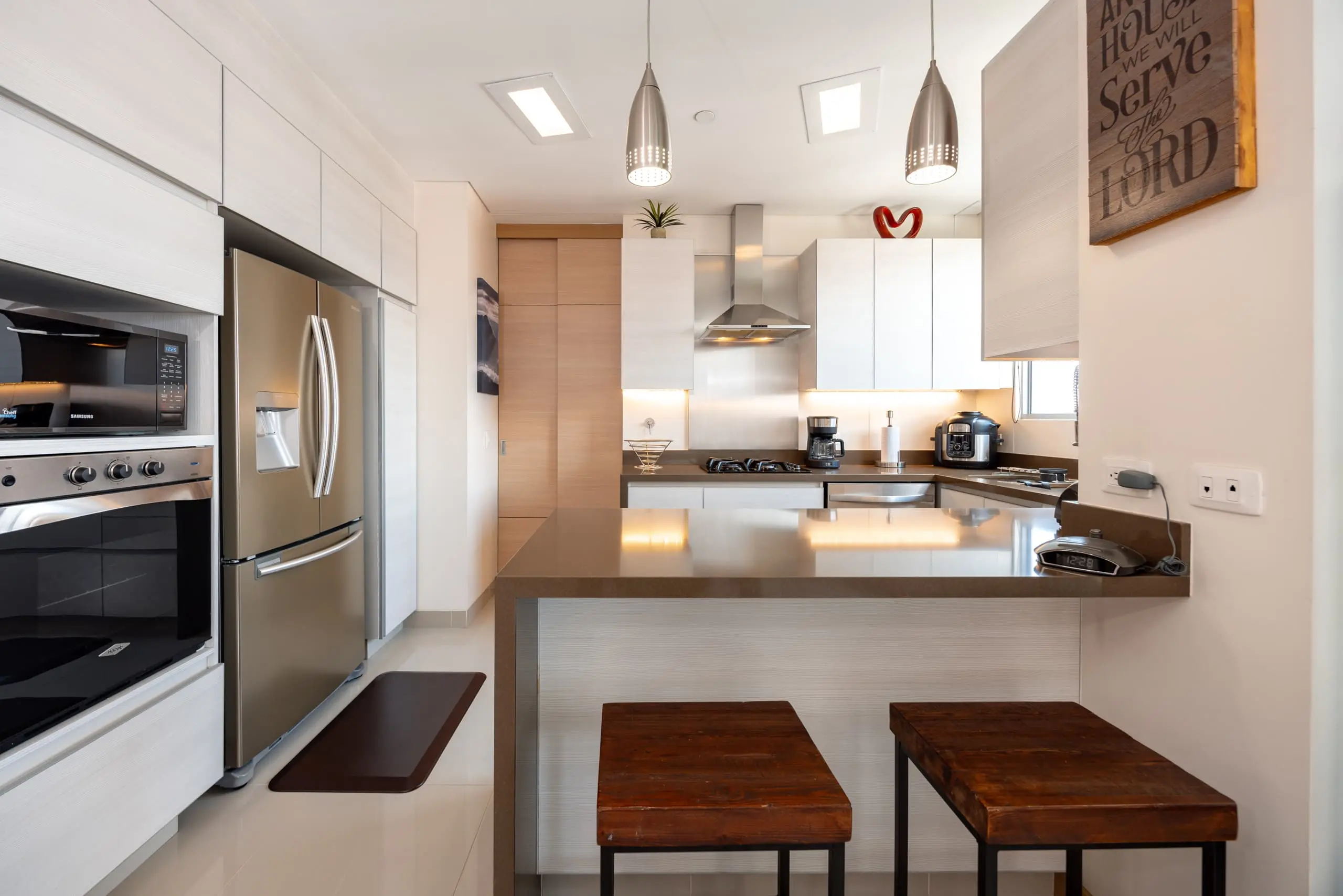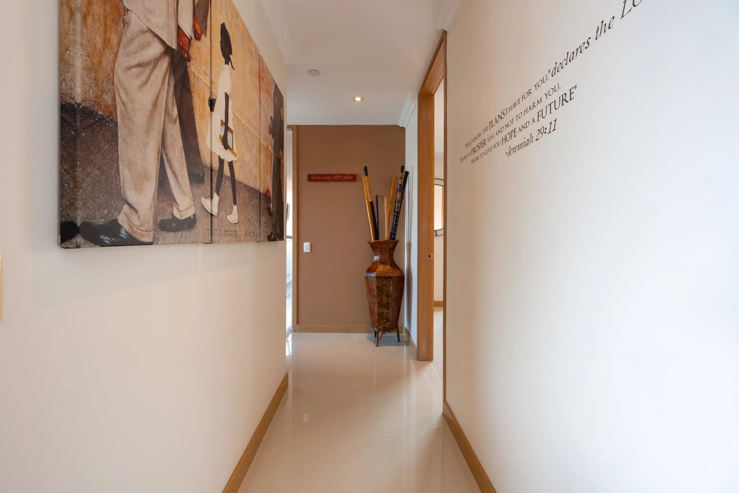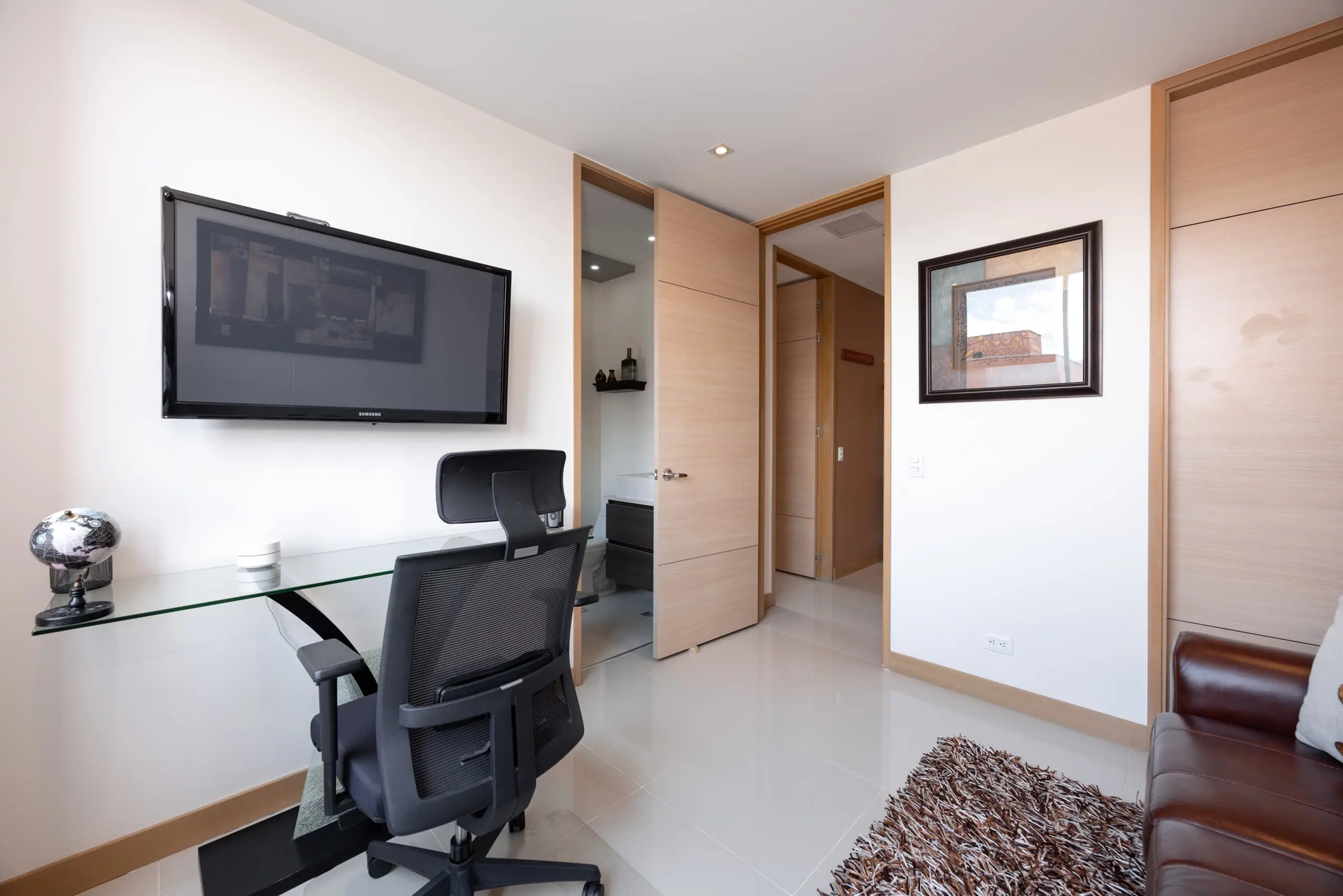This luxurious 3-bdr apt offers comfort with private bathrooms in each room. The masters includes a king bed, walk-in closet, and a double-sink bath. The spacious living room has a dining area for 6, a TV area, and a balcony w/ stunning views. It has a fully equipped kitchen, dishwasher, and laundry area with another room. Located on the 17th floor, Atenas offers a pool, gym, steam room, squash court. 3 min to San Fernando Mall and 10 to Provenza. Ideal for families, digital nomads, and tourists