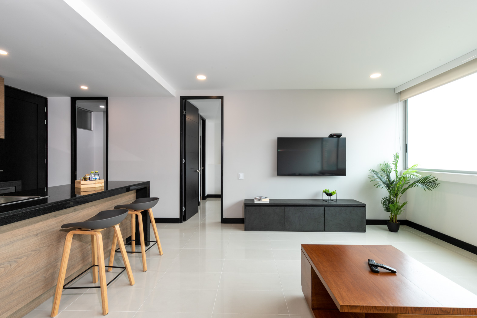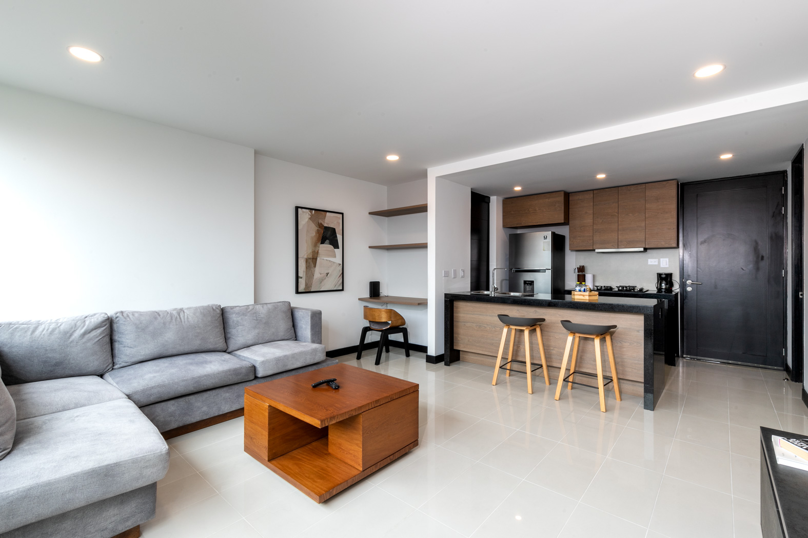 Welcome to your perfect long-term rental! This modern 1-bedroom, 1.5-bathroom apartment features a spacious living area with wide windows that invite natural light with amazing city views, a fully equipped kitchen, and a laundry room.Ideal for digital nomads, couples, business travelers, and tourists. The building has irresistible amenities: unwind by the rooftop pool, stay active in the gym, and 24/7 security.