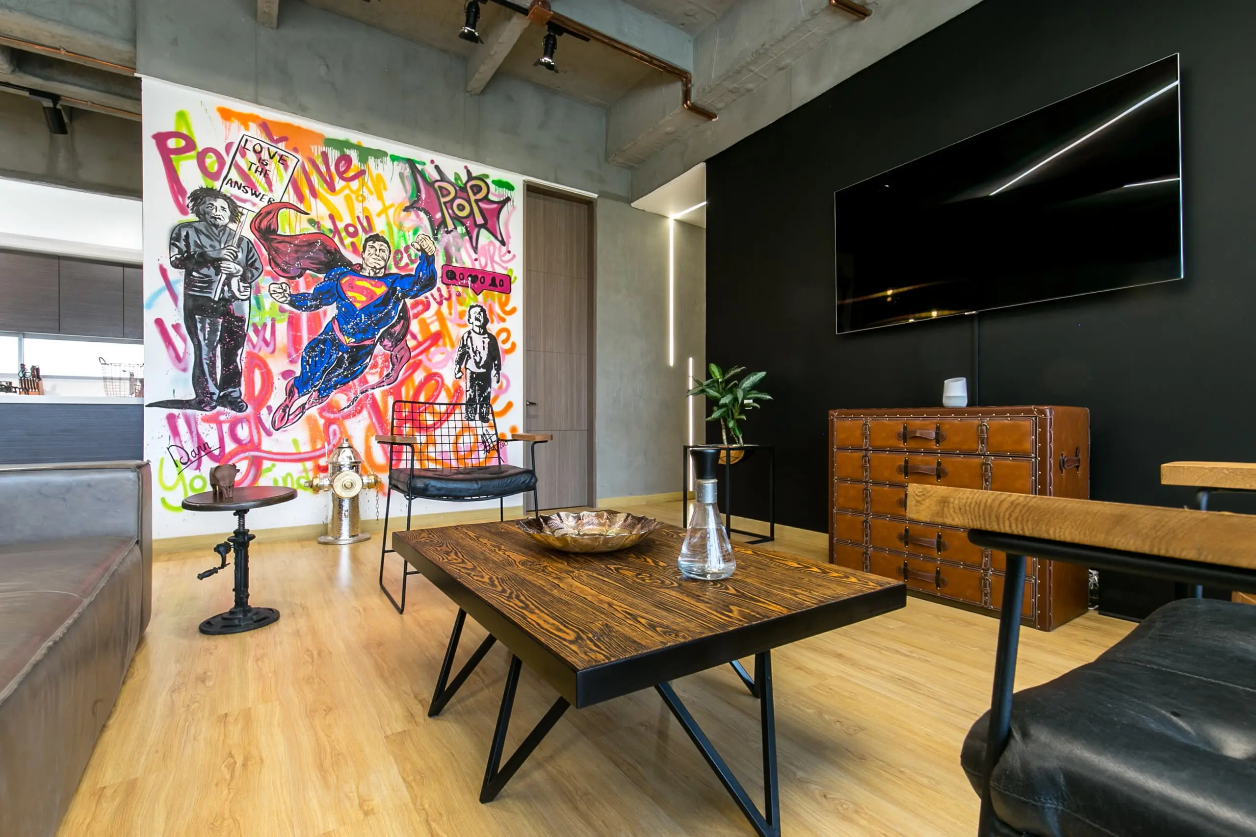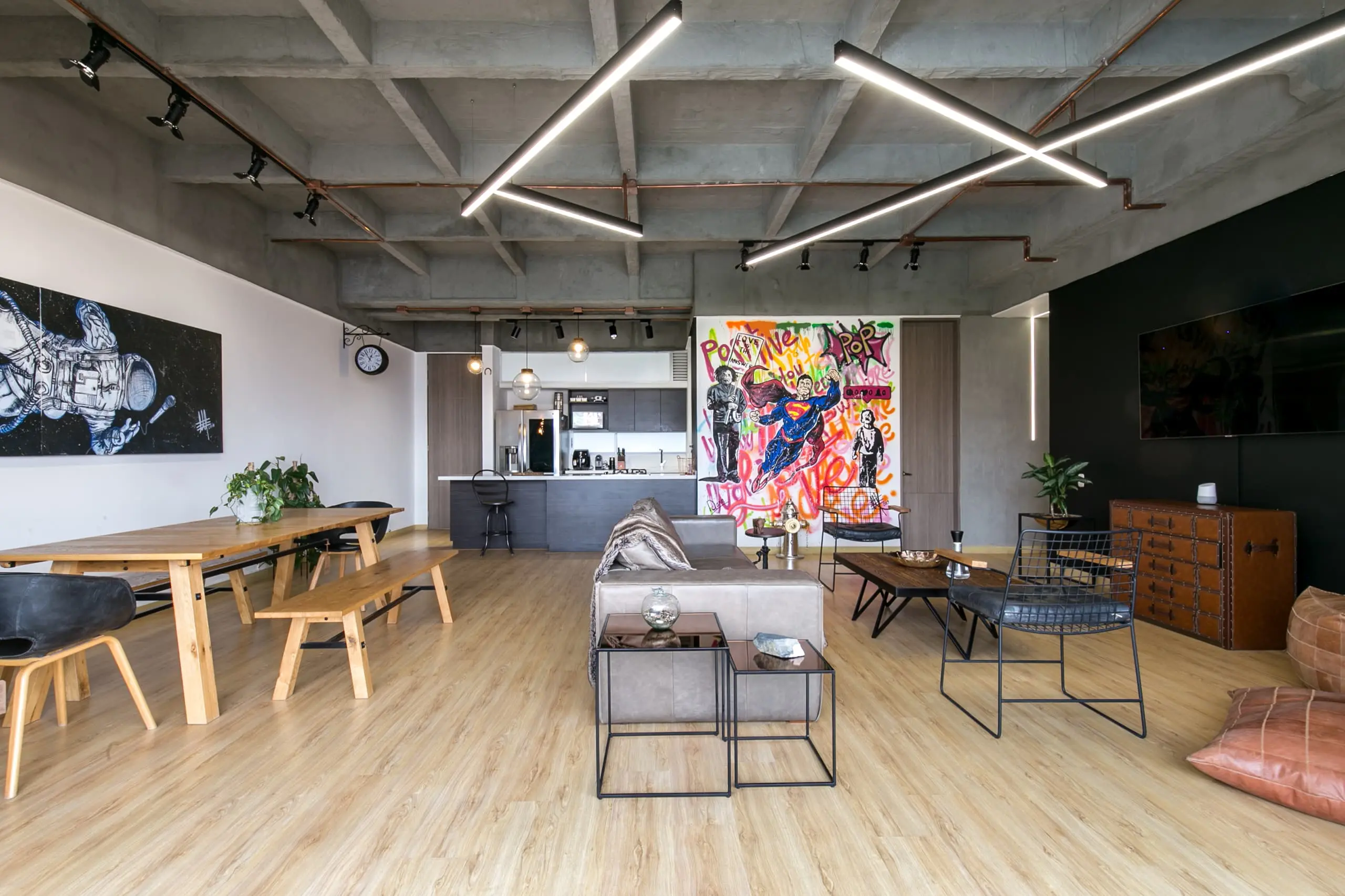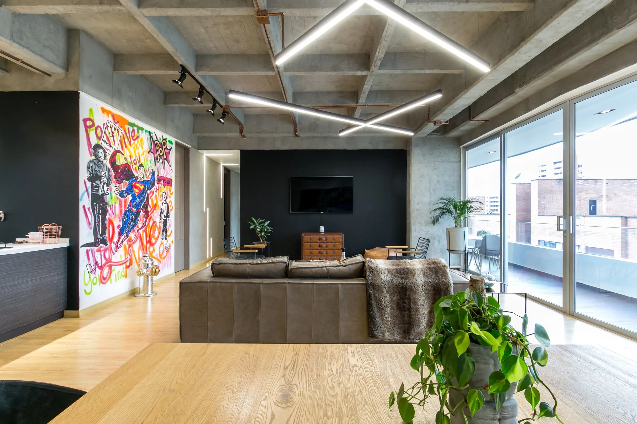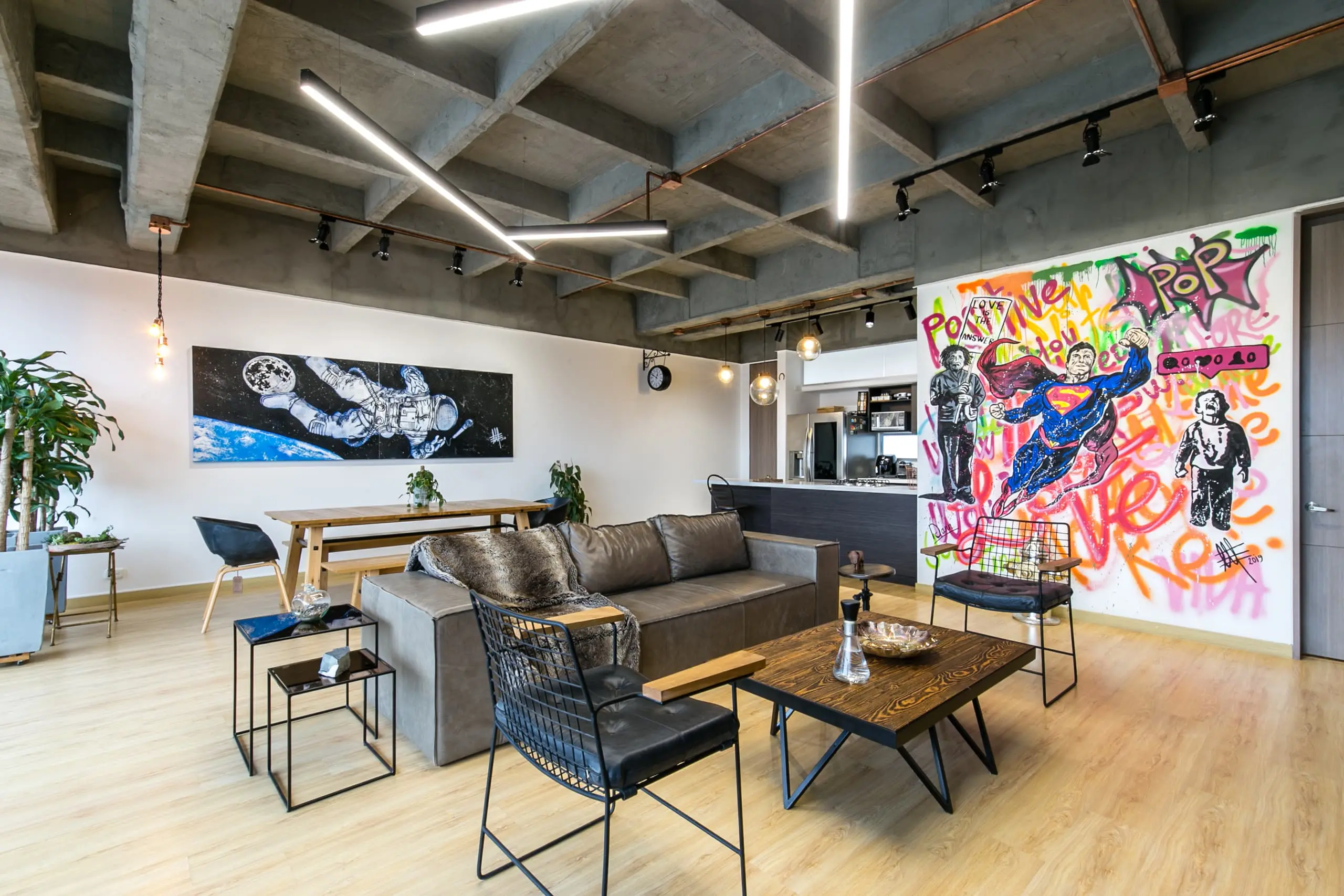 Obra Diecinueve #702 is a spacious apartment, full of design, art, and life, with 2 large bedrooms, a private studio, and 3 bathrooms.