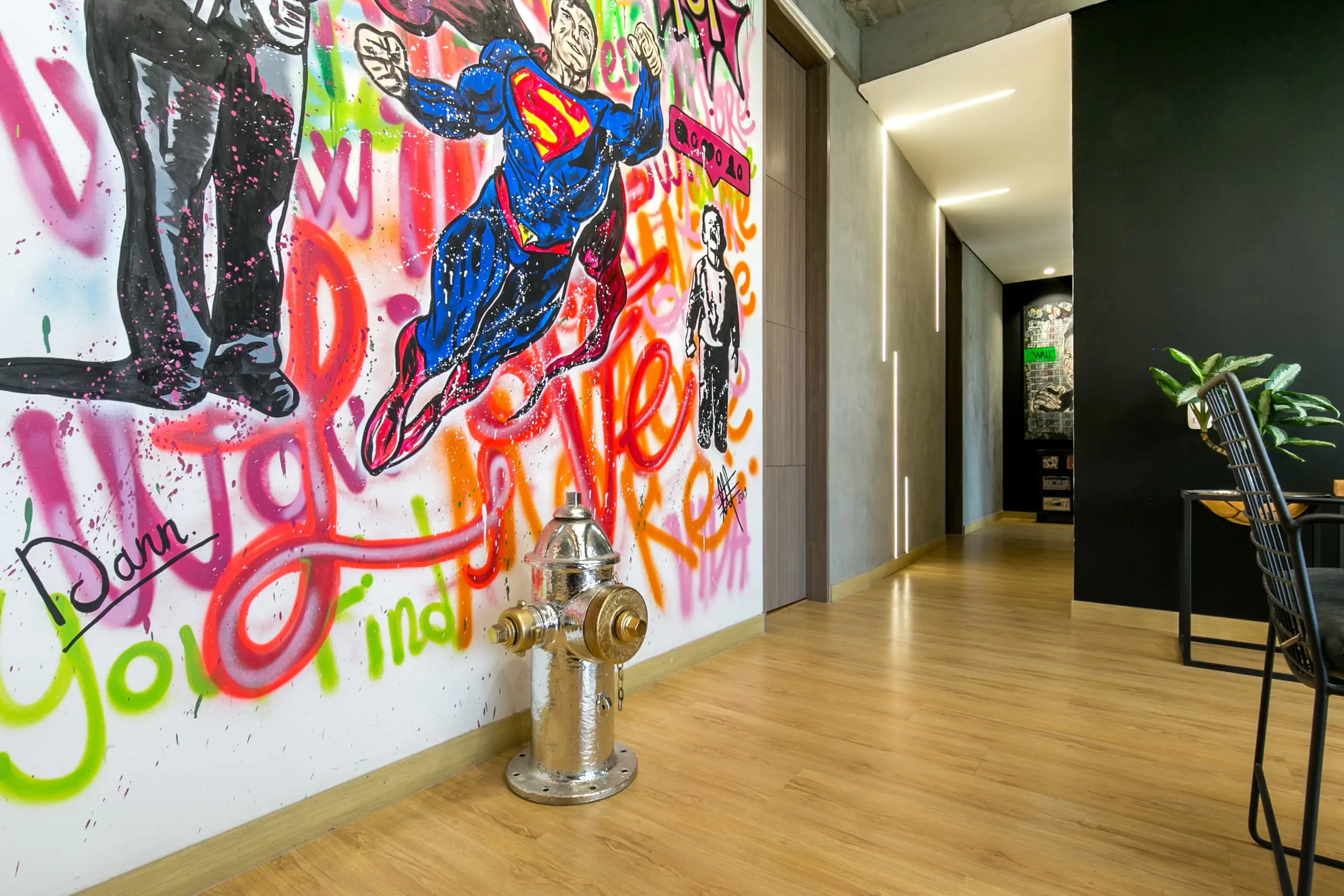 Obra Diecinueve is extremely well located between the Loma Los Parra and the Loma de Alejandría, a 5 minutes’ walk to the Golden Mile (Avenida El Poblado) where you have all the services that you might need in terms of shopping malls and restaurants, banks, supermarkets, and the best gym in the city. With the privilege of being at a 10min walk to Lleras Park or Poblado Park, but yet far enough to enjoy the tranquility. The apartment is full of details that will delight any art lover and those looking to enjoying the best of Medellin.