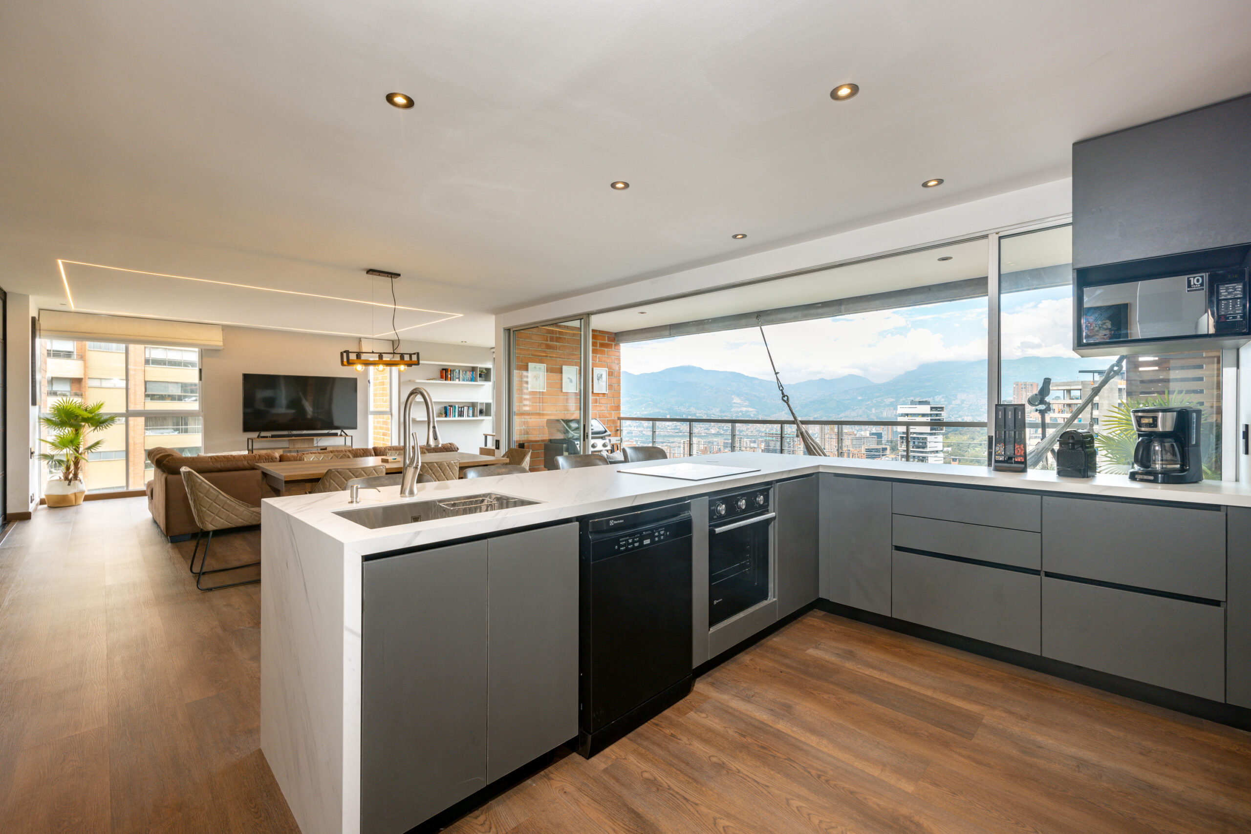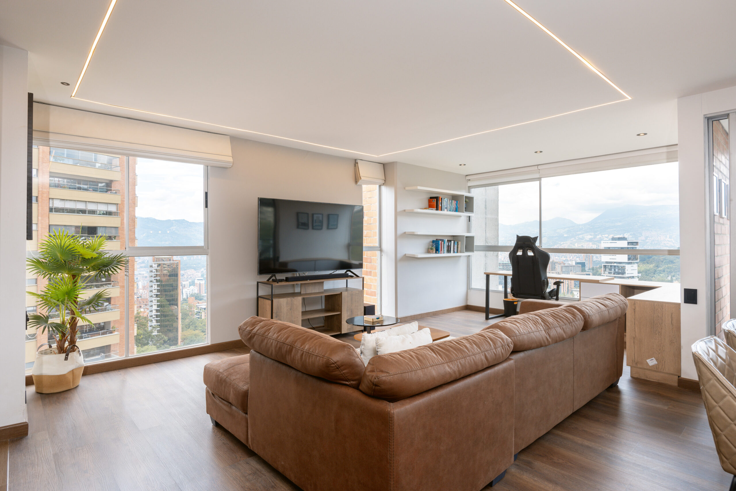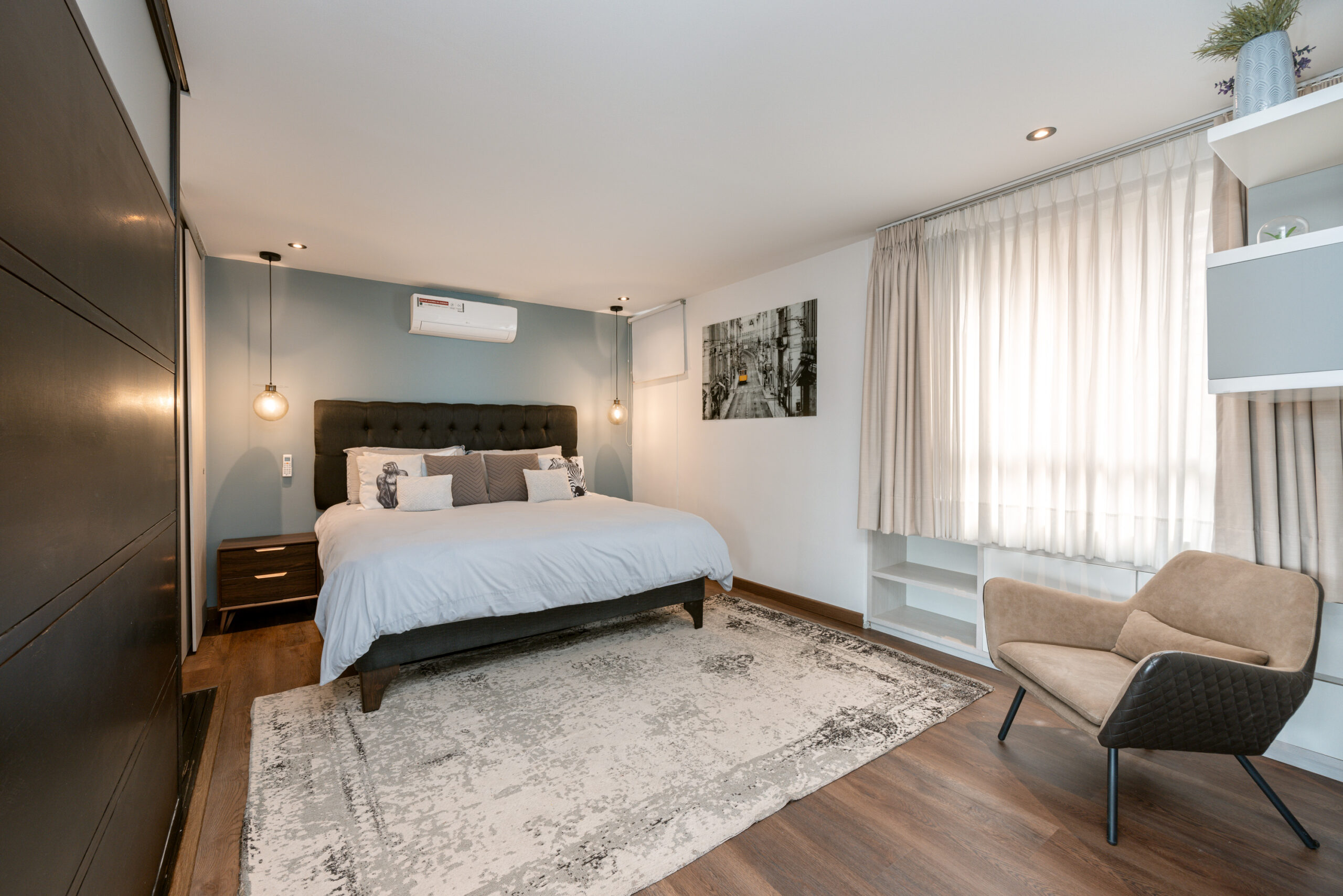 Open and luminous apartment located in one of the most exclusive residential areas of the city. The apartment features a wonderful open area that integrates all the spaces, making the apartment a whole complex of design. The balcony and the full-body windows allow you to have a wonderful panoramic view of the city while you are working or dining with some friends. The fully equipped open kitchen integrates with the house but isolates the well-equipped laundry area.