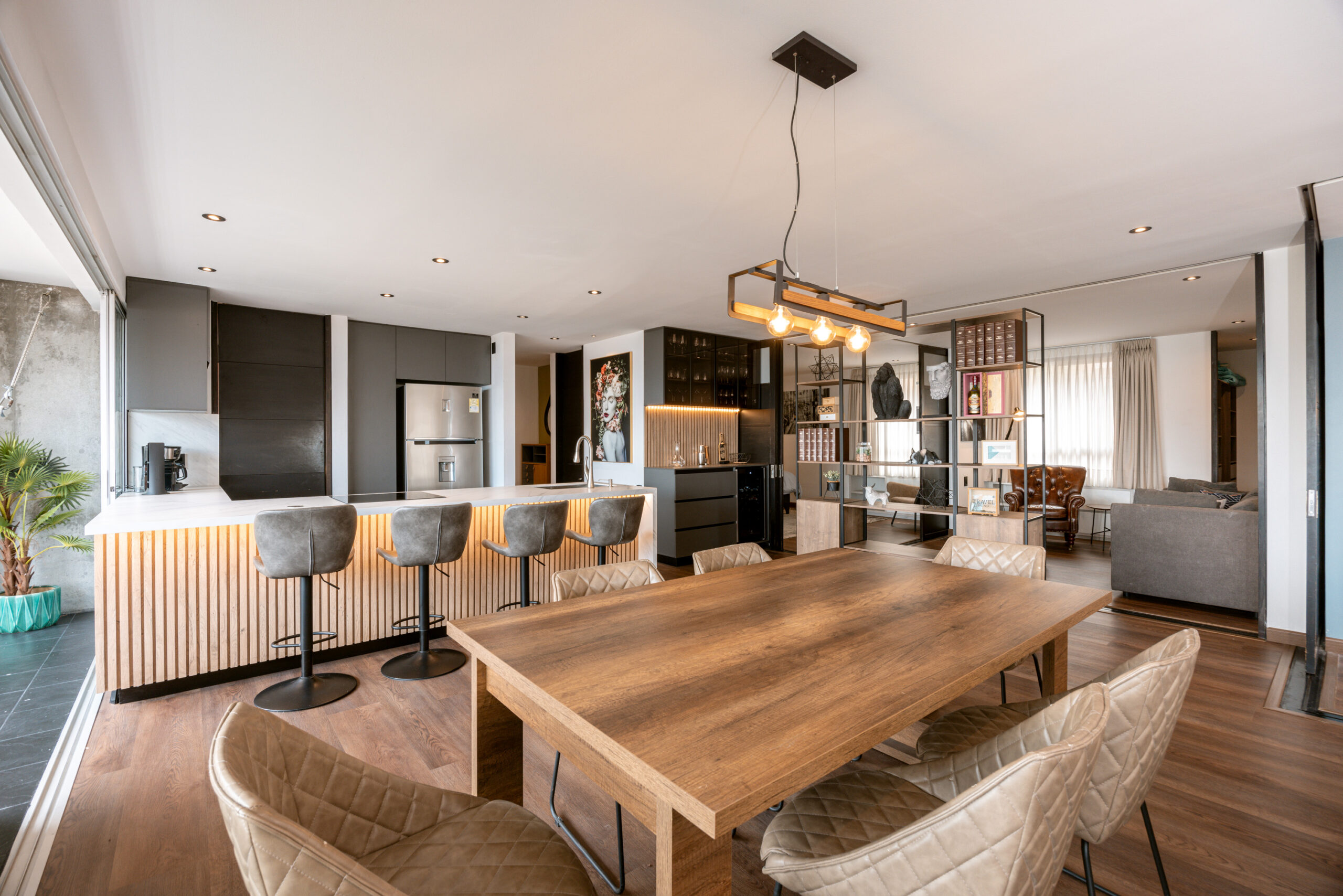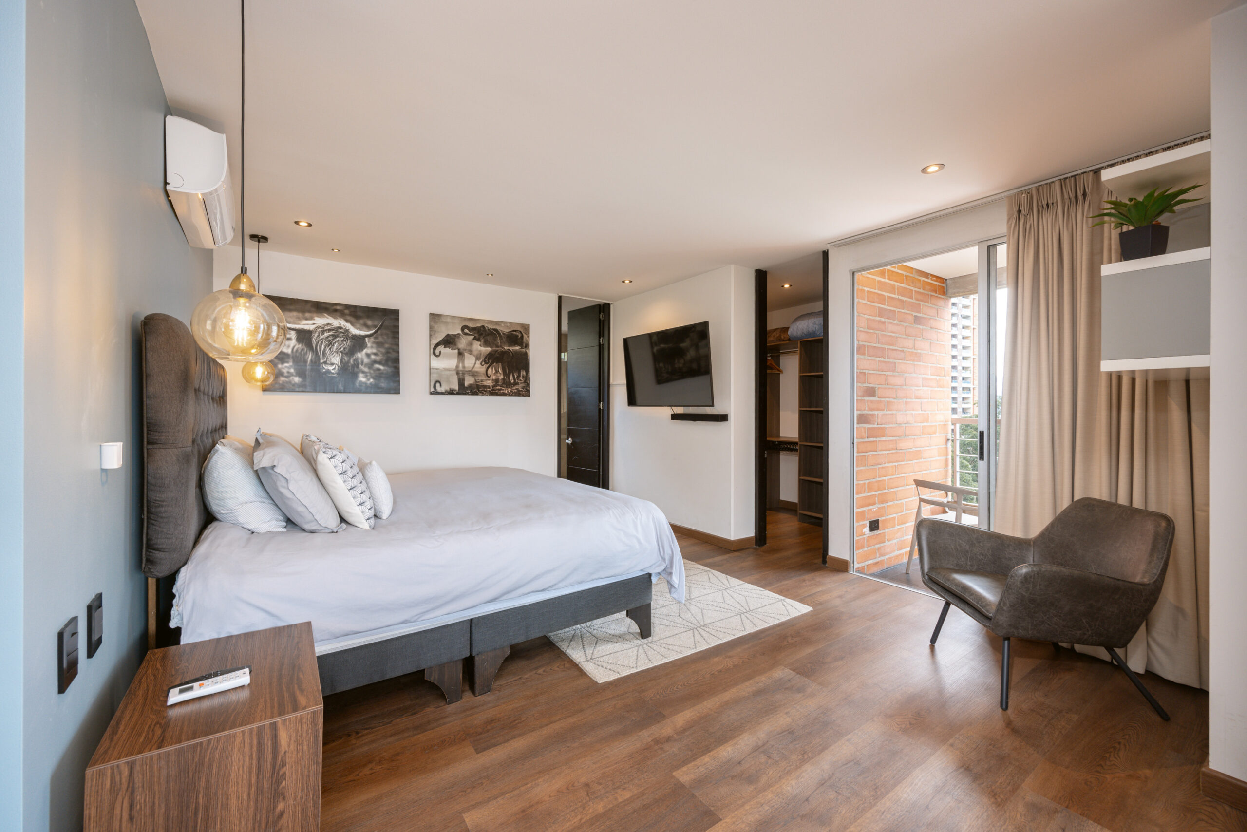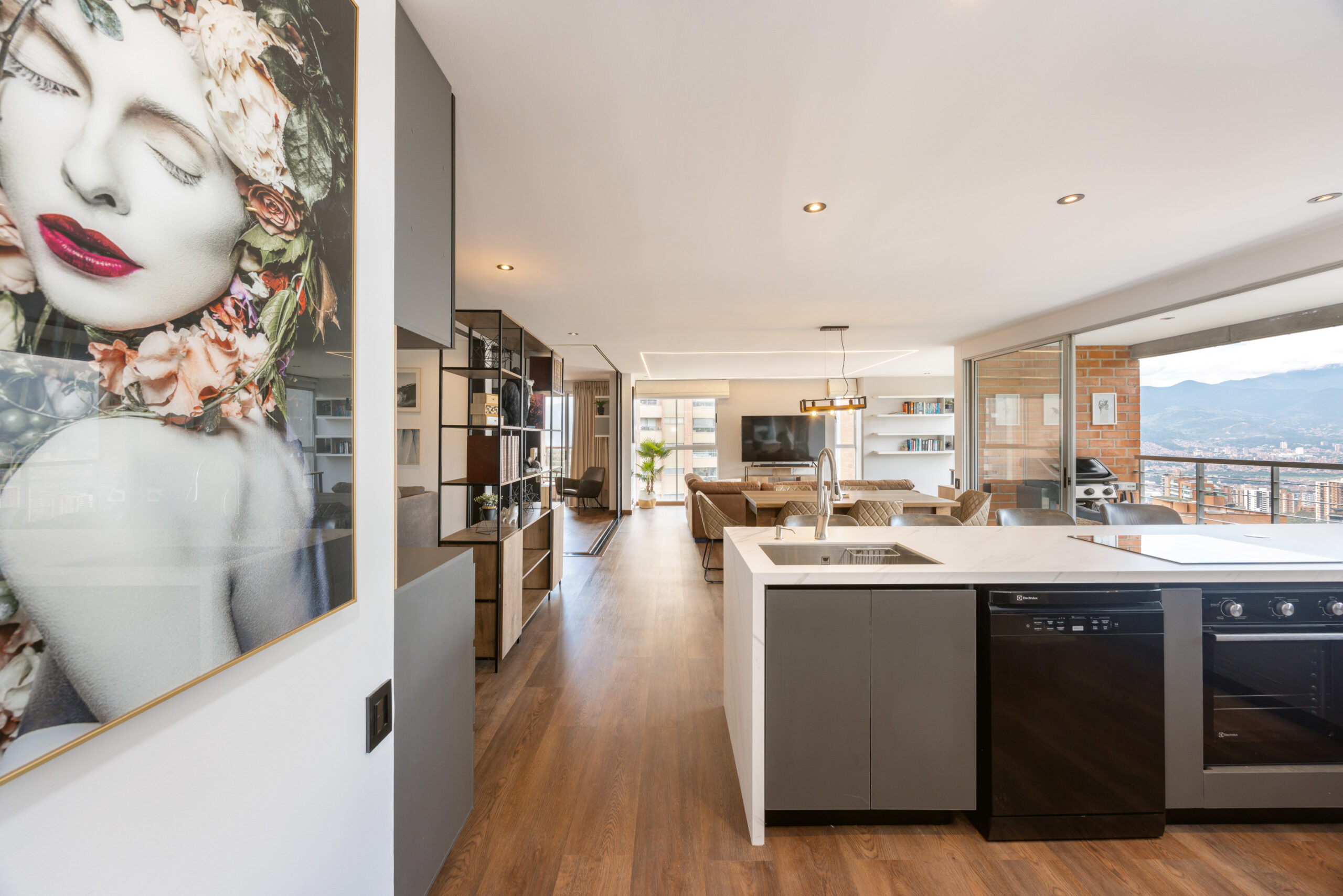 Open and luminous apartment located in one of the most exclusive residential areas of the city. The apartment features a wonderful open area that integrates all the spaces, making the apartment a whole complex of design. The balcony and the full-body windows allow you to have a wonderful panoramic view of the city while you are working or dining with some friends. The fully equipped open kitchen integrates with the house but isolates the well-equipped laundry area.