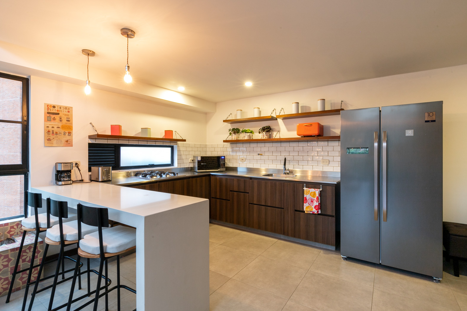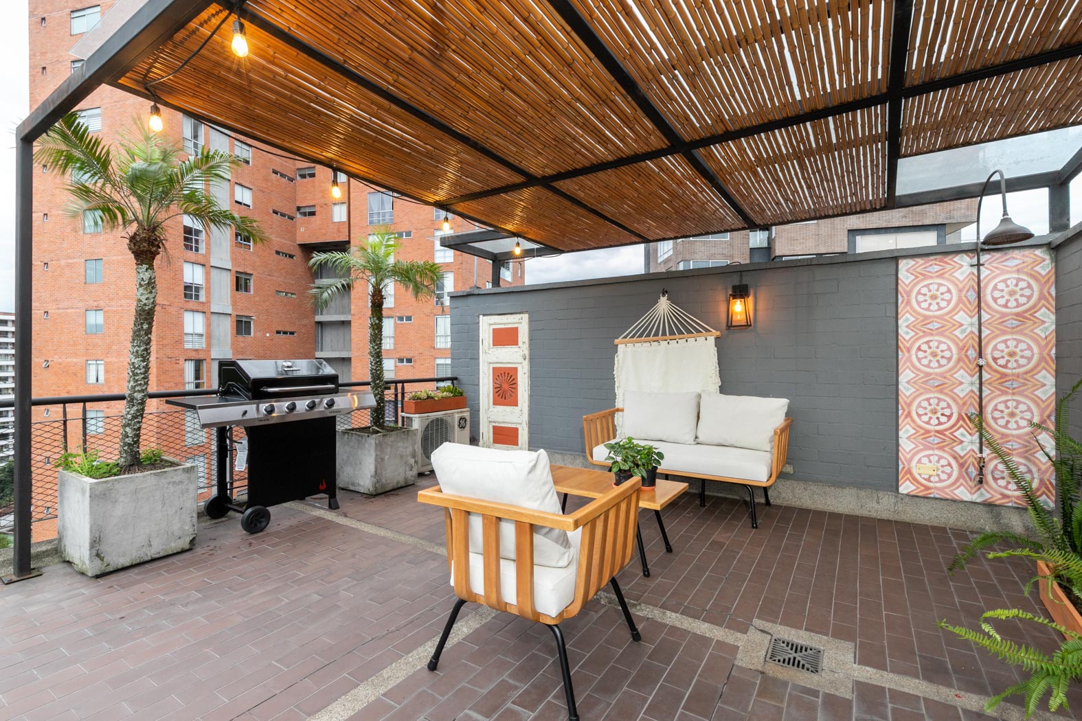 This beautiful triplex located near Mall la Frontera, in a residential neighborhood, has 2 bedrooms and 2 bathrooms. Master bedroom has A/C, also walking closet and bathroom with natural light. On the first floor you have the laundry area, open kitchen so you can cook integrated with friends and family, dinning table and a living room with a Colombian decorative items. On this floor there is a secondary bedroom with a complete bathroom, which is also the social one. Next floor you have a illuminated working area, with a desk and a sofa. On this same floor is the master bedroom with it’s own bathroom and walking closet. On the last floor is the terrance with a BBQ and a great view, you can relax and enjoy the sunsets here.