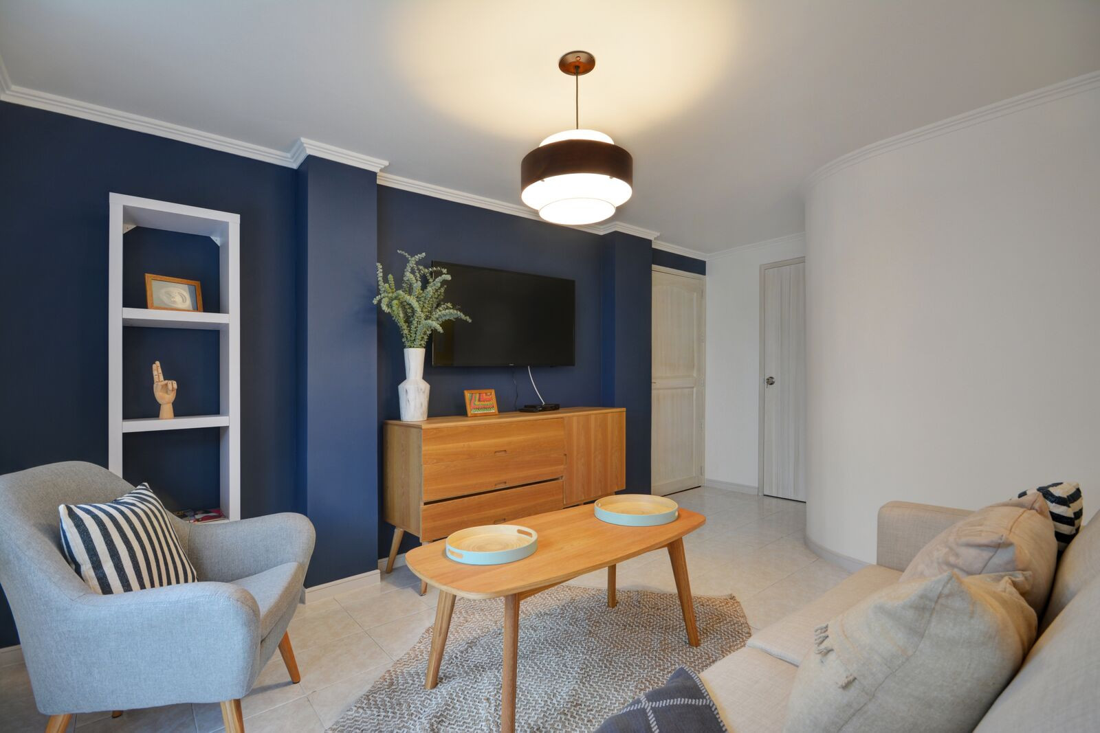 It is very well located near the El Tesoro Shopping Center, the apartment is on a 4th floor and does not have an elevator. It is not on a main avenue, so is more quiet than other apartments in El Poblado.