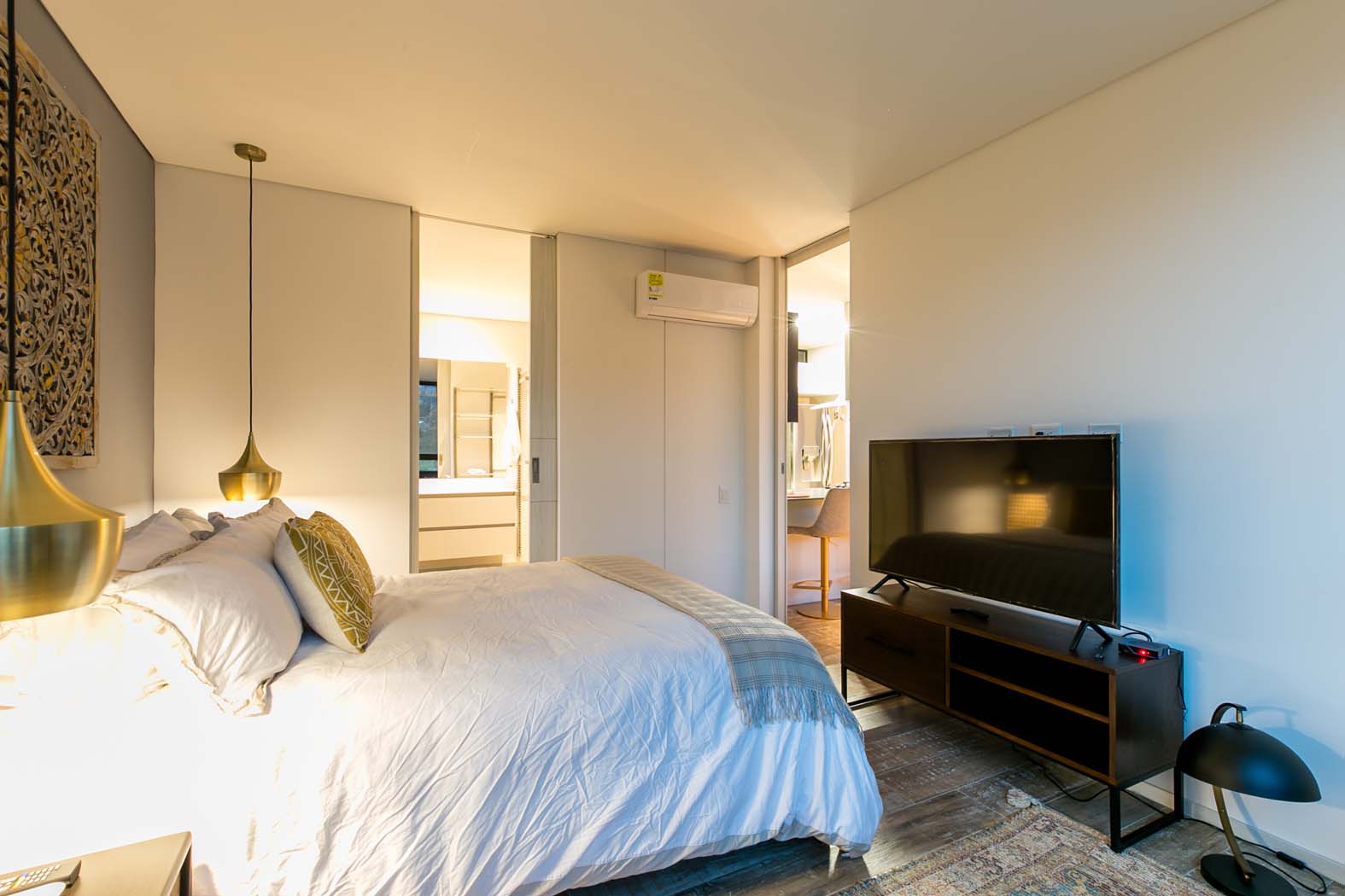 With a beautiful open plan kitchen and lounge which leads onto a stunning balcony. The kitchen is completely furnished with everything that you might need, as well as a separate utility room that features a washer and dryer. Both bedrooms and lounge and have floor-to-ceiling windows/balcony doors with a perfect view of the city. Each bedroom has A/C. The Master bedroom has a comfty couch, a large walk-in closet and a private ensuite bathroom.