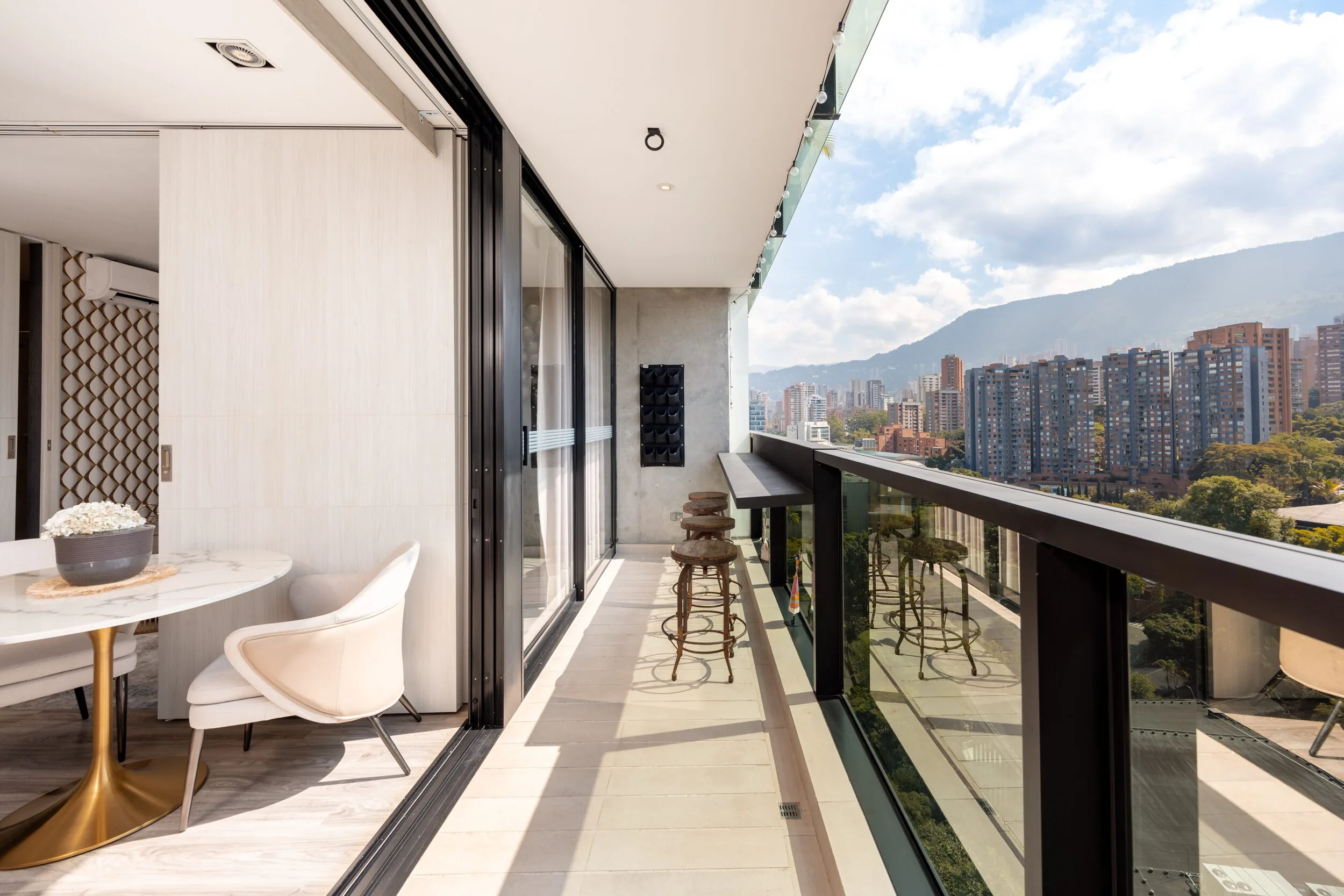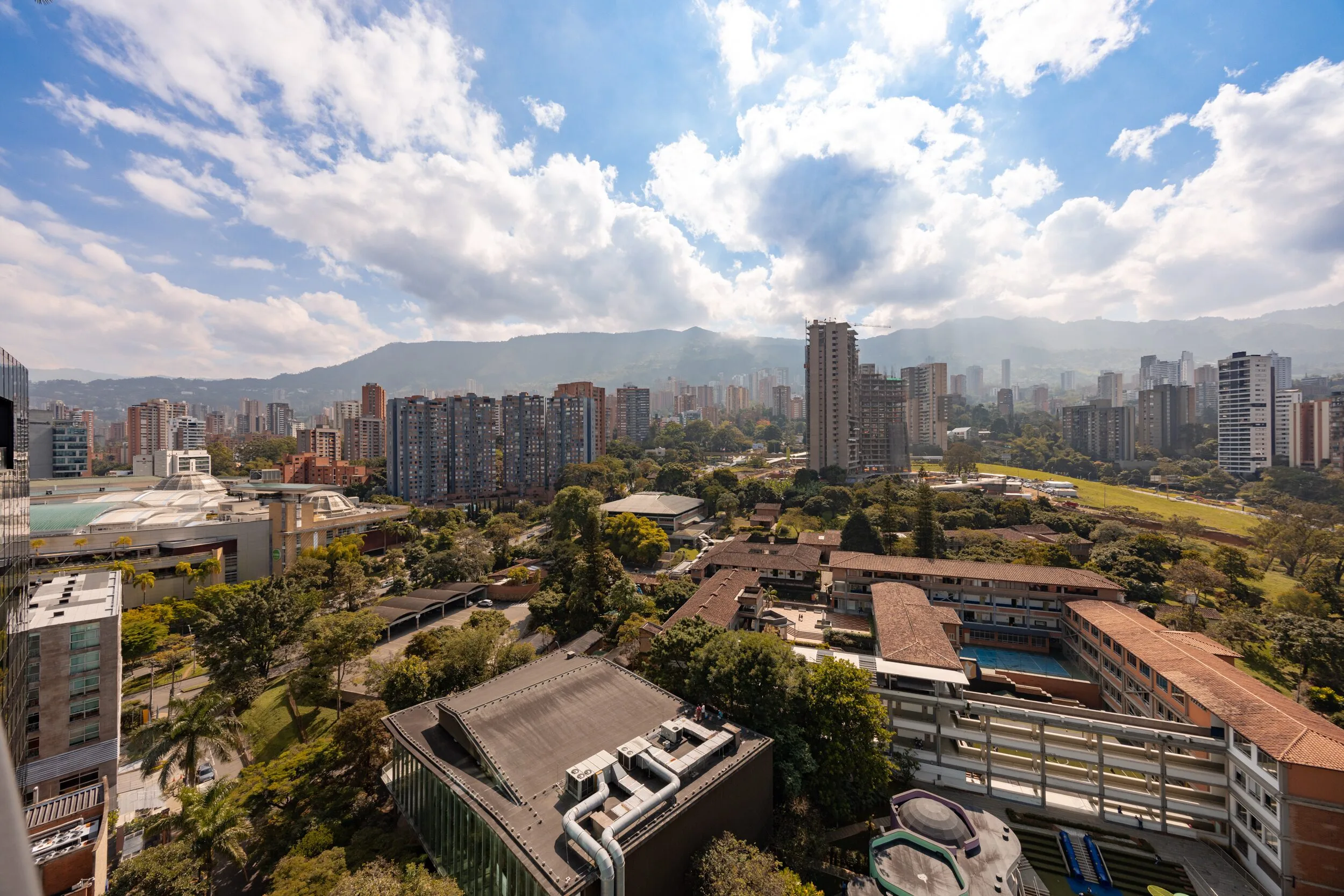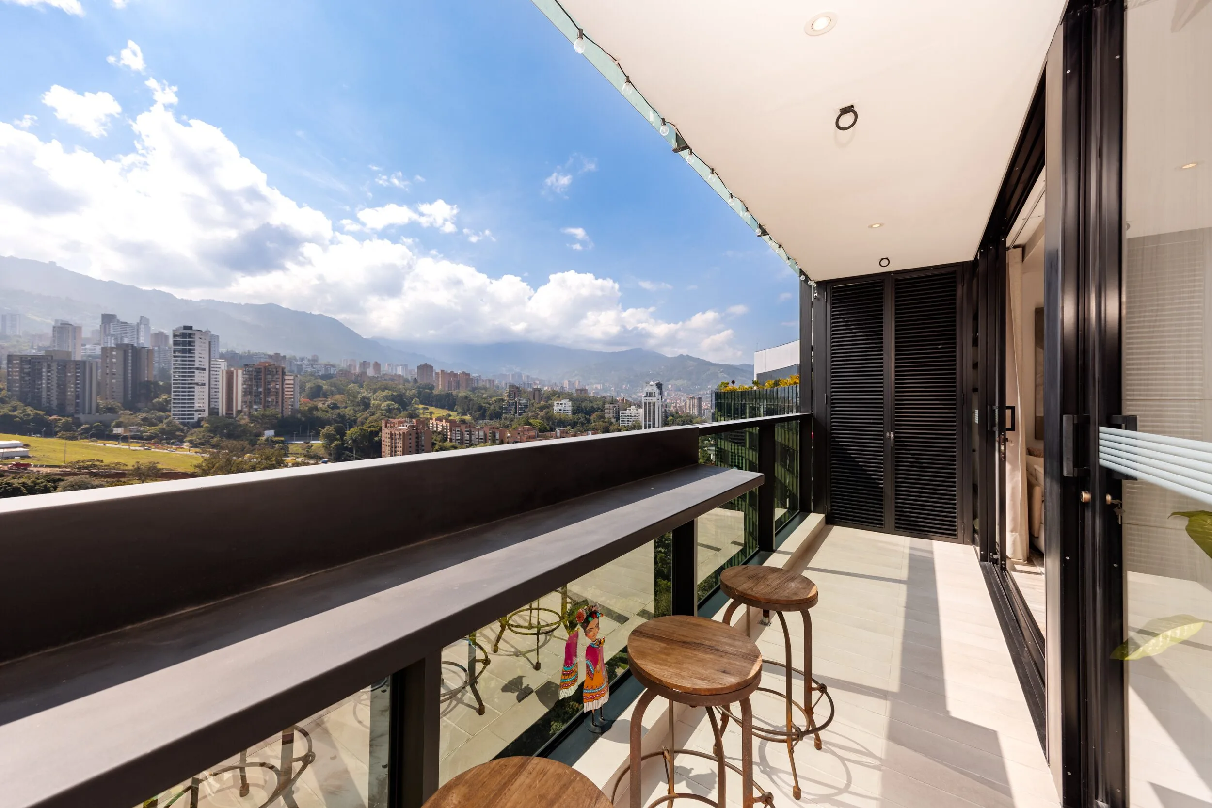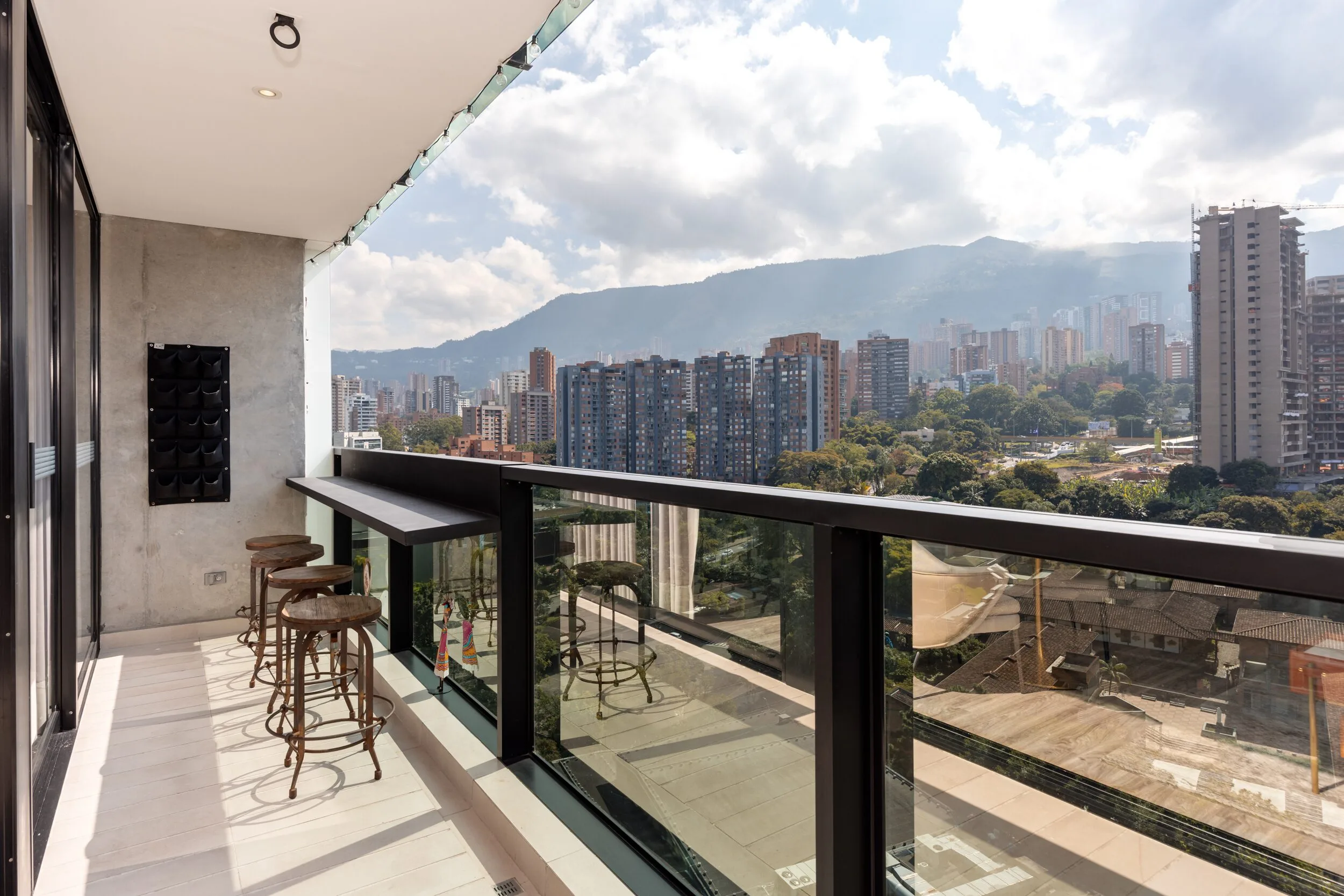 Square 1624 places you right in one of the most convenient corners of El Poblado. Located next to Santa Fe Mall, daily life becomes effortless with cafés, restaurants, shops and essentials just steps away. Inside the apartment, the design feels modern and practical, featuring air conditioning, a private balcony and a fully equipped space for long-term stays.