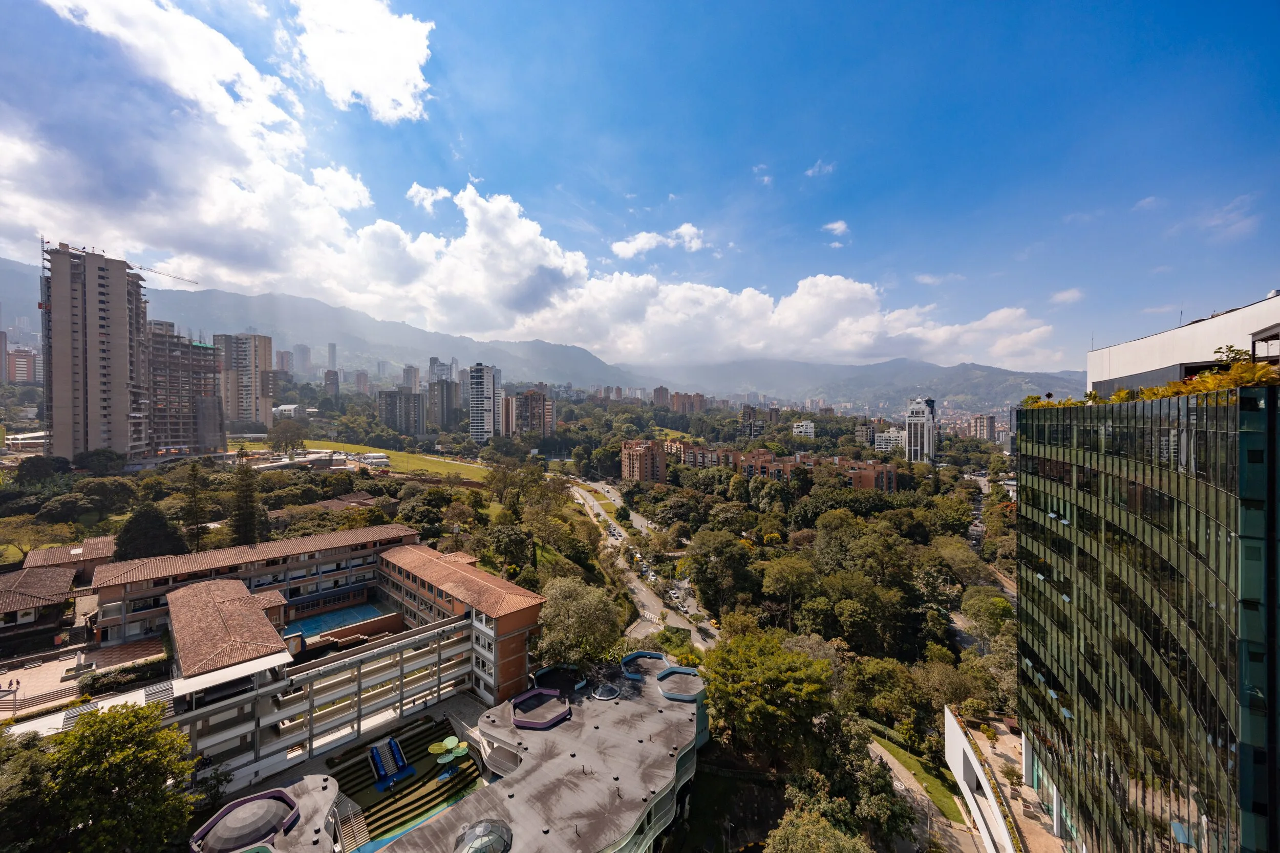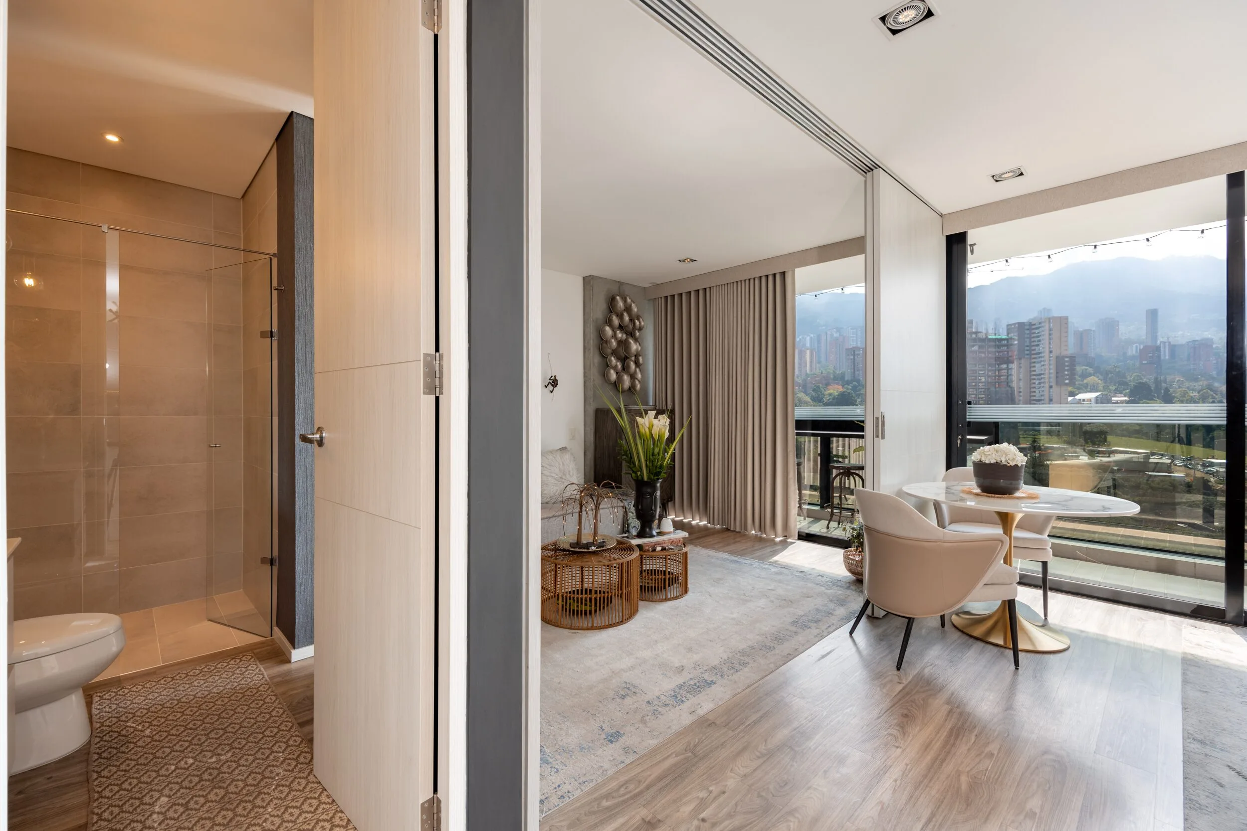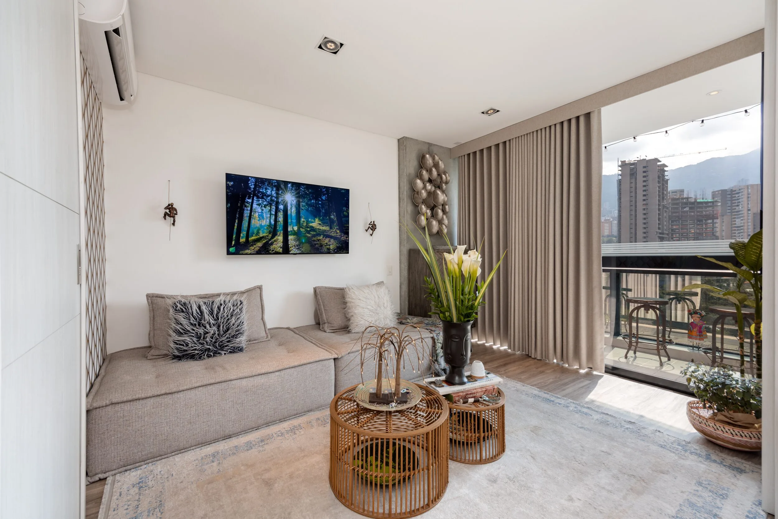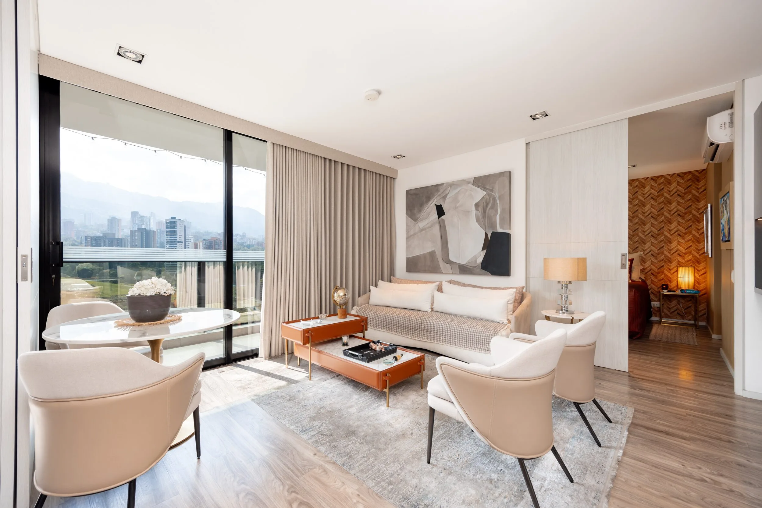 Square 1624 places you right in one of the most convenient corners of El Poblado. Located next to Santa Fe Mall, daily life becomes effortless with cafés, restaurants, shops and essentials just steps away. Inside the apartment, the design feels modern and practical, featuring air conditioning, a private balcony and a fully equipped space for long-term stays.