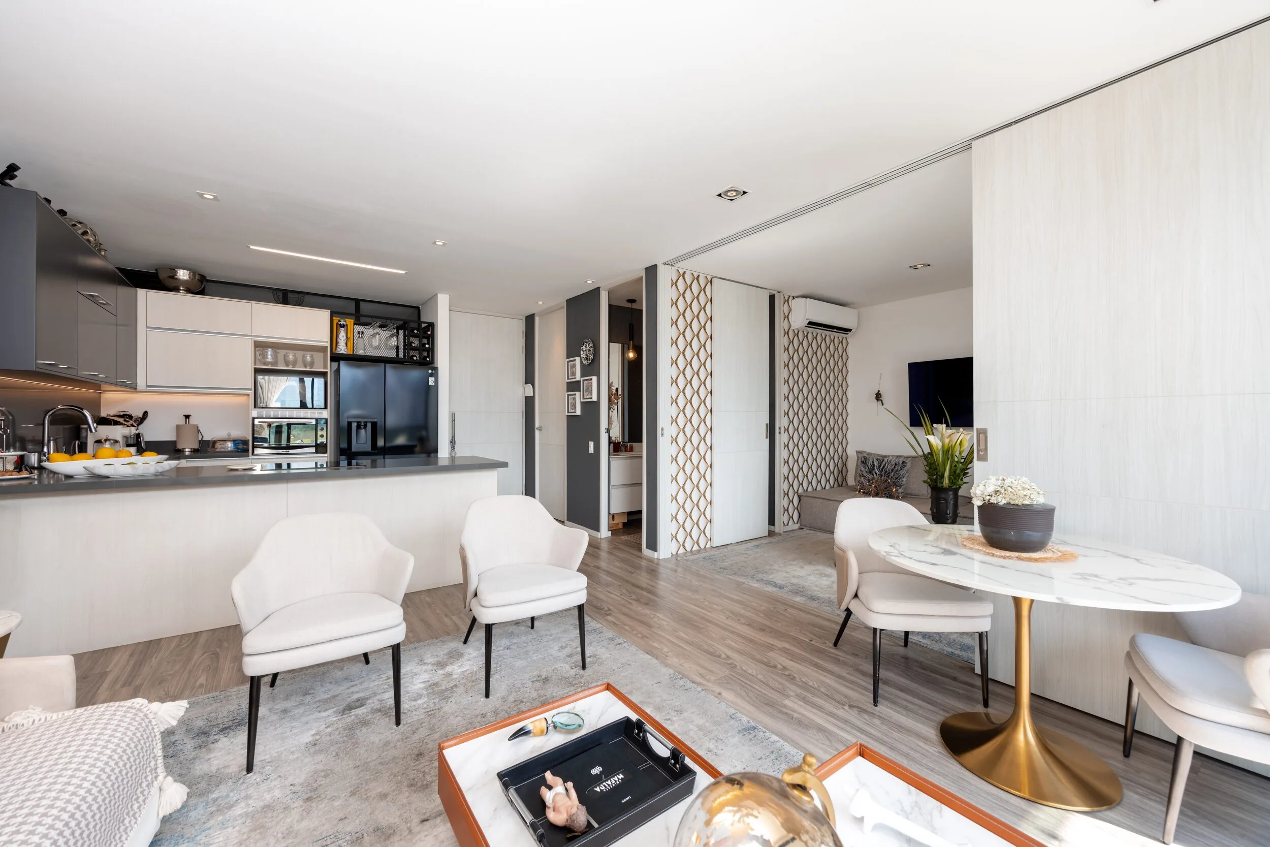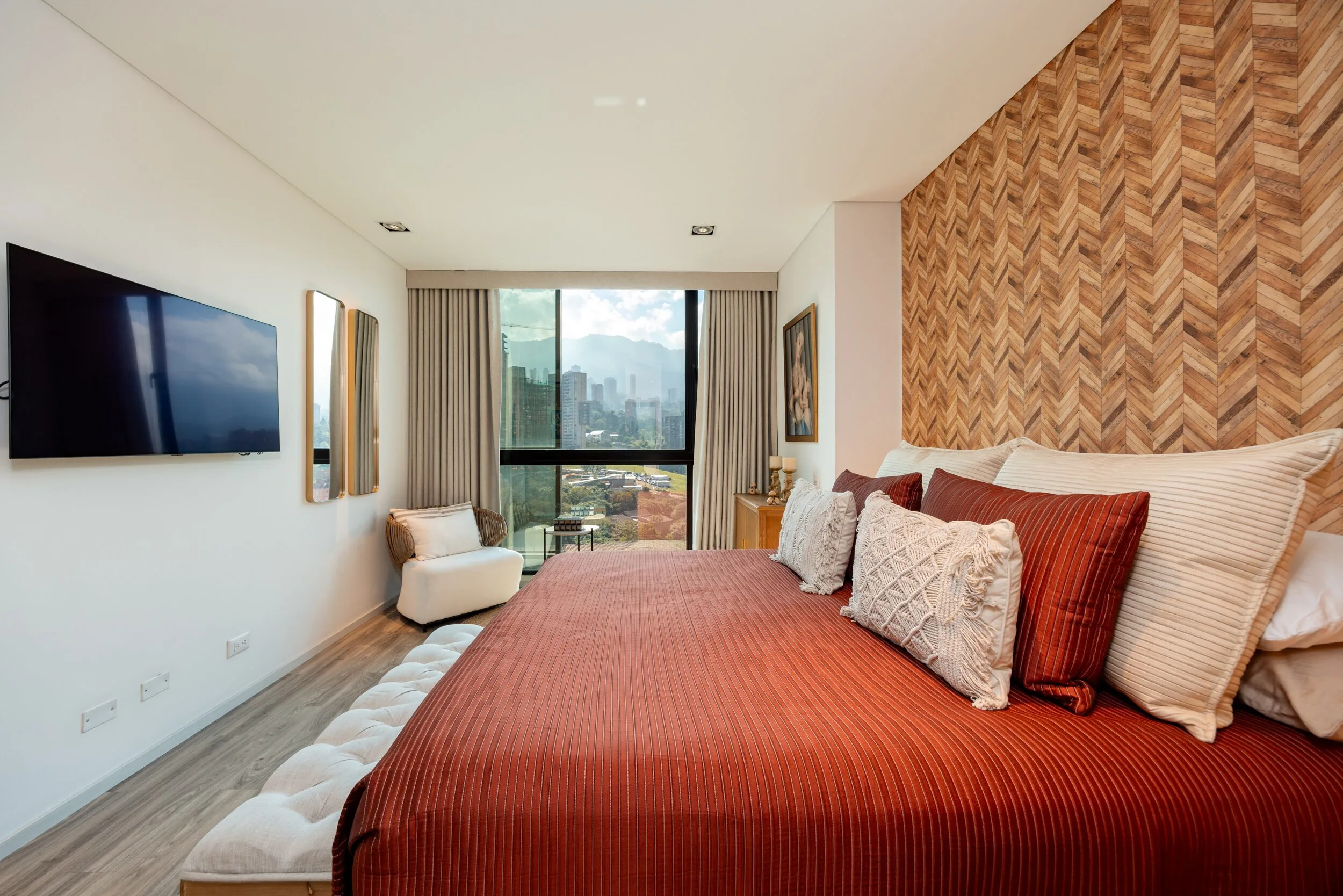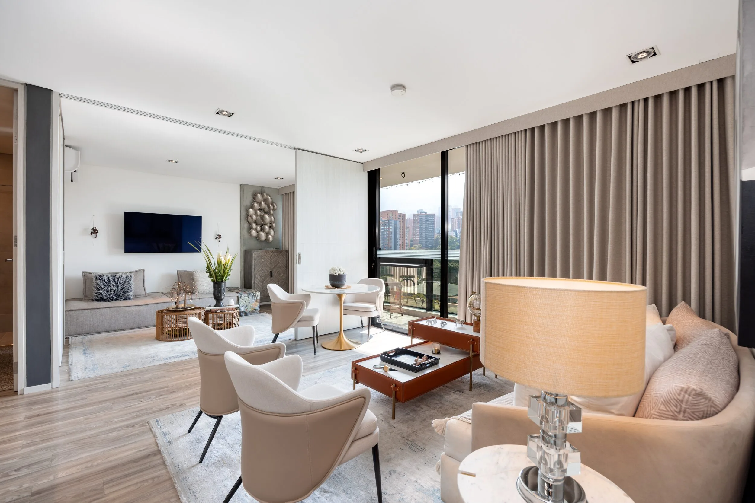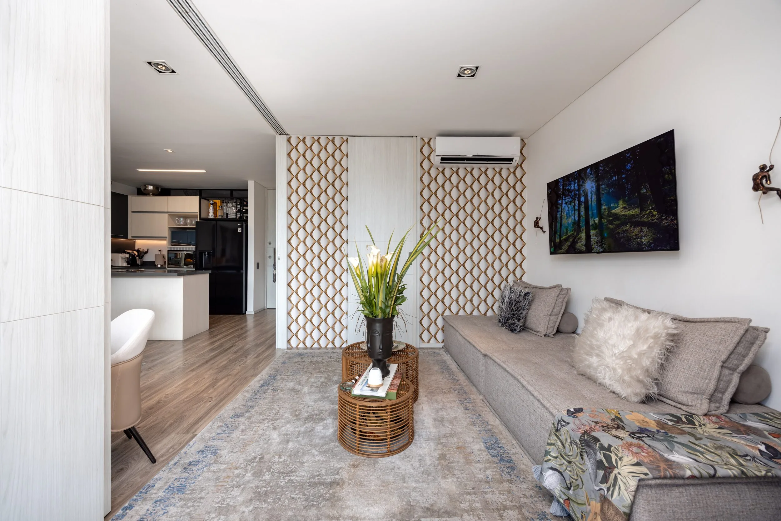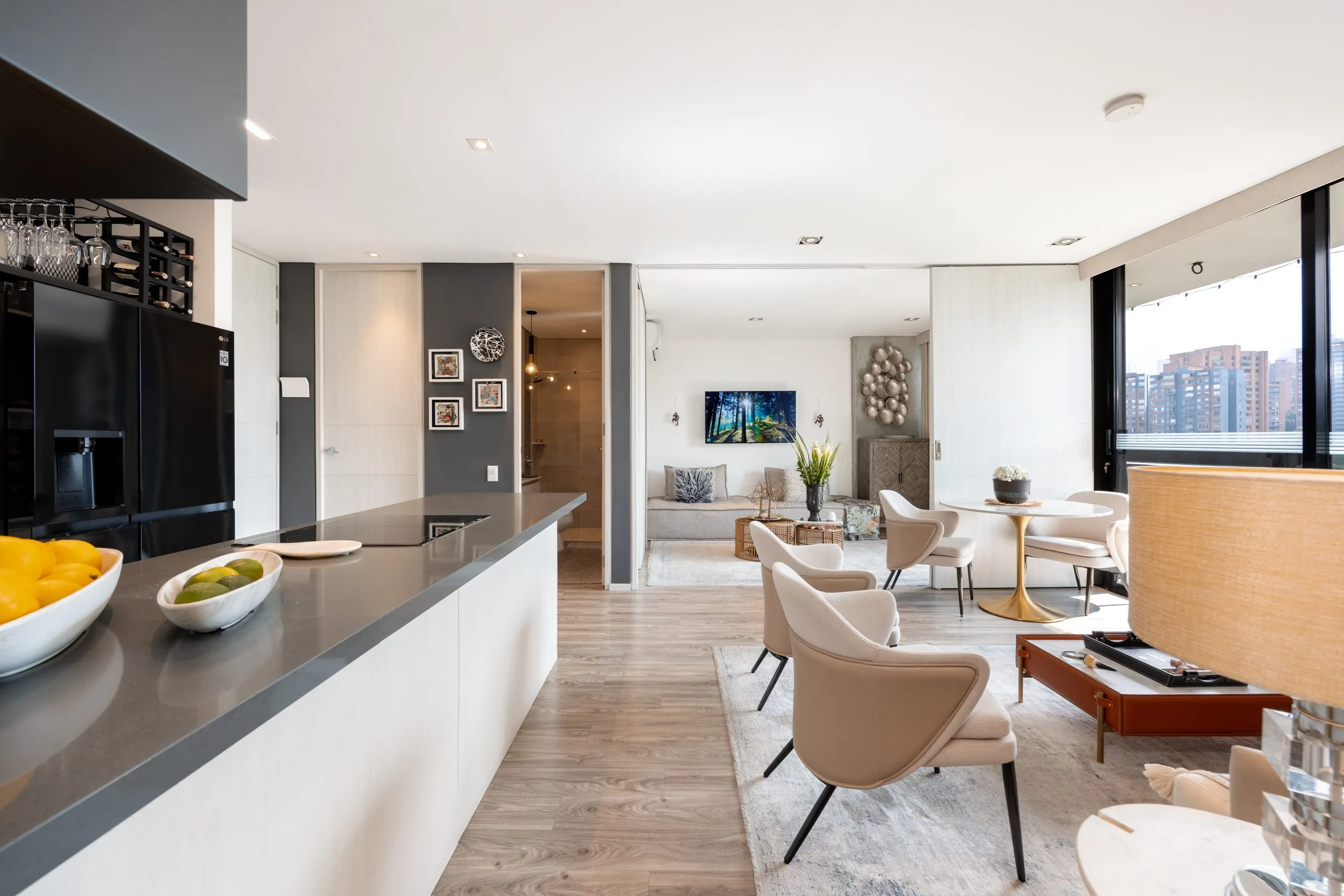 Square 1624 places you right in one of the most convenient corners of El Poblado. Located next to Santa Fe Mall, daily life becomes effortless with cafés, restaurants, shops and essentials just steps away. Inside the apartment, the design feels modern and practical, featuring air conditioning, a private balcony and a fully equipped space for long-term stays.