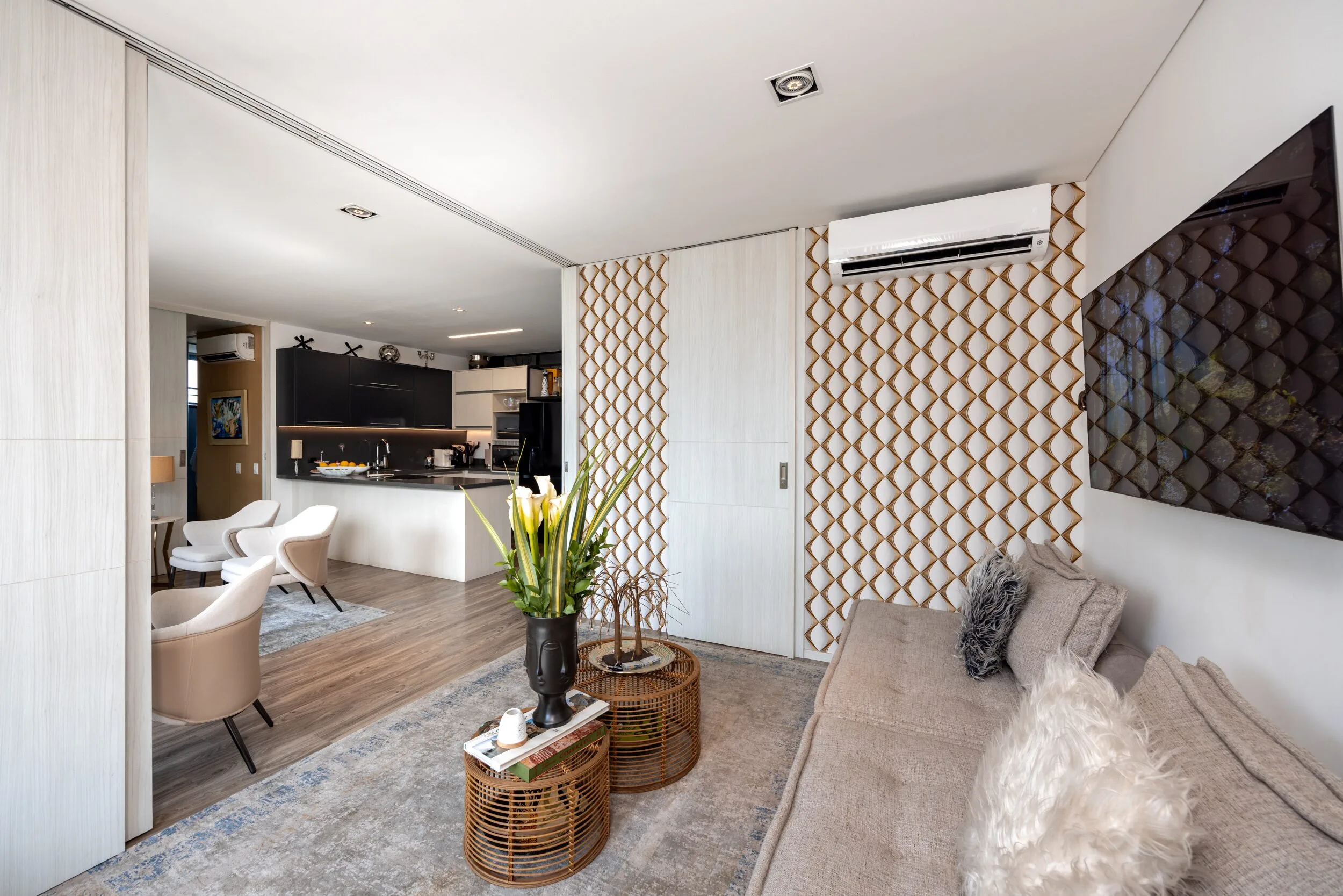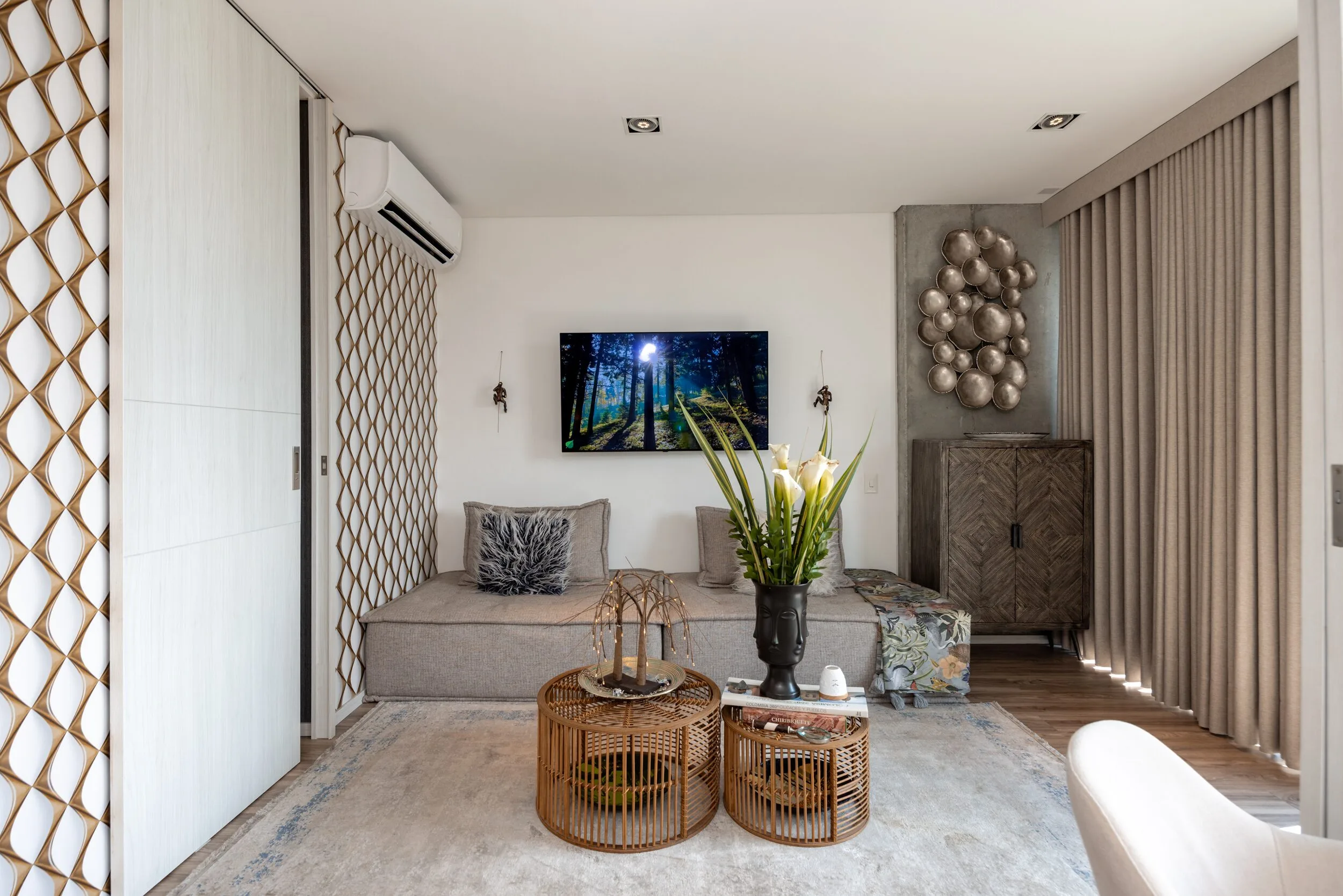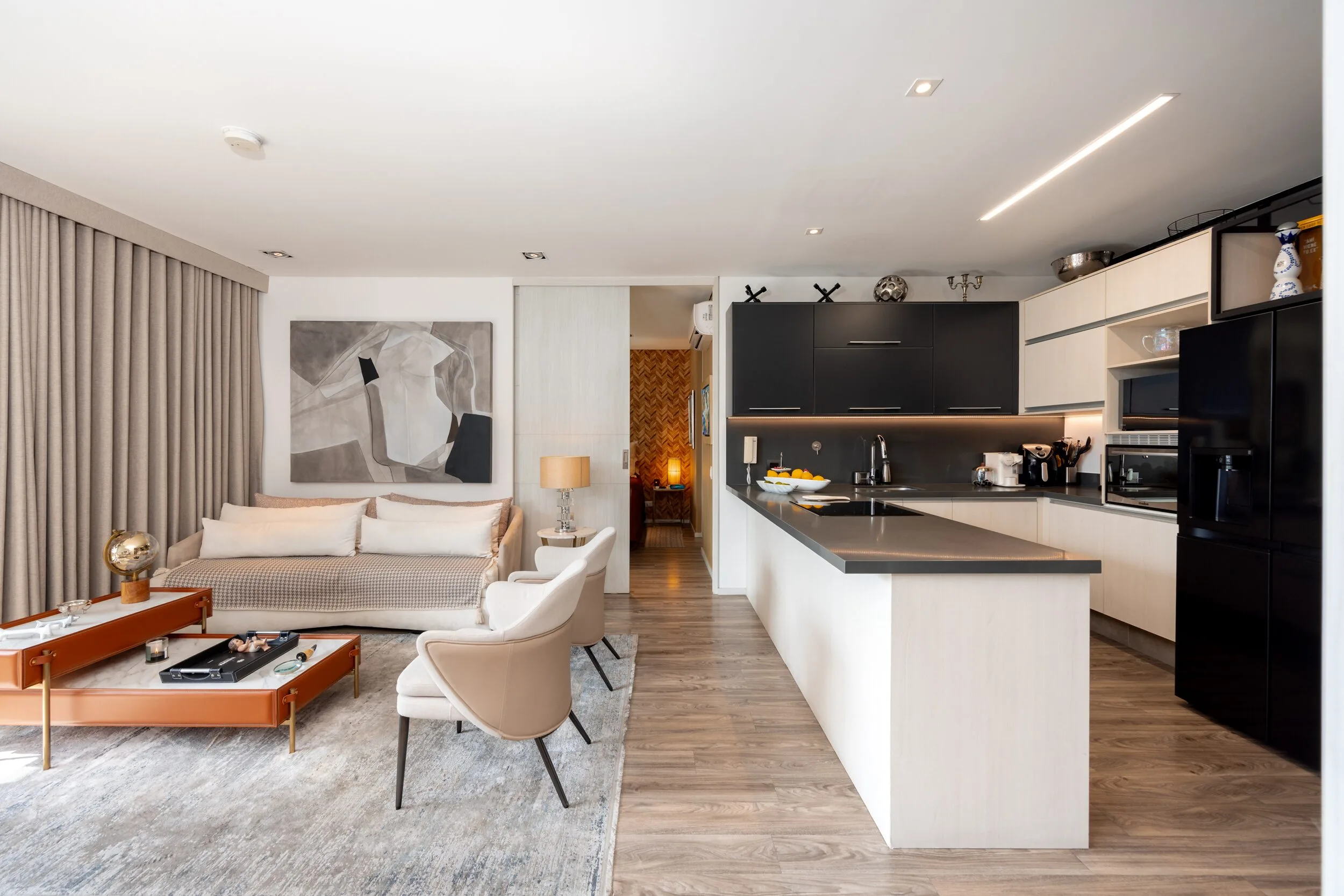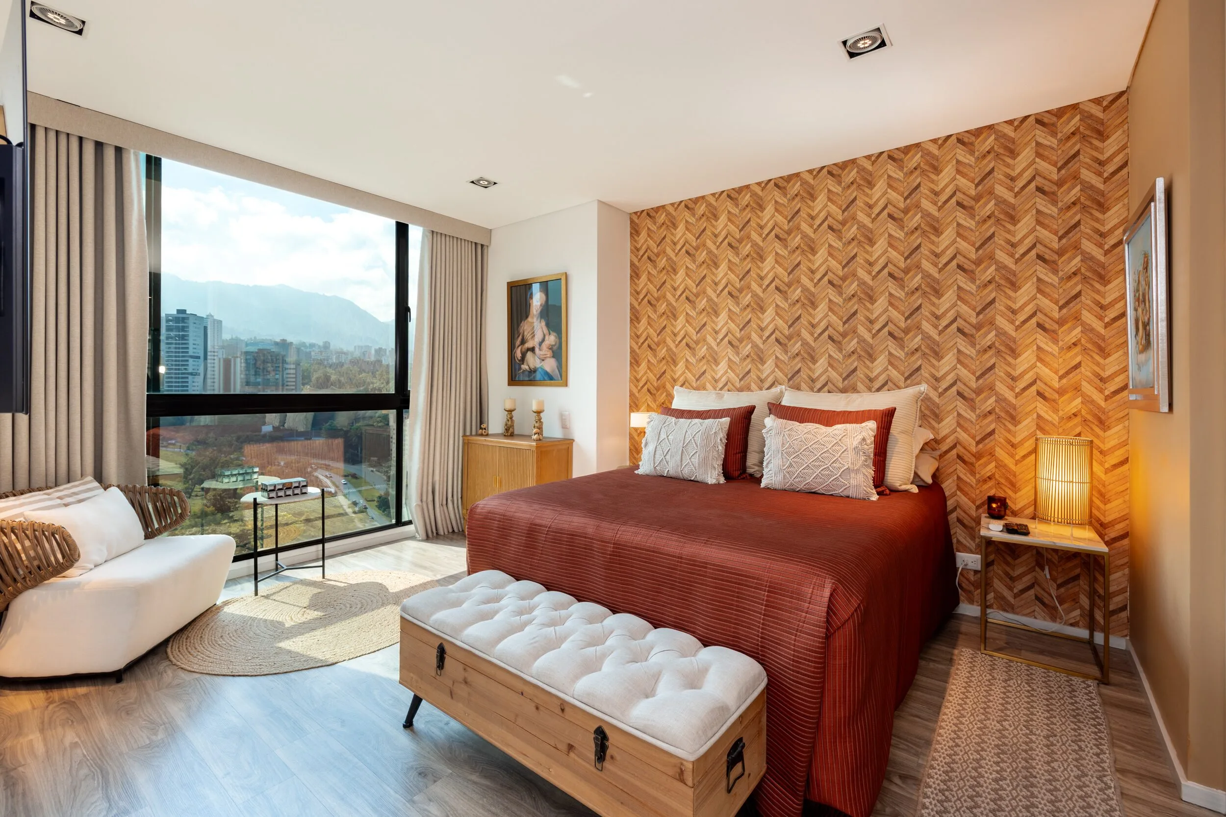 Square 1624 places you right in one of the most convenient corners of El Poblado. Located next to Santa Fe Mall, daily life becomes effortless with cafés, restaurants, shops and essentials just steps away. Inside the apartment, the design feels modern and practical, featuring air conditioning, a private balcony and a fully equipped space for long-term stays.