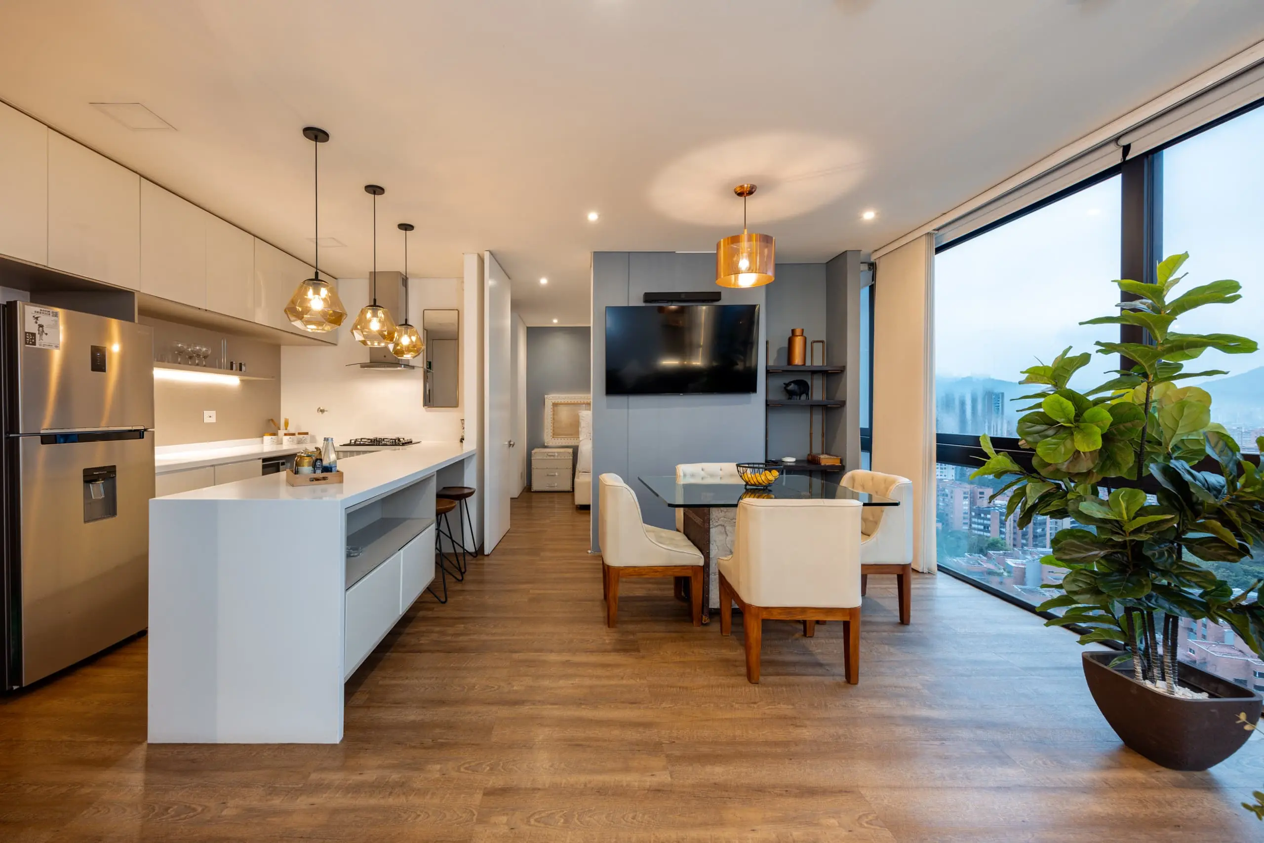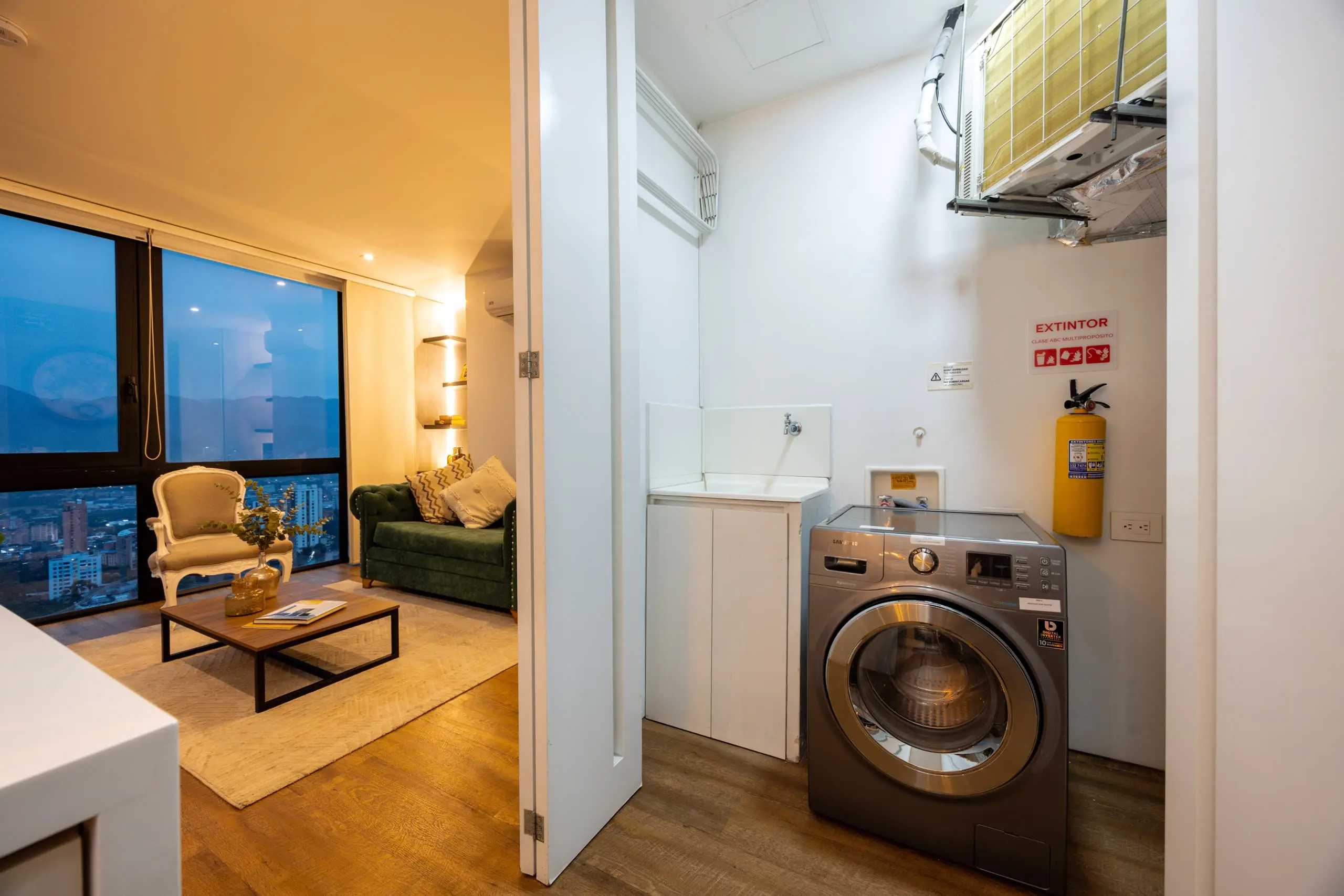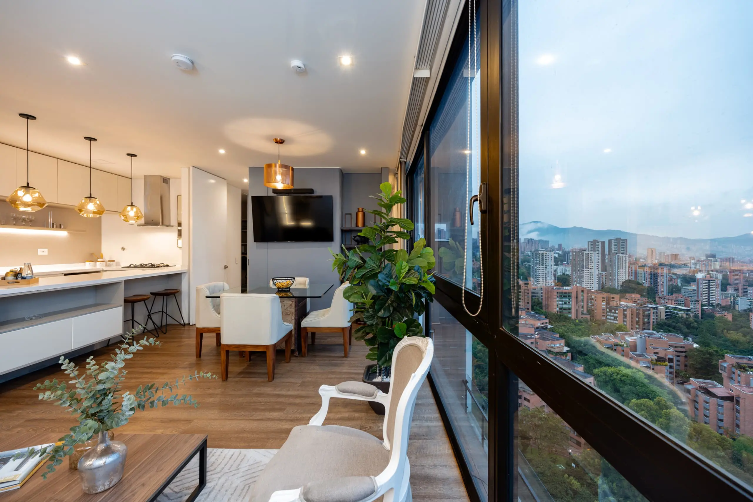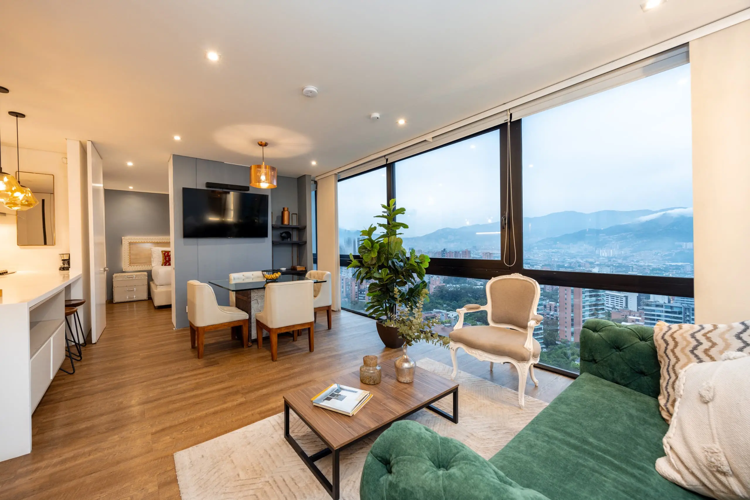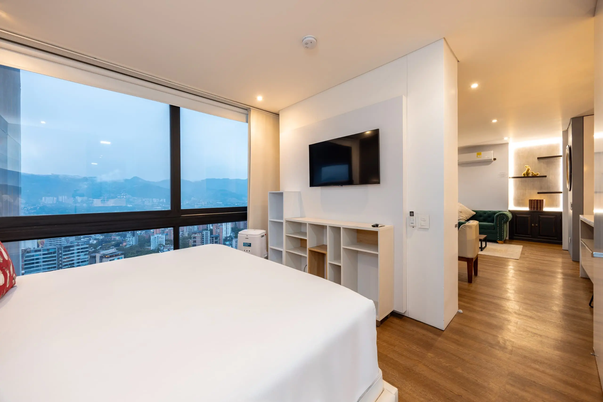 Enjoy this 1-bedroom apartment on the 19th floor, offering amazing views without a balcony. The space features air conditioning in the living room for your comfort, along with modern and stylish décor. Nestled in the prestigious Energy Living building, enjoy top-tier amenities: a breathtaking infinity rooftop pool on the 22nd floor, a fully equipped gym, a relaxing steam bath, and the all-day Alquimista restaurant onsite. Just a short walk to Carulla supermarket and a vibrant mall brimming with delightful dining options!