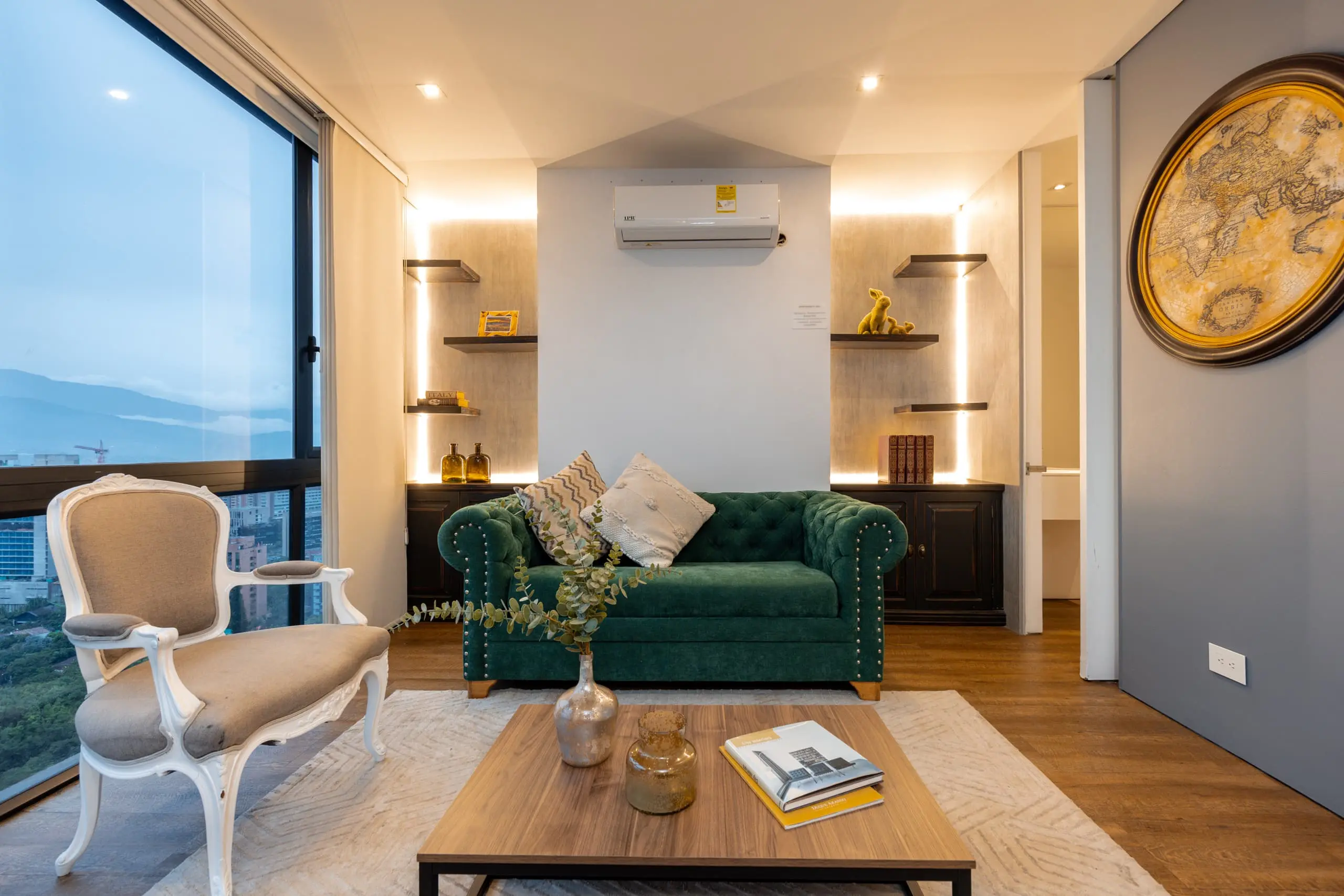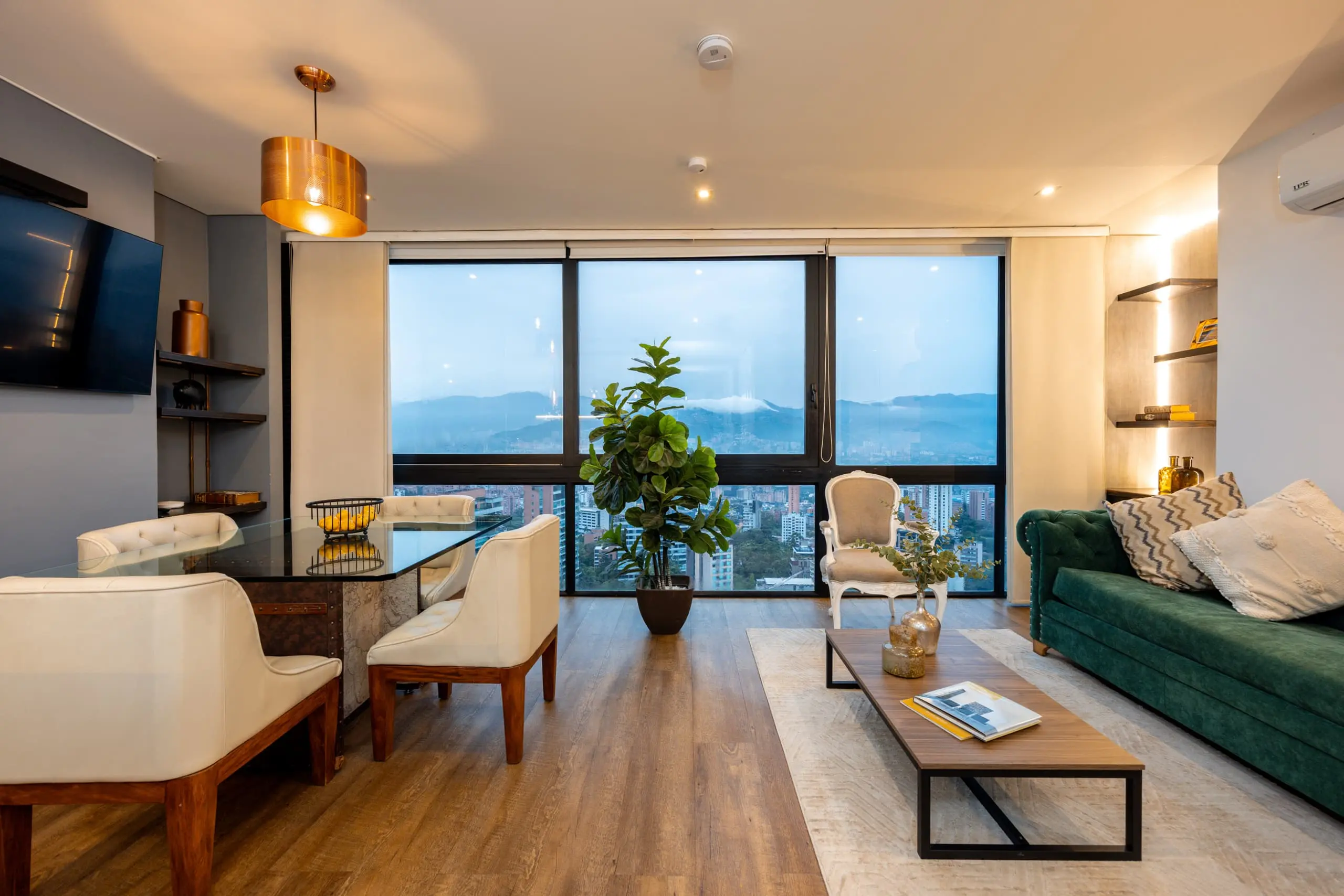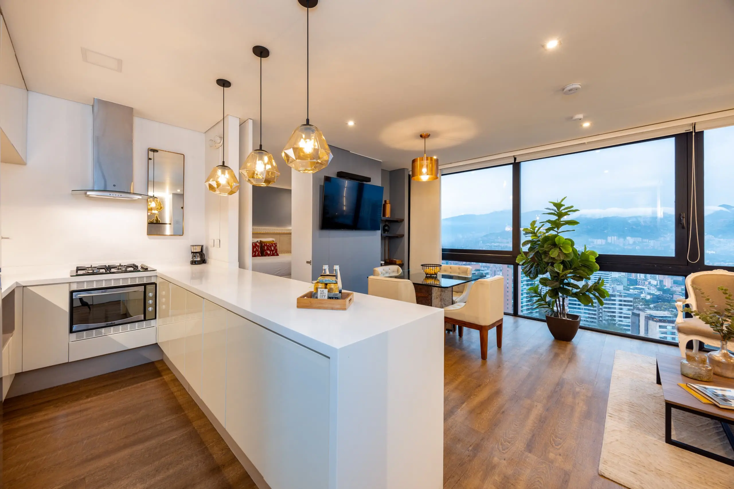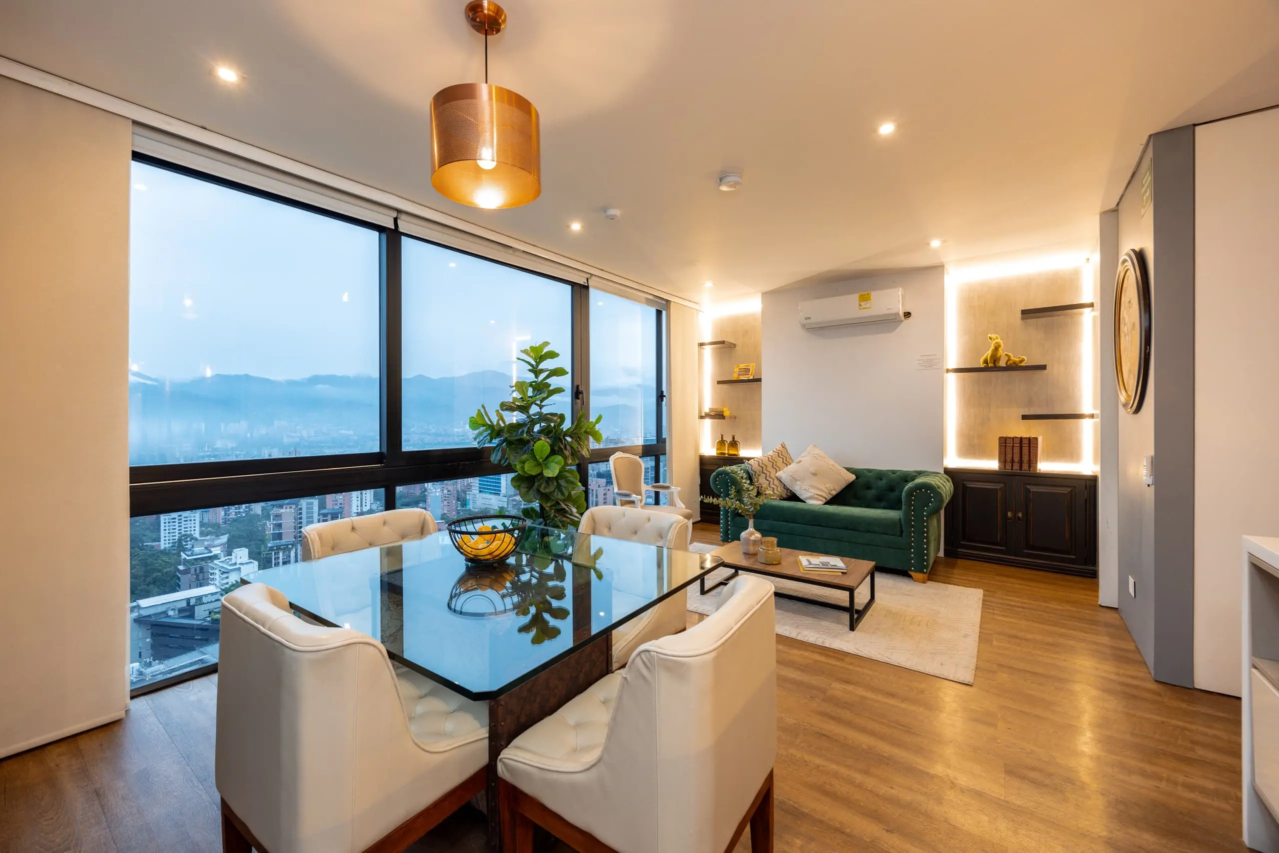 Enjoy this 1-bedroom apartment on the 19th floor, offering amazing views without a balcony. The space features air conditioning in the living room for your comfort, along with modern and stylish décor. Nestled in the prestigious Energy Living building, enjoy top-tier amenities: a breathtaking infinity rooftop pool on the 22nd floor, a fully equipped gym, a relaxing steam bath, and the all-day Alquimista restaurant onsite. Just a short walk to Carulla supermarket and a vibrant mall brimming with delightful dining options!