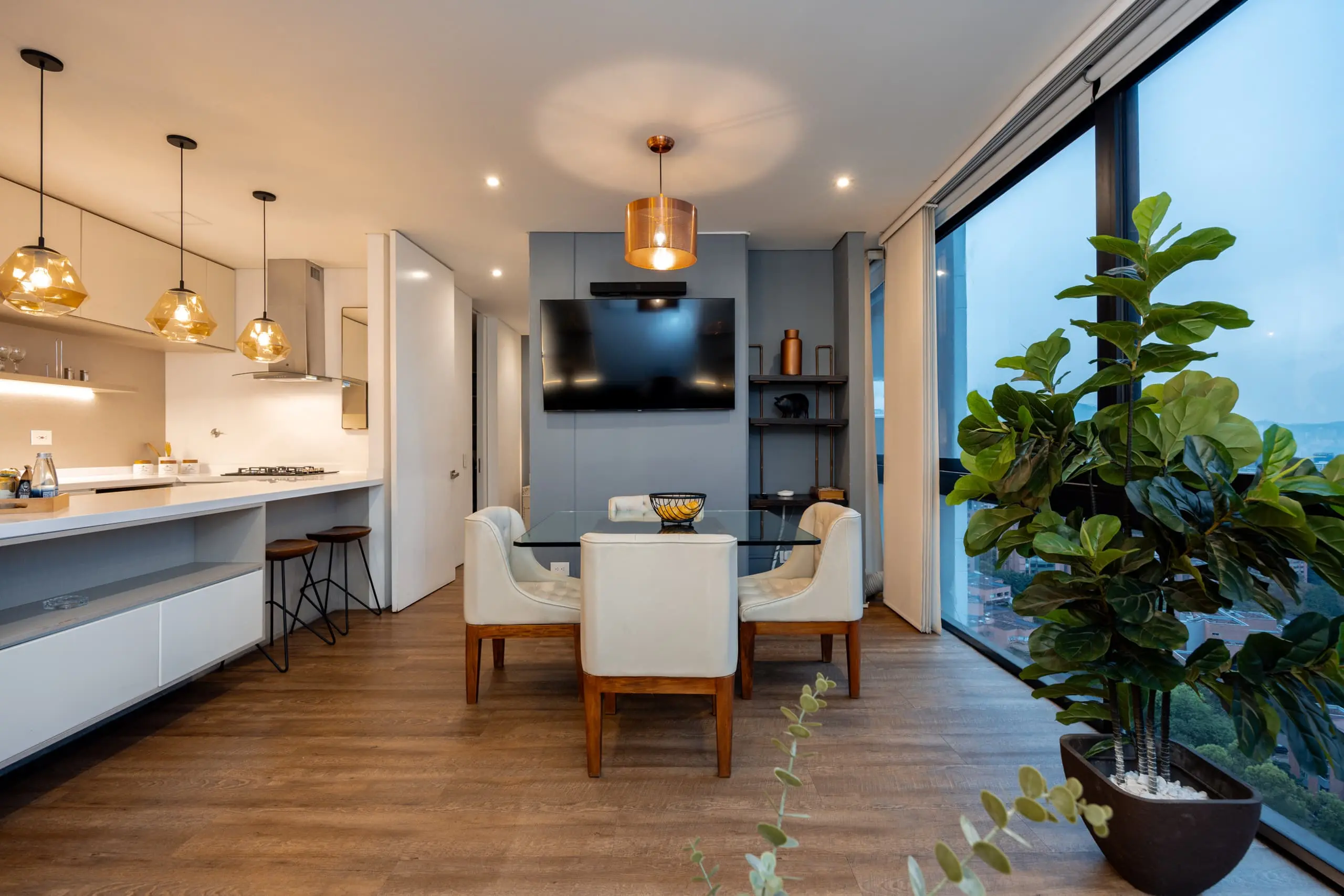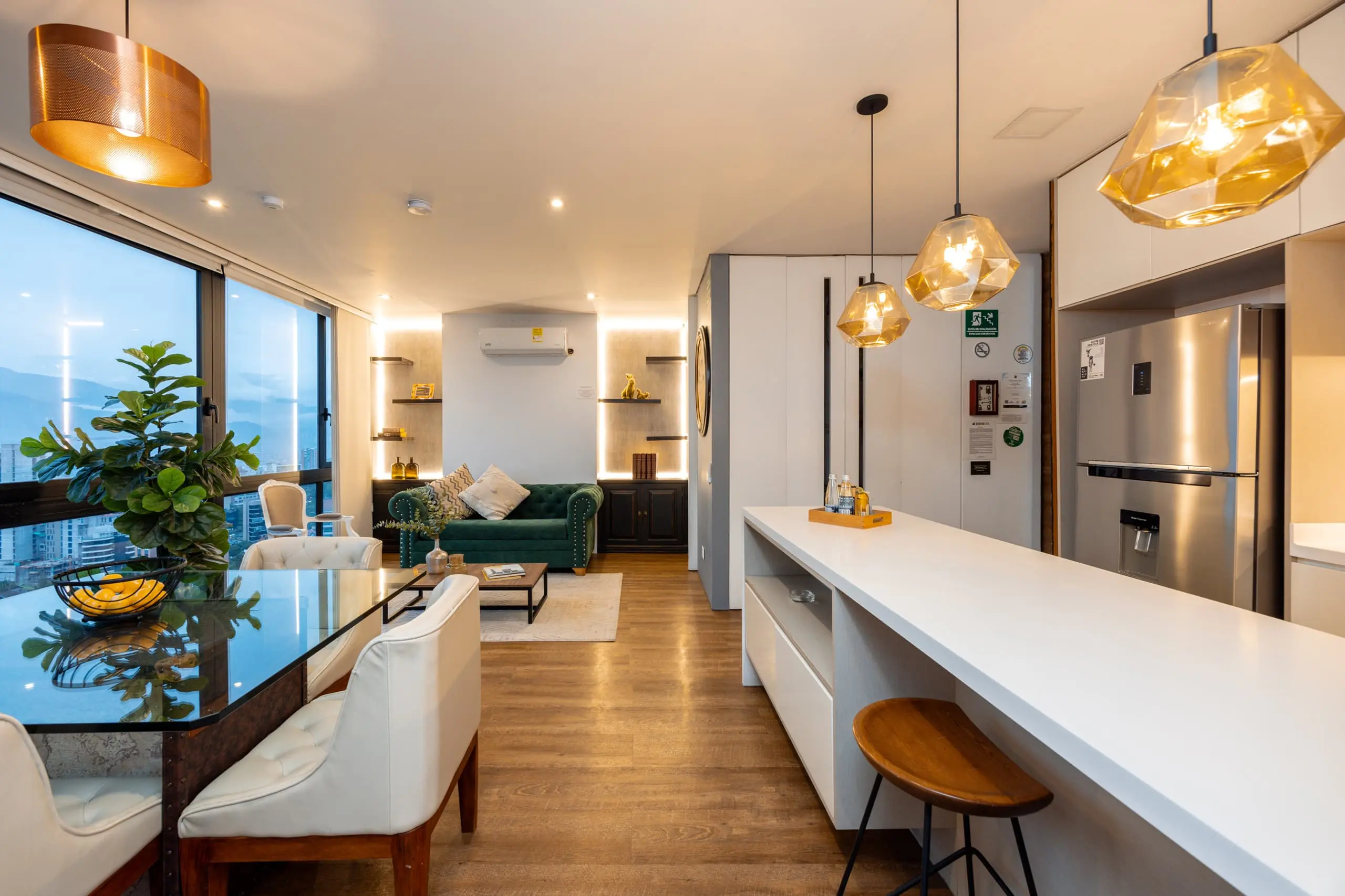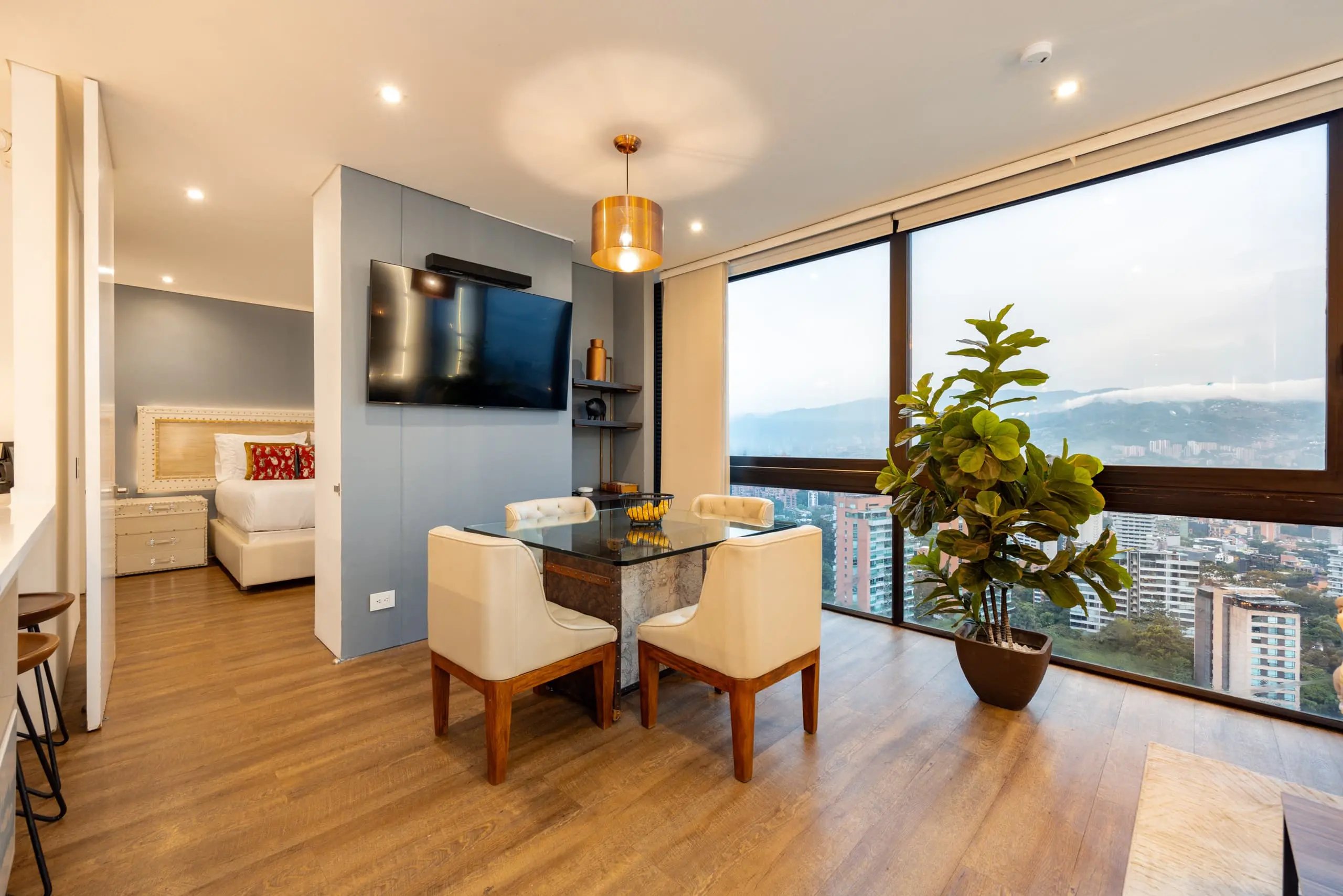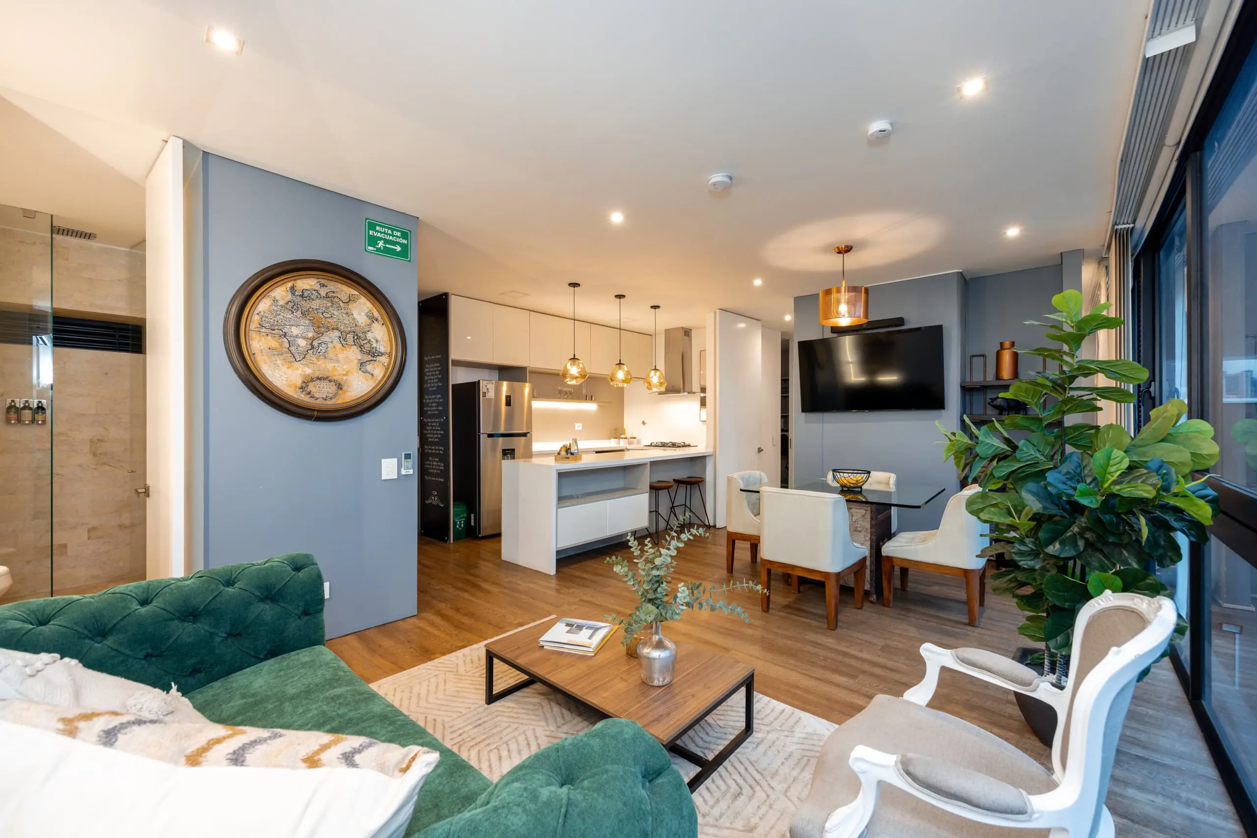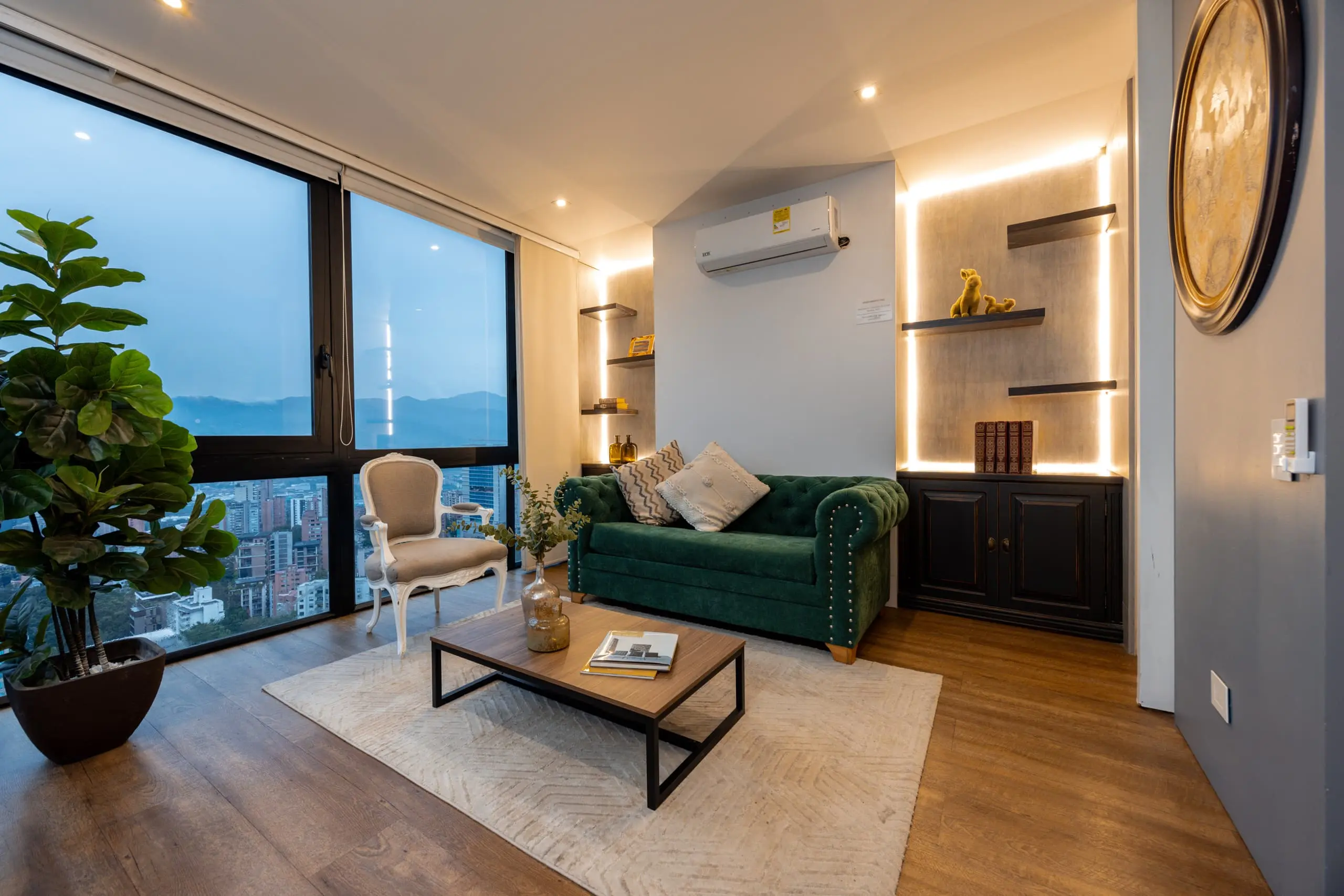 Enjoy this 1-bedroom apartment on the 19th floor, offering amazing views without a balcony. The space features air conditioning in the living room for your comfort, along with modern and stylish décor. Nestled in the prestigious Energy Living building, enjoy top-tier amenities: a breathtaking infinity rooftop pool on the 22nd floor, a fully equipped gym, a relaxing steam bath, and the all-day Alquimista restaurant onsite. Just a short walk to Carulla supermarket and a vibrant mall brimming with delightful dining options!