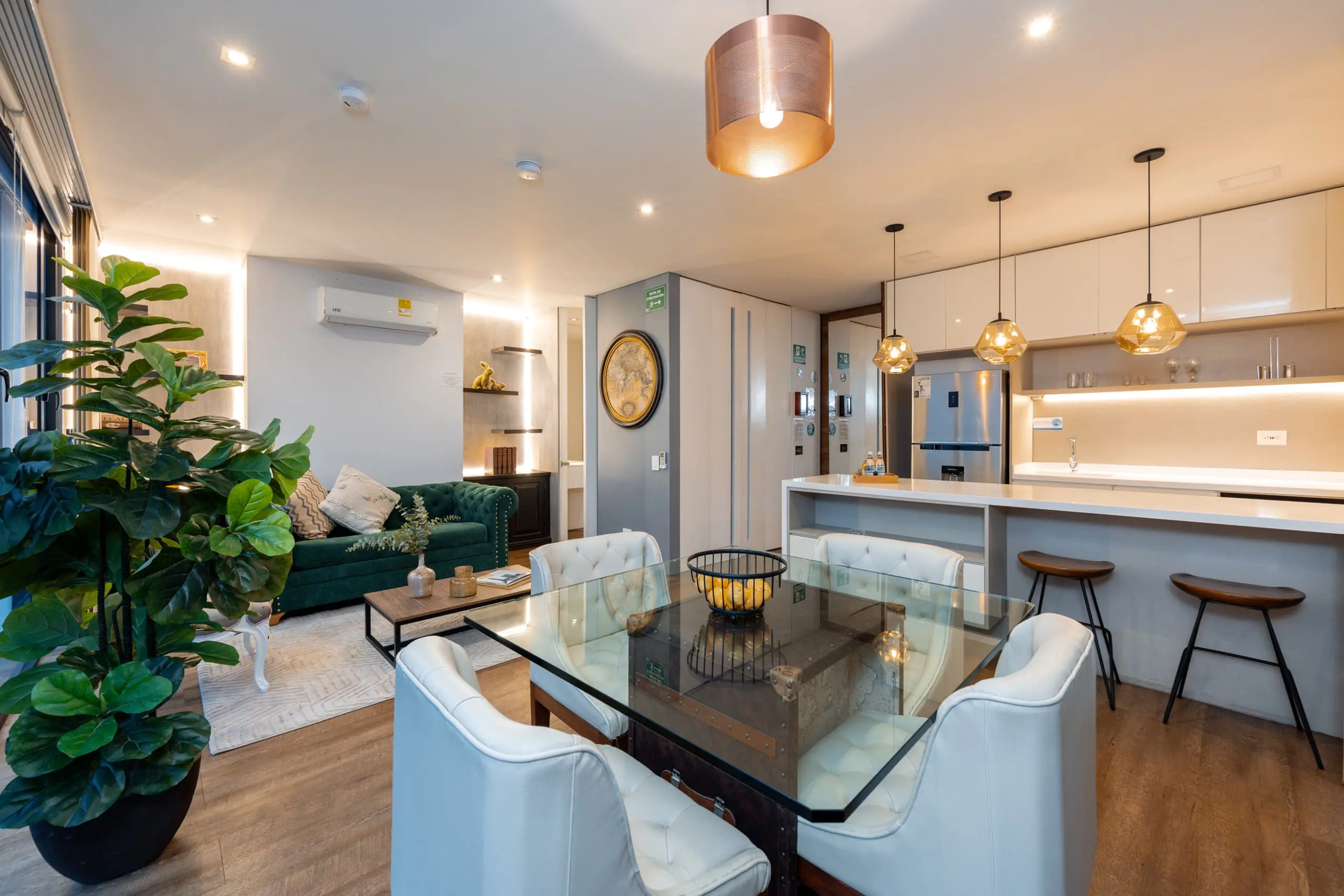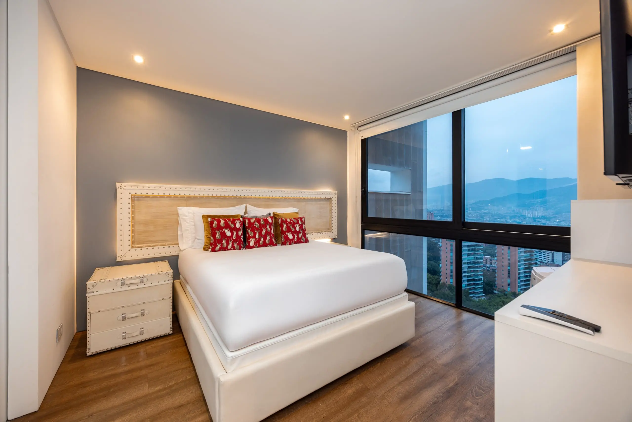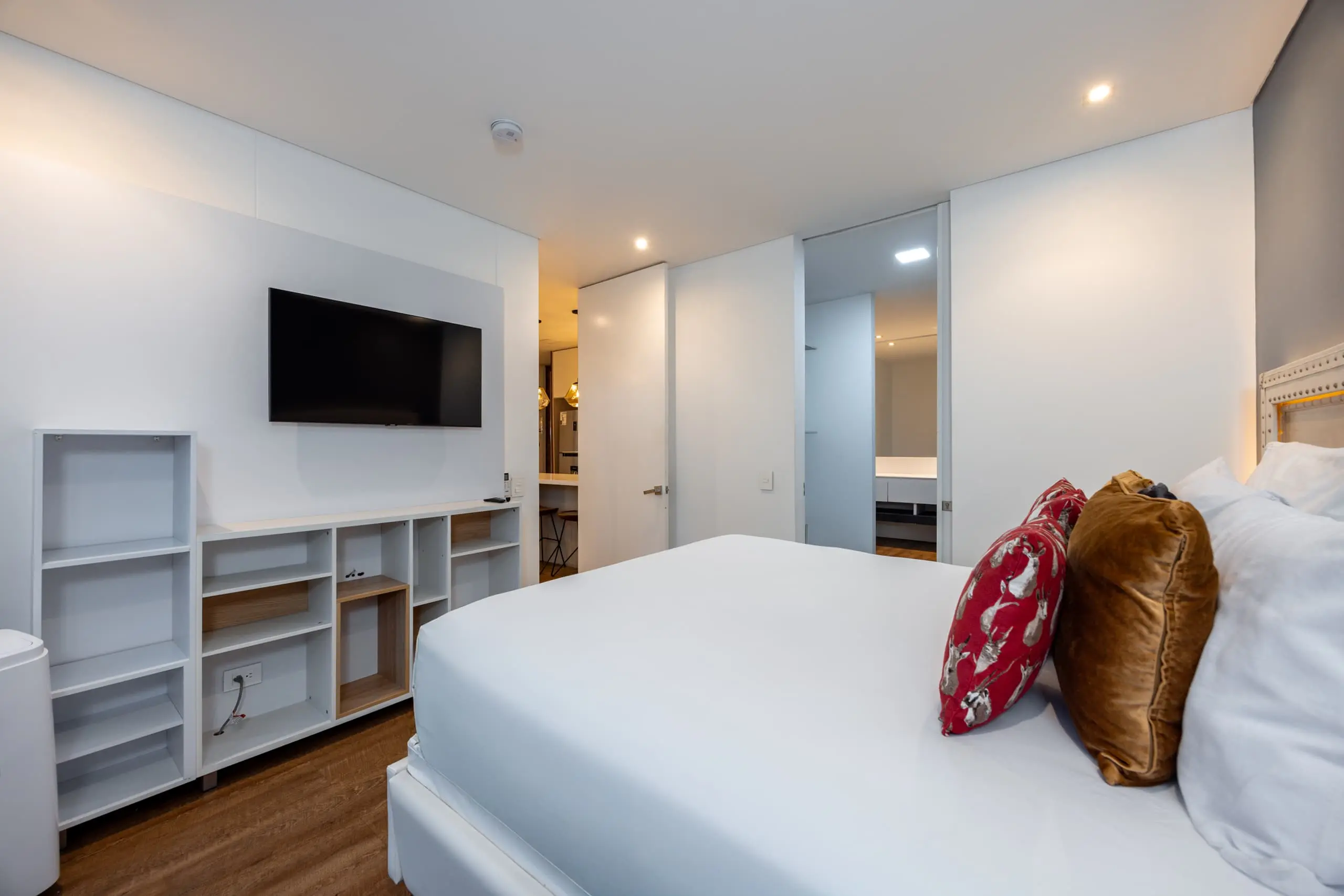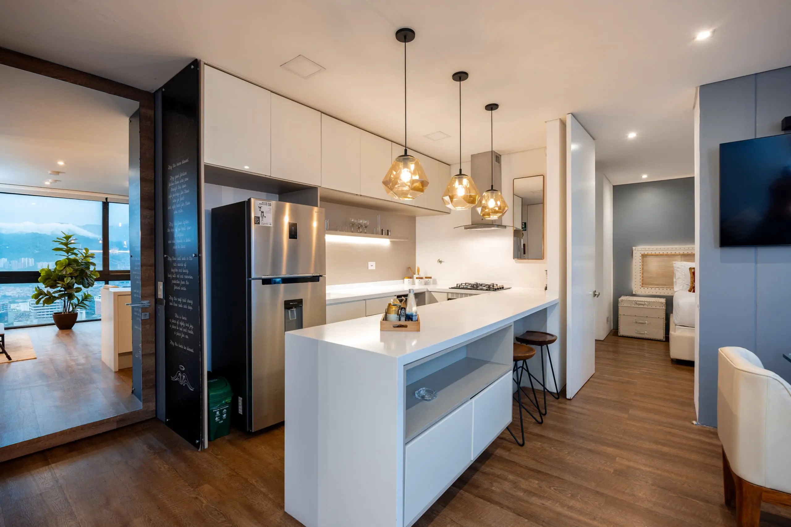Enjoy this 1-bedroom apartment on the 19th floor, offering amazing views without a balcony. The space features air conditioning in the living room for your comfort, along with modern and stylish décor. Nestled in the prestigious Energy Living building, enjoy top-tier amenities: a breathtaking infinity rooftop pool on the 22nd floor, a fully equipped gym, a relaxing steam bath, and the all-day Alquimista restaurant onsite. Just a short walk to Carulla supermarket and a vibrant mall brimming with delightful dining options!