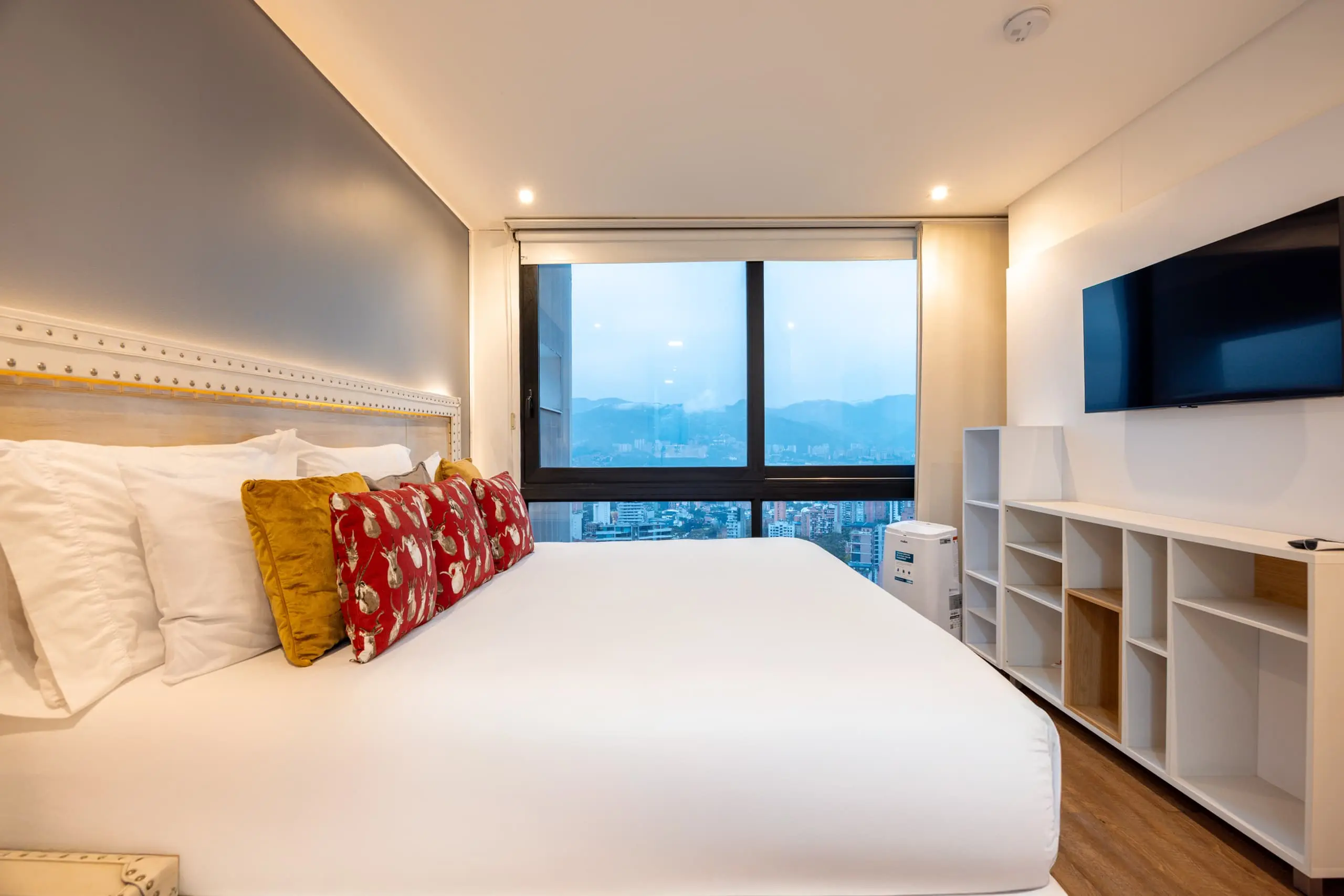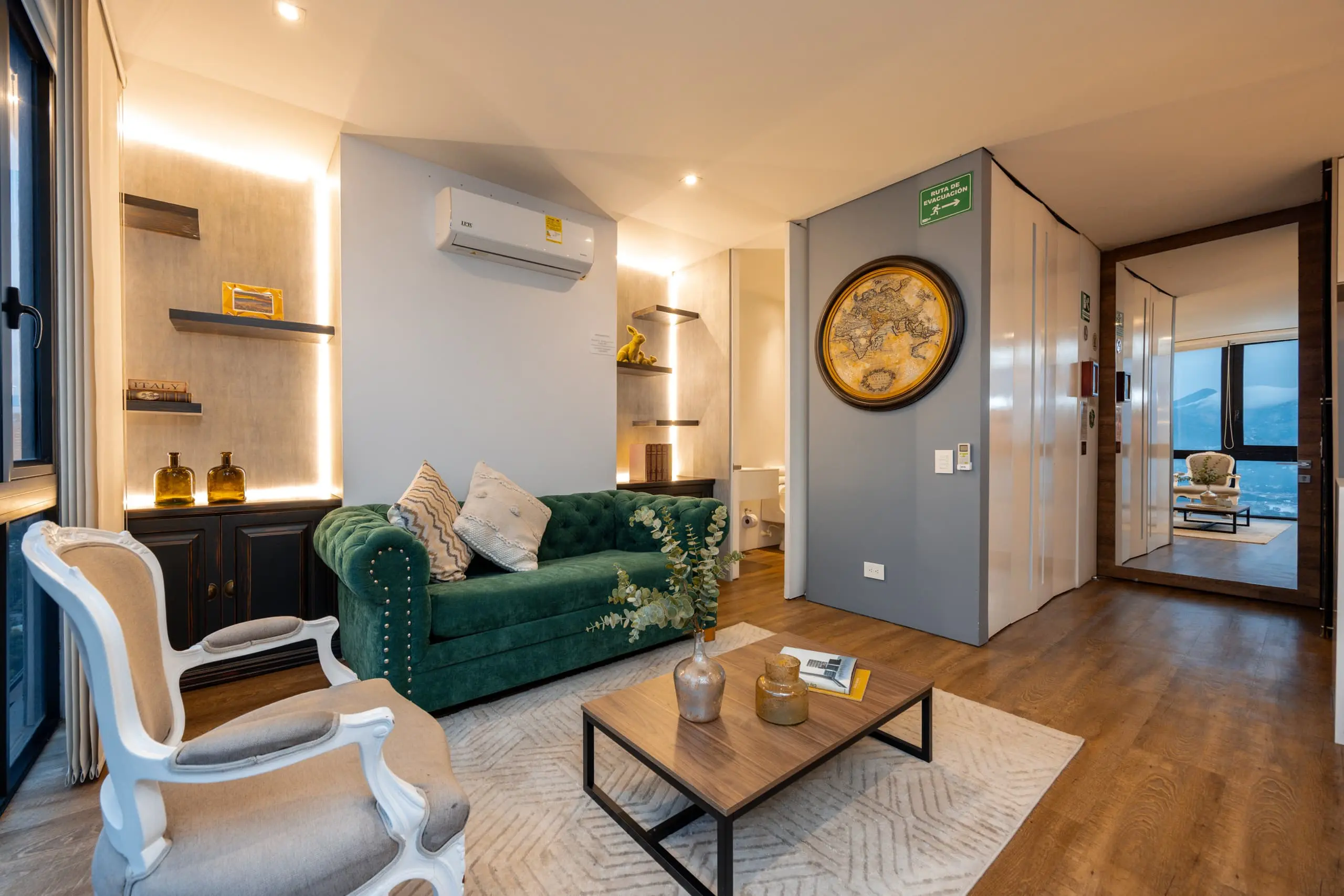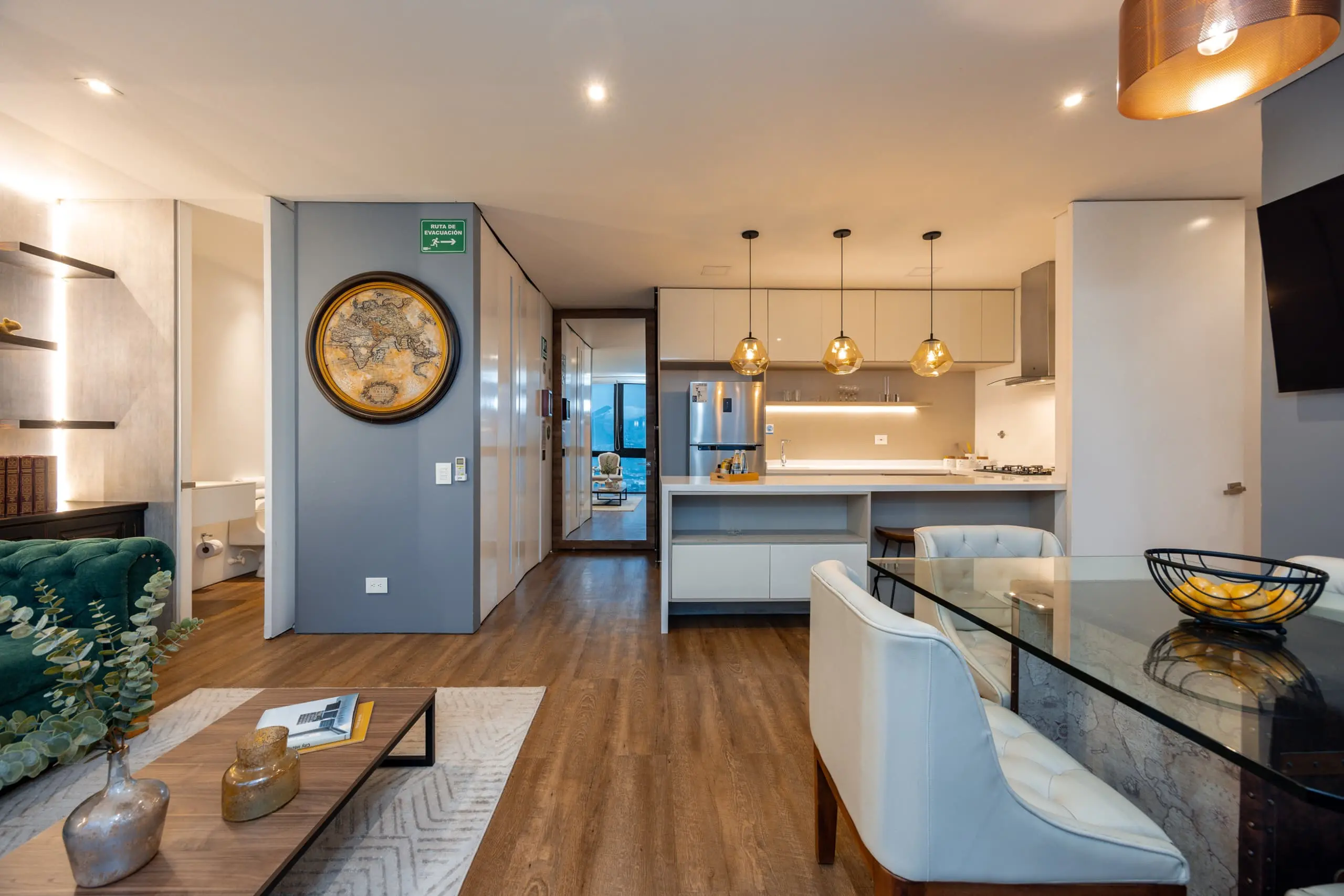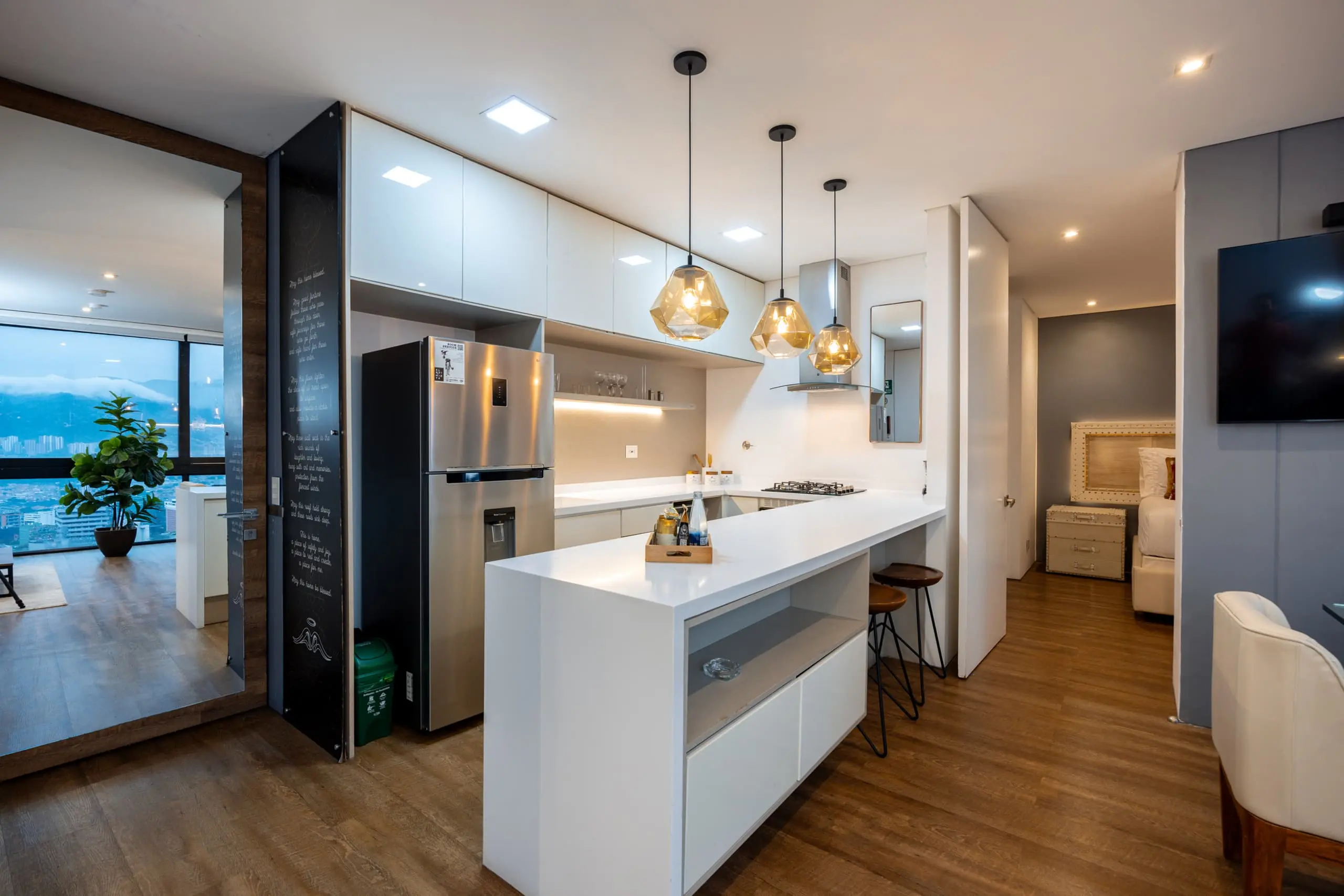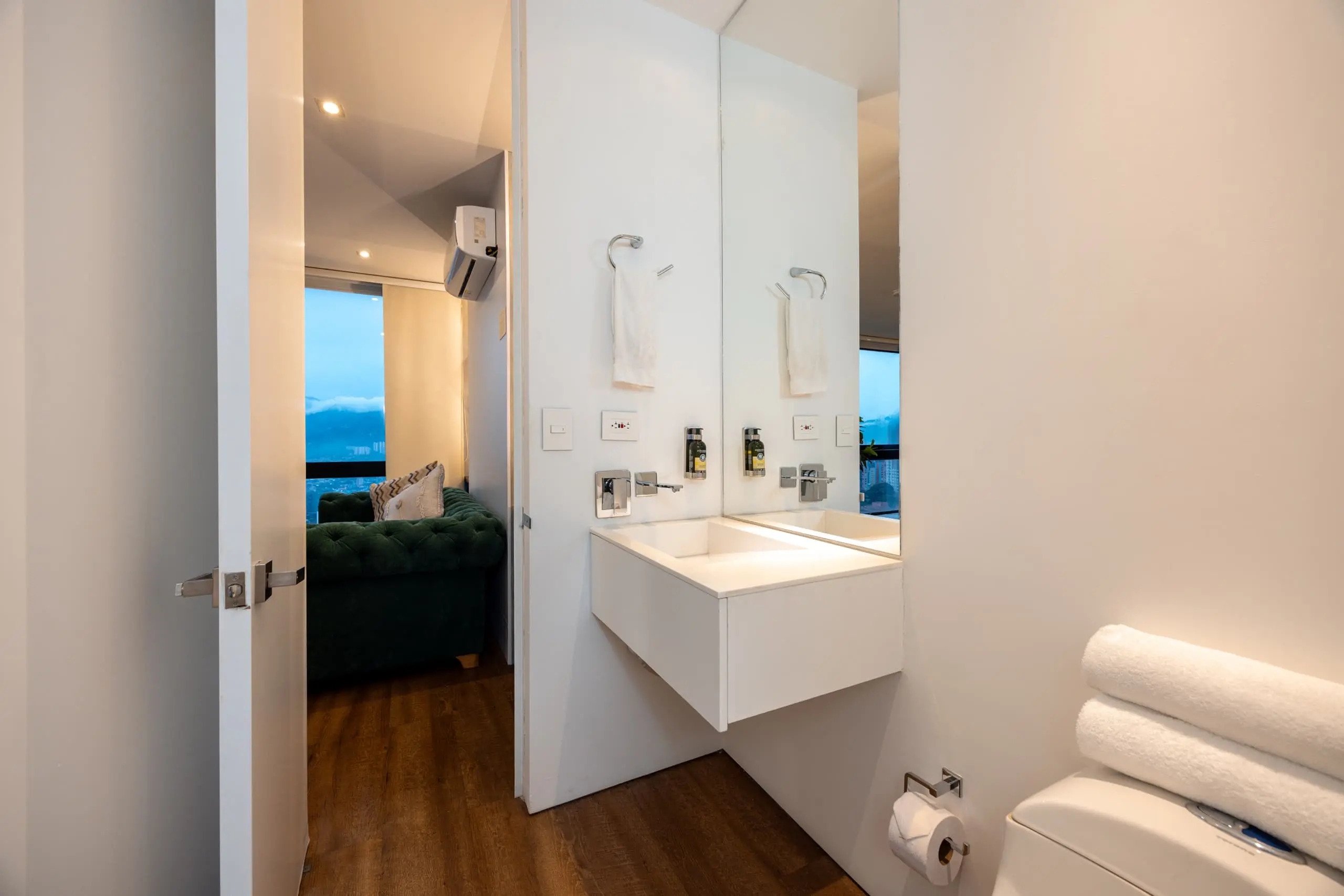 Enjoy this 1-bedroom apartment on the 19th floor, offering amazing views without a balcony. The space features air conditioning in the living room for your comfort, along with modern and stylish décor. Nestled in the prestigious Energy Living building, enjoy top-tier amenities: a breathtaking infinity rooftop pool on the 22nd floor, a fully equipped gym, a relaxing steam bath, and the all-day Alquimista restaurant onsite. Just a short walk to Carulla supermarket and a vibrant mall brimming with delightful dining options!